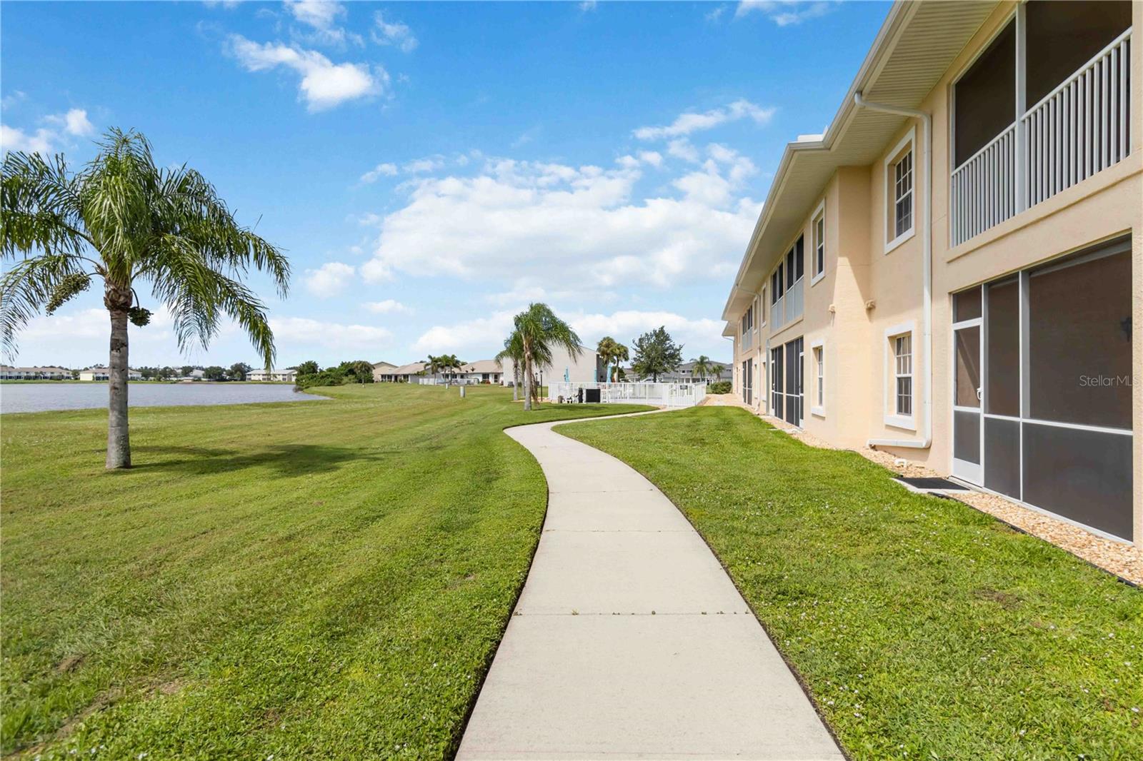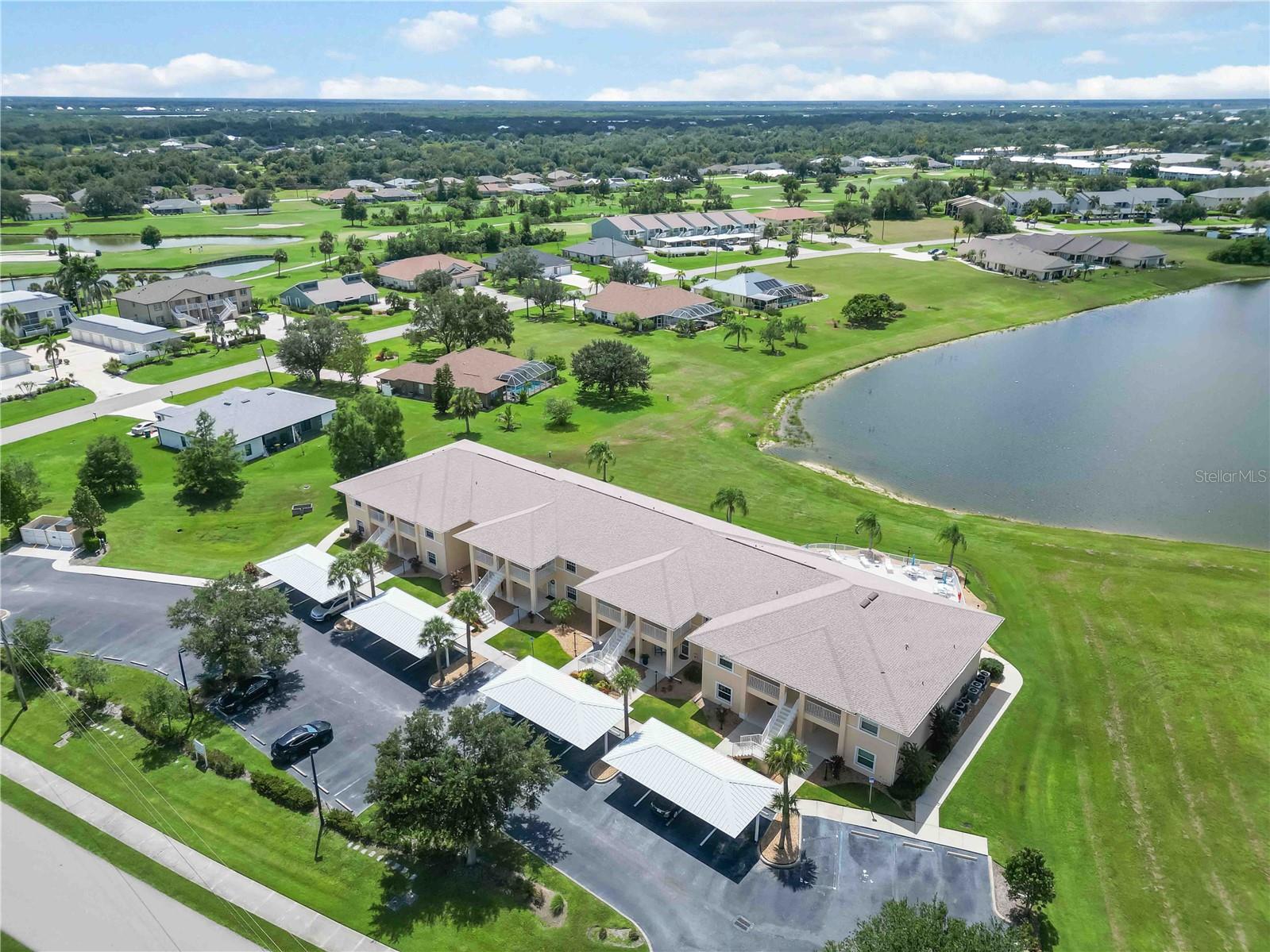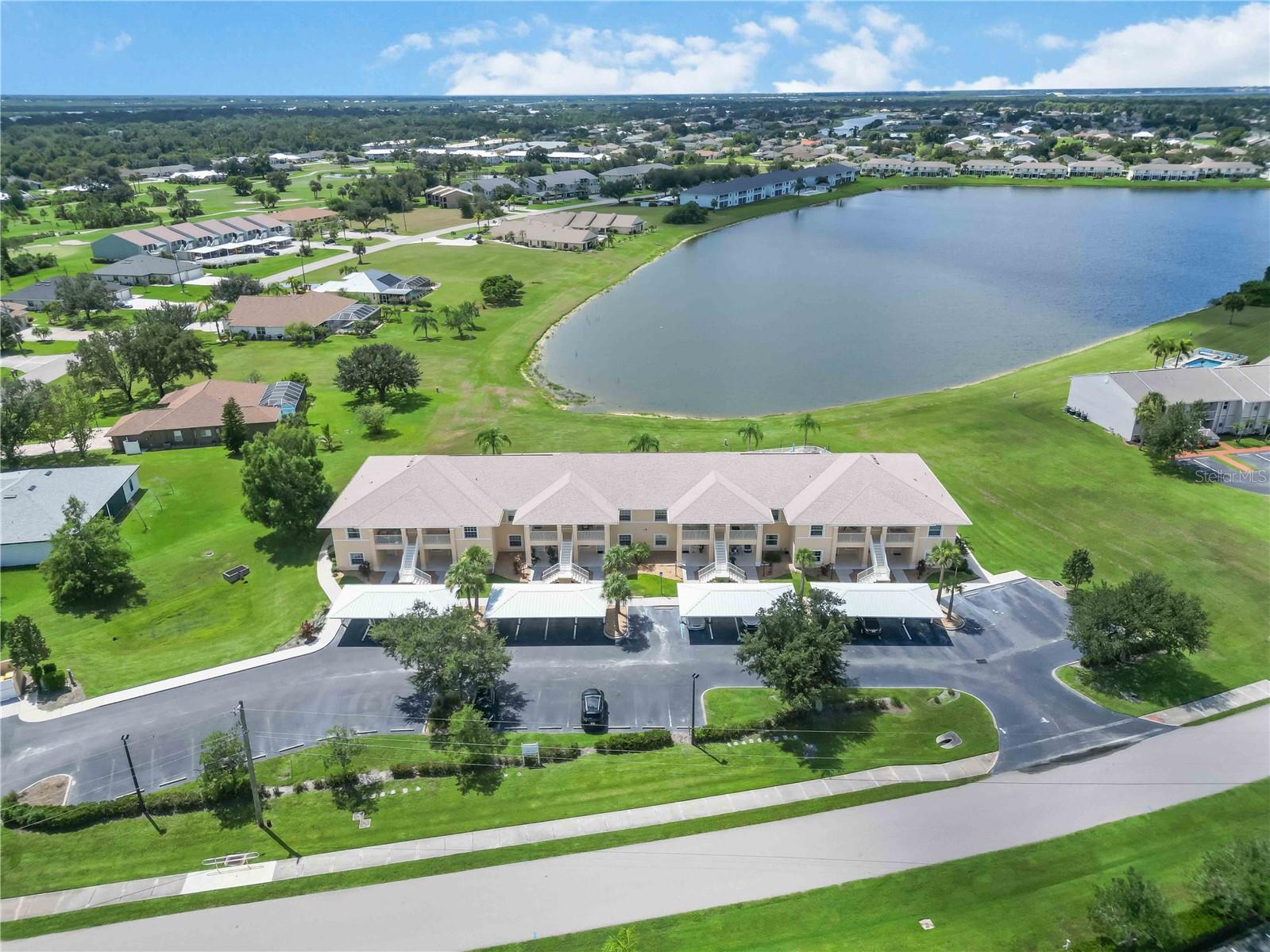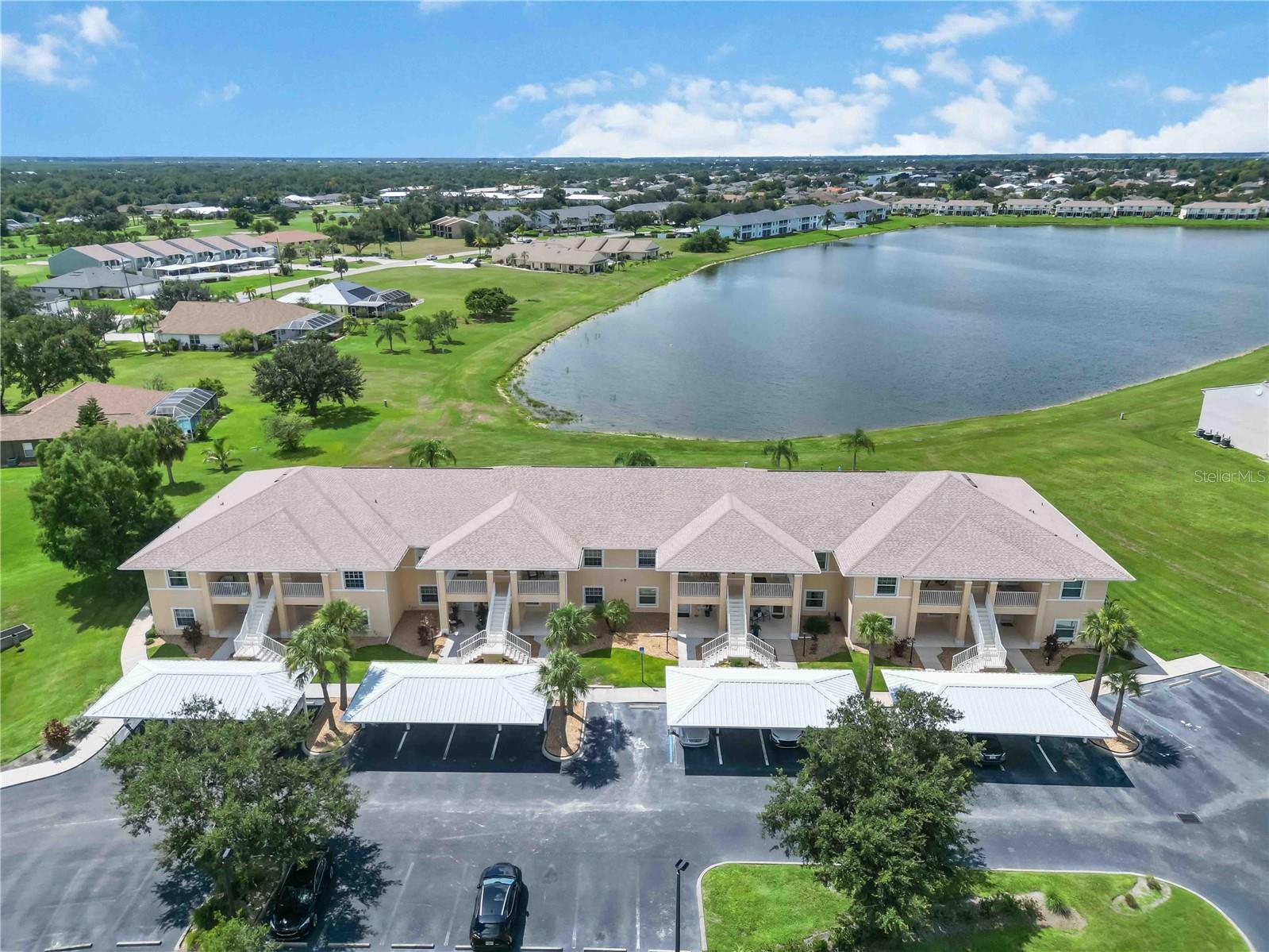 Stunning Turnkey-Furnished Second-Floor Condo in Deep Creek condo, boasting stunning views of tranquil Lake Rio! A welcoming front porch offers the perfect spot to savor your morning coffee while enjoying Florida's beautiful weather. Step inside to an inviting foyer that opens into a spacious, open-concept home. The kitchen features newly remodeled counters, back splash, and additional cabinetry, wine fridge, and counter space. The home also features recessed lighting, and a living room with expansive, breathtaking lake views. The combined living and dining room impresses with vaulted ceilings, wood laminate floors, and sliding glass doors that lead to the screened-in lanai, flooding the home with natural light. The primary suite offers serene lake views, a walk-in closet plus a second closet for extra storage, and an en-suite bathroom with a tiled shower and separate linen closet. The private guest quarters include a comfortable bedroom and full bath, ensuring visitors feel right at home. Sliding glass doors lead to the screened lanai, where you can enjoy spectacular lake sunrise and sunset views--ideal for outdoor dining. Additional features include an interior laundry closet, outdoor storage closet, covered assigned parking, and a community pool just steps from your lanai. Situated on a quiet road across from Deep Creek Golf Club, this condo offers low-maintenance living with monthly fees covering exterior building and grounds maintenance, insurance, and pool care. Perfectly located near I-75, restaurants, shopping, boating, and all the amenities of the deed-restricted Deep Creek community, and just minutes from downtown historic Punta Gorda, Sunseeker Resort, and beautiful waterfront parks. This lakefront retreat is ready for you to enjoy the best of the Florida lifestyle!