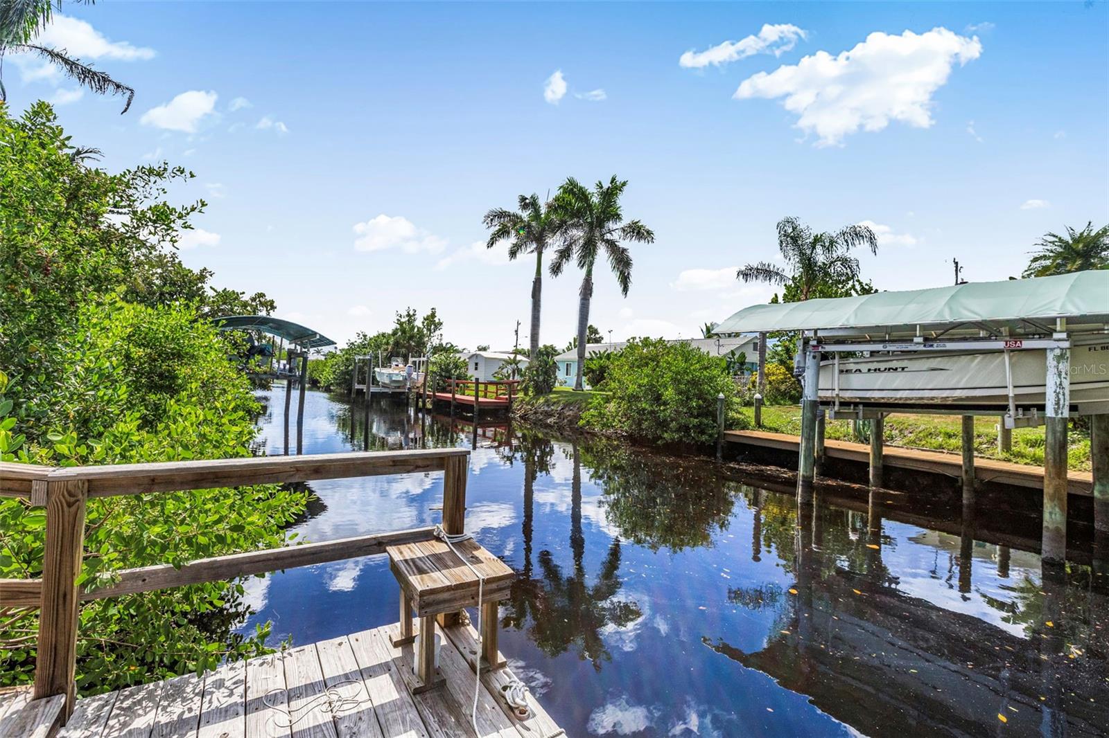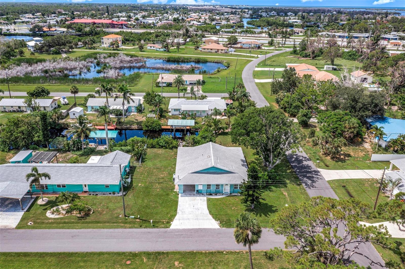 WATER ACCESS!!! Step back in time without sacrificing modern comfort in this beautifully preserved 1964 Kluge Florida home, nestled just minutes from the ICW on a canal off Ainger Creek from your personal dock. The original home has been added onto creating a larger living space from the original footprint. This property is a rare find in charming Englewood. It is your time to own a piece of historical architecture on an oversized corner lot with water access. Just two fixed bridges to the waters of the Intercoastal Waterway and the Gulf of Mexico.The kitchen has been updated with new cabinets, counter tops and appliances. Both bathrooms have also been updated to provide a more modern feel and comfort. In the bedrooms you will find ample closet spaces and other storage areas within the house including the oversized laundry room. The AC was replaced in 2021and the roof is 12 years old.The oversized cinder block carport is large enough for your cars or any Florida activity toys you may want to bring with you to enjoy Gulf Coast Living.Centrally located for easy access to beaches, restaurants and shopping and boat ramps. Dearborn street is just a few miles North with its restaurants, shops, music venue and events. Highlighted is the Thursday farmers market and classic car show. Want to explore farther? Venice to the North and Boca Grande to the South.This home blends the character and craftsmanship of the past with the ease of modern living on the coast of Florida. Ideal for those who appreciate history, coastal charm and water activities.Bring the boat, kayaks, fishing gear and explore the waters of Englewood and beyond.