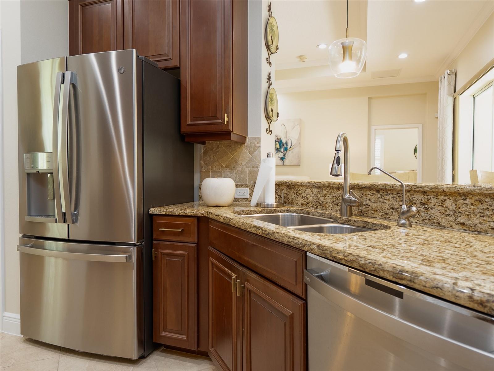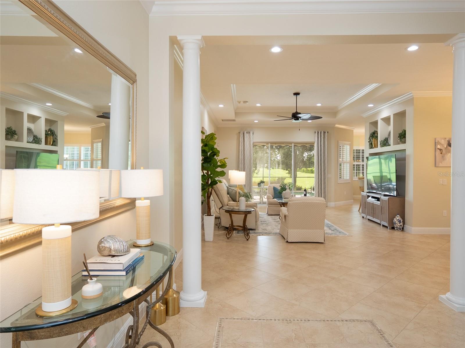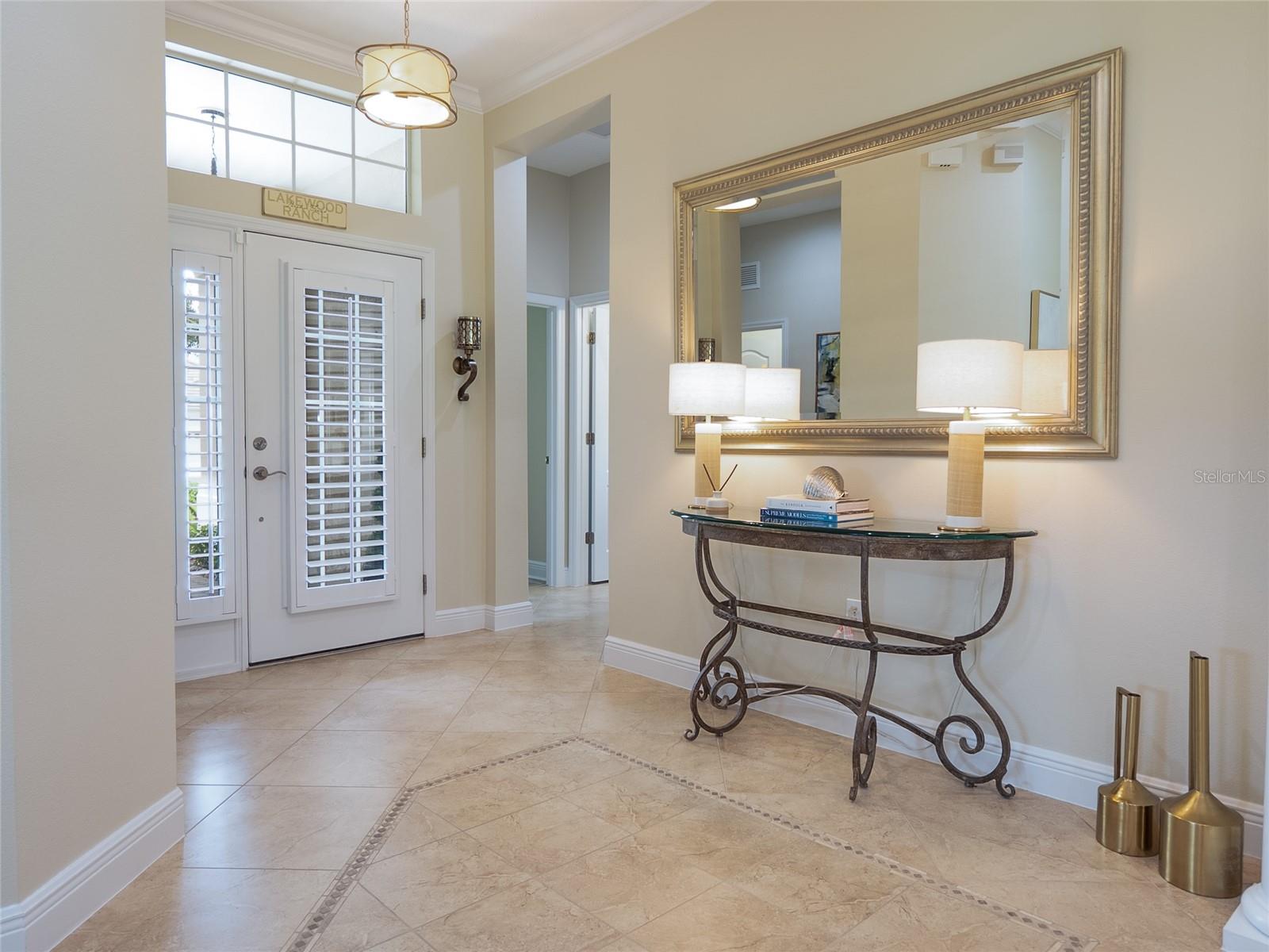 Experience refined Florida living in this elegantly updated maintenance free residence within the prestigious gates of Lakewood Ranch Country Club East. Perfectly positioned on over a quarter acre with serene pond and golf course views, this Neal-built Windsong floor plan blends timeless design with modern comfort.A leaded glass entry and tile-inset foyer welcome you into an open, light-filled living space highlighted by trayed ceilings, crown molding, plantation shutters, and custom niches. Fresh interior paint, designer lighting, and exquisite tile flooring set a sophisticated tone.The gourmet kitchen serves as the heart of the home, boasting rich wood cabinetry with glass accents, granite countertops, a stylish backsplash, and stainless-steel appliances. A den with French doors and wood flooring offers an ideal home office or reading retreat.Three spacious bedrooms include a luxurious owner's suite with private French door access to the lanai, where a heated pool and spa create a tranquil oasis for entertaining or unwinding. Pocketing sliders seamlessly connect indoor and outdoor living.Energy-efficient features include a new 2025 AC, gas tankless water heater, radiant heat barrier, and insulated double-glazed windows. An oversized two-car garage adds convenience.Belleisle residents enjoy their own community pool, spa, clubhouse, and recreation amenities, along with exclusive access to The Retreat--featuring a resort-style pool, fitness center, game room, and more. Membership at Lakewood Ranch Country Club provides additional dining, golf, and social opportunities.Consistently ranked among the top master-planned communities in the nation, Lakewood Ranch offers a lifestyle of elegance, recreation, and serenity. This move-in-ready residence invites you to embrace paradise today.