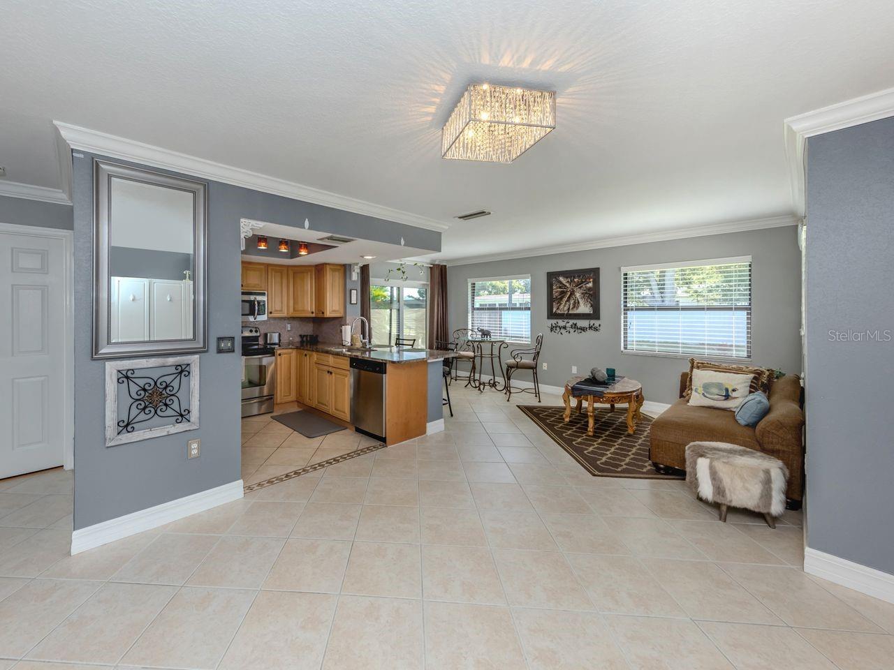 Beautifully renovated 2 bedroom, 2 bath, 1 car garage home in Venice East Golf Course community. FURNISHED & MOVE-IN READY this property is perfect as a seasonal retreat, year-round living or investment opportunity. Great curb appeal with tropical landscape and newer ROOF, this home offers comfort, convenience, and style. Upgraded Kitchen with wood cabinetry, granite countertops & breakfast bar. Seller to provide a home warranty for the Buyer. Open floor plan with split bedrooms for privacy. Designer lighting and ceiling fans throughout. PGT impact slider for safety & efficiency. Newer electrical panel & hot water heater. Crown Molding & an abundance of storage extra cabinets in the great room. Spacious yard with back fencing for privacy. Desirable community with public water/sewer, no deed restrictions, Voluntary HOA, no CDD & no flood insurance required. Convenient location to Gulf Beaches, fishing, dog parks, shopping, fine dining, Library, Atlanta Braves stadium and historic downtown Venice. Call now to see your place in Paradise!