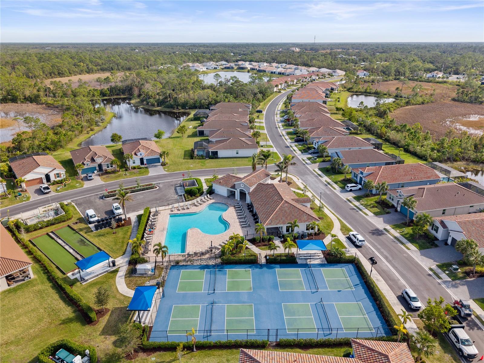 Lakefront Home with Preserve Views in Venice WoodlandsThis 2020-built home offers the rare combination of wide lake views and a private Old Florida preserve backdrop. The open layout includes 3 bedrooms, a den, and 2.5 baths, designed for both everyday living and entertaining.The kitchen features white wood cabinetry with custom glass inserts, stone countertops, a large island, and a walk-in pantry. Stainless steel appliances, including a convection oven with air-fry settings, complete the space. The kitchen opens to the living and dining areas, all oriented toward the lake and preserve beyond.The primary suite overlooks the water and features dual vanities, a walk-in shower, and an oversized closet.Two additional guest suites share a full bath with double sinks, providing comfortable accommodations for family or visitors. A separate den offers flexible space for an office, library, or hobby room, and the powder room is conveniently located for guests.Luxury vinyl flooring, plantation shutters, and a neutral color scheme add to the home's clean, coastal style. Outdoor living includes a screened lanai and sun patio where you can enjoy lake views and the privacy of the preserve. Smart-home features allow remote control of the thermostat, appliances, and garage. Additional details include hurricane shutters, pre-plumbing for a laundry sink, UV light in HVAC system, and a 2-car garage.Venice Woodlands offers a community pool, fitness center, pickleball courts, clubhouse, and walking paths. Lawn care is included in the HOA fee, making this home easy to maintain and ready to enjoy.
