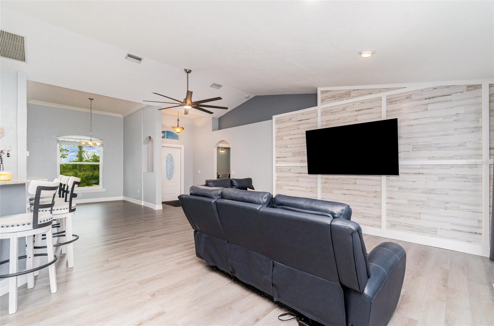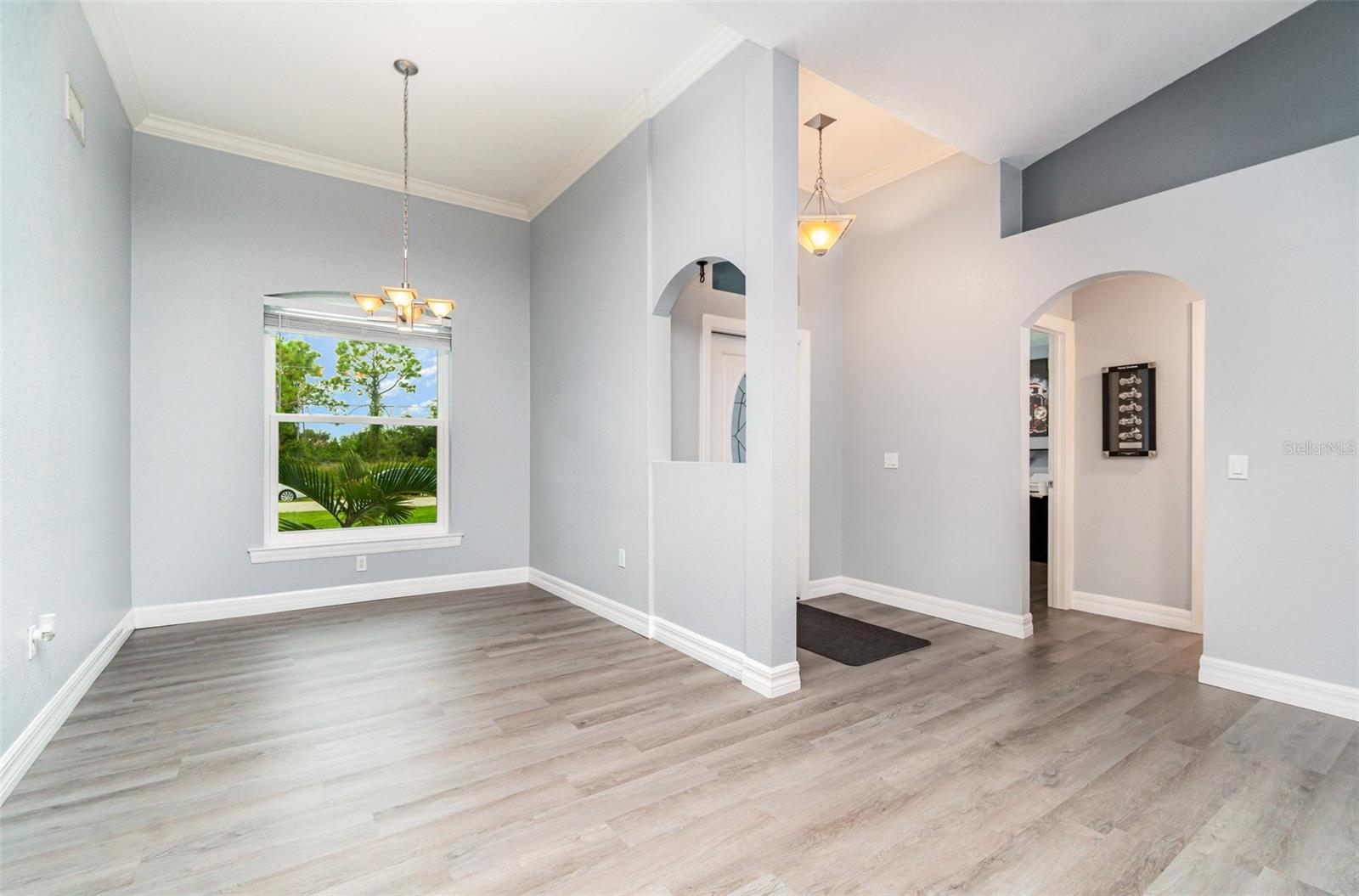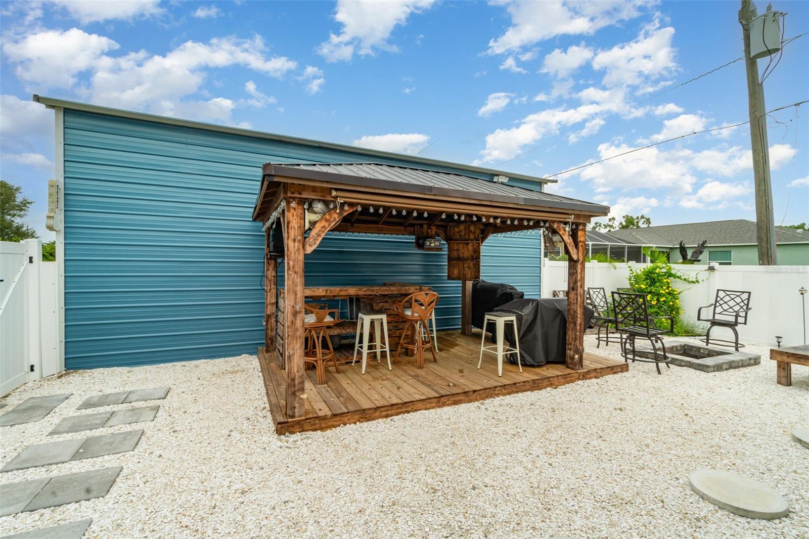 DETACHED SHOPS! PRIVATE POOL! OUTDOOR BAR! Discover this beautifully remodeled 3-bedroom, 2-bath home on an oversized nearly -acre lot, just a couple of miles from the beach! Featuring open-concept living with vaulted ceilings, crown molding, and formal dining, this home offers style and functionality. The updated kitchen boasts granite counters, stainless steel appliances, soft-close cabinetry, and a split-bedroom design for privacy. Enjoy modern updates throughout, including LVP flooring (no carpet), hurricane-impact windows, a 1-year-old roof, and newer HVAC, furnace, and water heater. The fully remodeled primary suite includes a spacious walk-in closet and a stunning walk-in shower. Step outside to your private oasis: a heated saltwater pool with cage, outdoor bar, firepit, and cornhole area--perfect for entertaining! RV parking adds convenience, while two oversized workshops/barns (26x30 and 20x30) with 200-amp electrical service, plus two storage sheds, provide endless space for hobbies and storage. Located in a desirable community with optional boat ramp access for only $75/year, this property combines modern living, coastal lifestyle, and unmatched outdoor amenities. A true must-see!