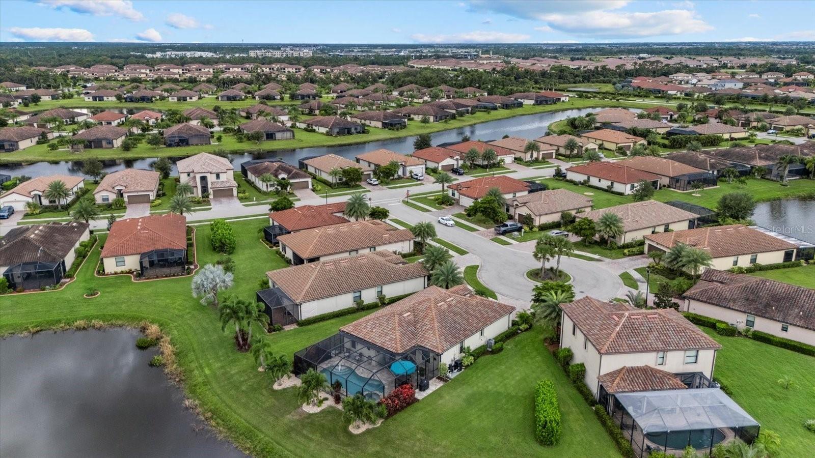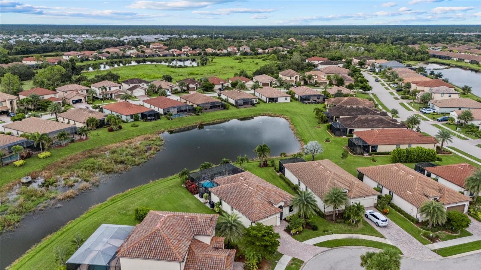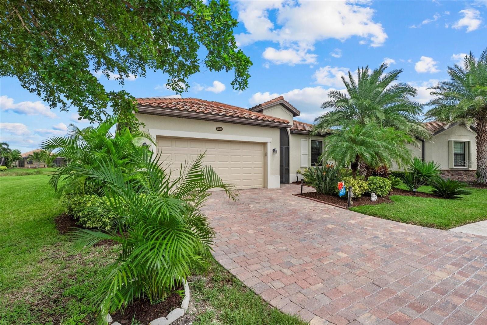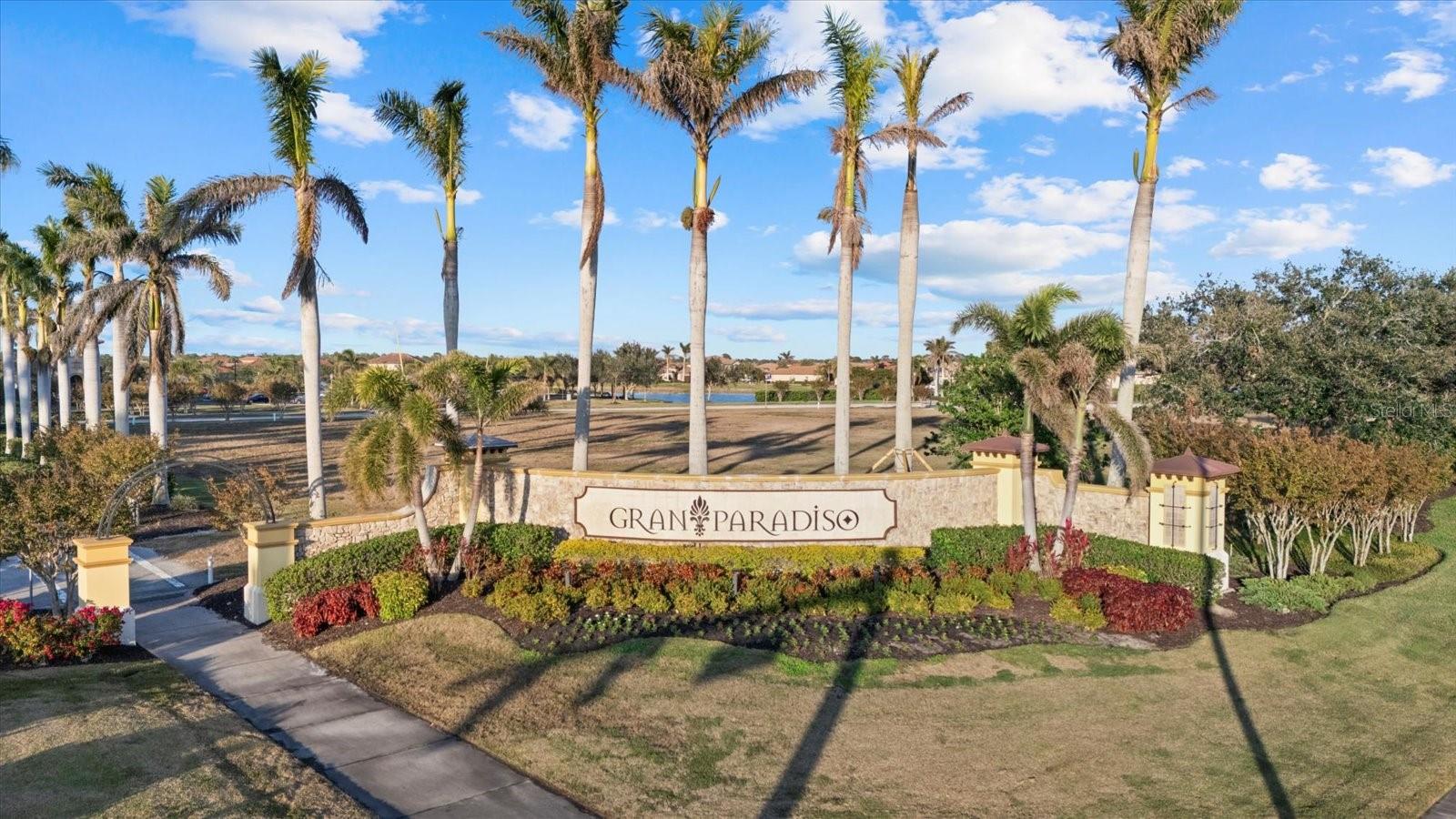 WATER VIEW POOL & SPA OVERSIZED LOT CAPRI FLOOR PLANThis stunning single-family home offers the perfect blend of elegance, comfort, and resort-style living in the highly sought-after, maintenance-free community of Gran Paradiso. Ideally positioned on a quiet cul-de-sac with a water view, this residence showcases the popular Capri floor plan with spacious, open living areas and refined finishes throughout.The curb appeal is undeniable with a beautifully landscaped yard that enhances the home's charm and provides a lush, tropical setting. Mature plantings and manicured grounds create a welcoming first impression and add to the sense of privacy and serenity.Step outside to your private oasis--an extended lanai with travertine tile, a heated saltwater pool and spa with color-changing LED lights, and plenty of space to relax or entertain while enjoying peaceful water views. The oversized lot allows for extra green space, making this property stand out.Inside, the home features neutral tones, crown molding, granite countertops, and porcelain tile set on the diagonal. The split-bedroom design offers privacy, an eat-in kitchen, abundant storage, and a 2-car garage with epoxy and overhead storage. An enclosed front entryway provides a charming spot for morning coffee.Gran Paradiso residents enjoy unmatched amenities, including a resort-style pool with beach entry, state-of-the-art fitness center, tennis and pickleball courts, saunas, steam rooms, and a vibrant calendar of events and activities. Conveniently located near US 41, I-75, shopping, dining, boating, and Gulf beaches, this home truly has it all.Move in and start enjoying the Florida lifestyle today!
