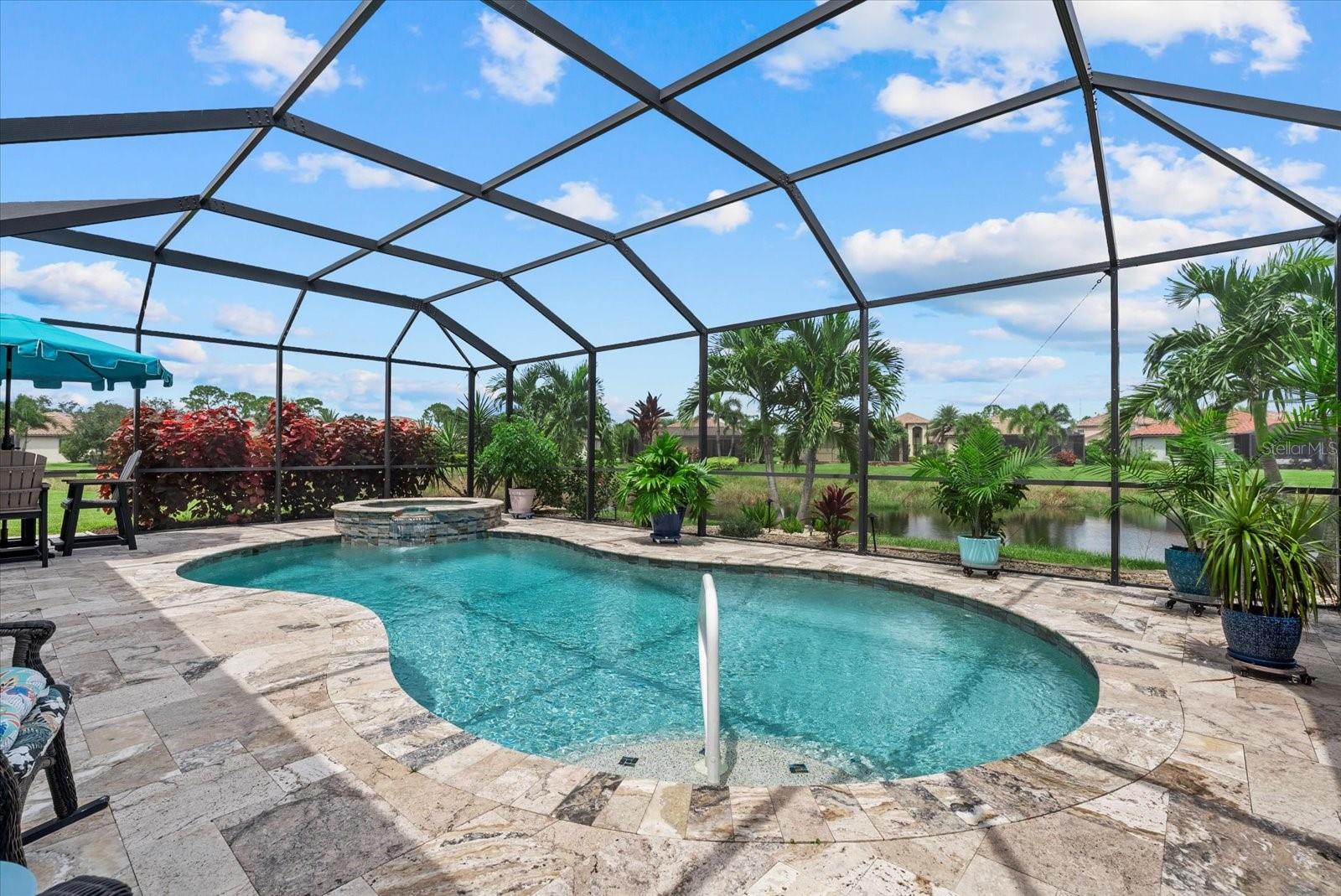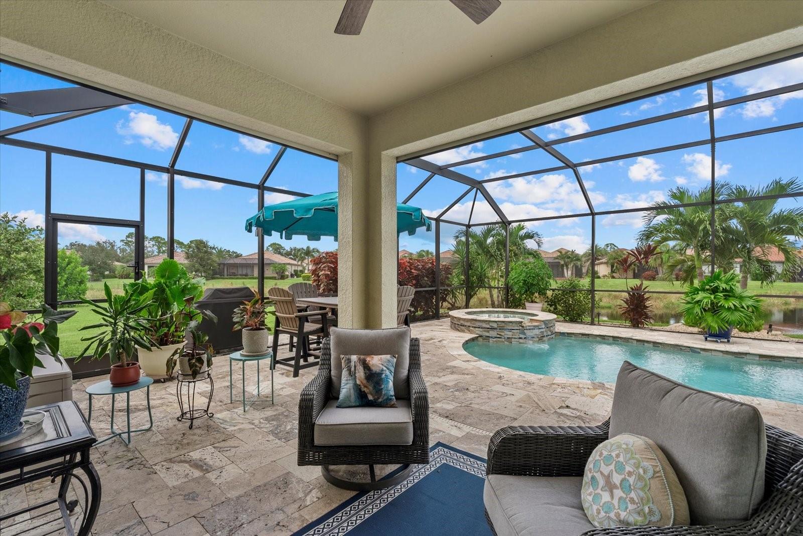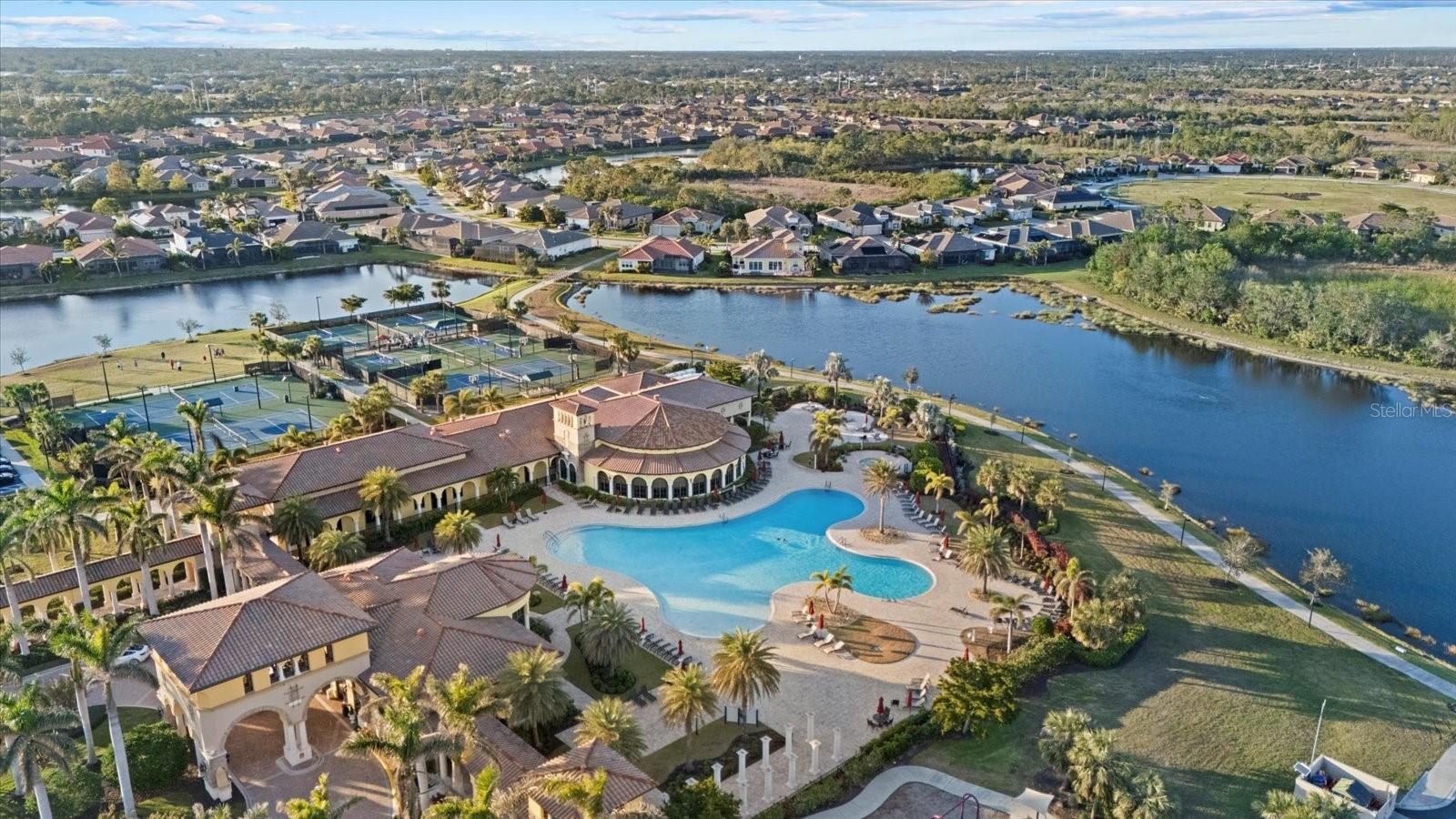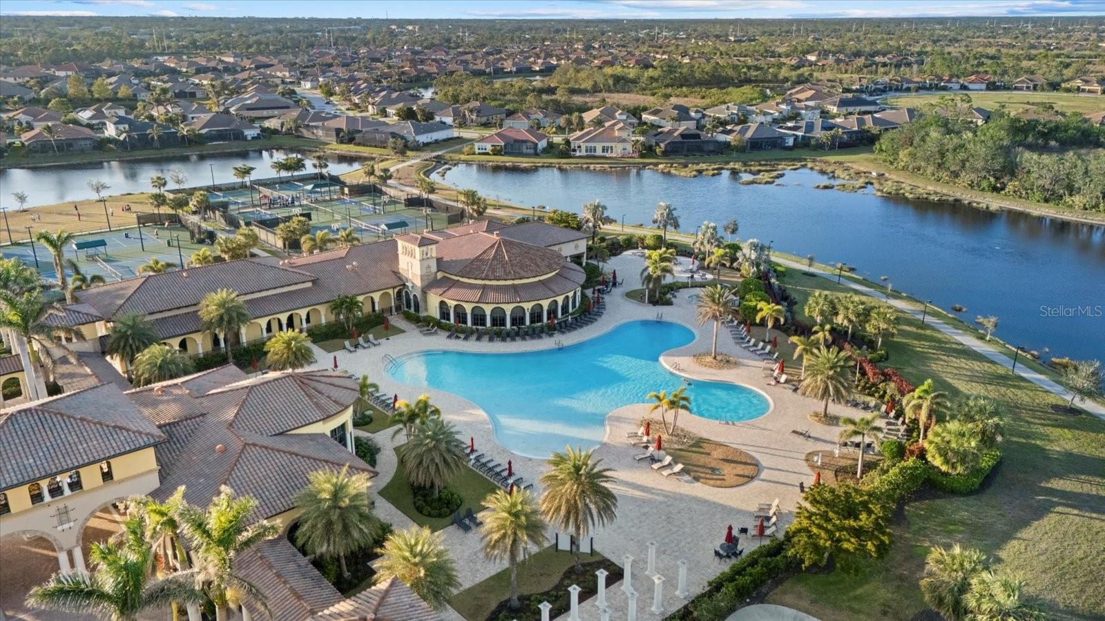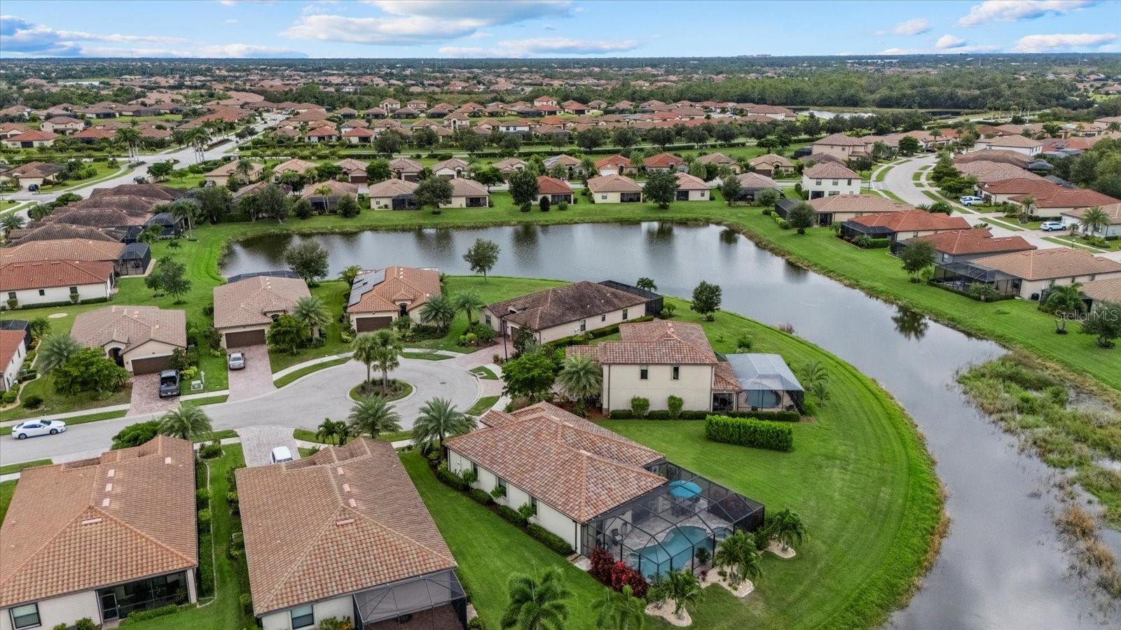 WATER VIEW POOL & SPA OVERSIZED LOT CAPRI FLOOR PLANThis stunning single-family home offers the perfect blend of elegance, comfort, and resort-style living in the highly sought-after, maintenance-free community of Gran Paradiso. Ideally positioned on a quiet cul-de-sac with a water view, this residence showcases the popular Capri floor plan with spacious, open living areas and refined finishes throughout.The curb appeal is undeniable with a beautifully landscaped yard that enhances the home's charm and provides a lush, tropical setting. Mature plantings and manicured grounds create a welcoming first impression and add to the sense of privacy and serenity.Step outside to your private oasis--an extended lanai with travertine tile, a heated saltwater pool and spa with color-changing LED lights, and plenty of space to relax or entertain while enjoying peaceful water views. The oversized lot allows for extra green space, making this property stand out.Inside, the home features neutral tones, crown molding, granite countertops, and porcelain tile set on the diagonal. The split-bedroom design offers privacy, an eat-in kitchen, abundant storage, and a 2-car garage with epoxy and overhead storage. An enclosed front entryway provides a charming spot for morning coffee.Gran Paradiso residents enjoy unmatched amenities, including a resort-style pool with beach entry, state-of-the-art fitness center, tennis and pickleball courts, saunas, steam rooms, and a vibrant calendar of events and activities. Conveniently located near US 41, I-75, shopping, dining, boating, and Gulf beaches, this home truly has it all.Move in and start enjoying the Florida lifestyle today!
