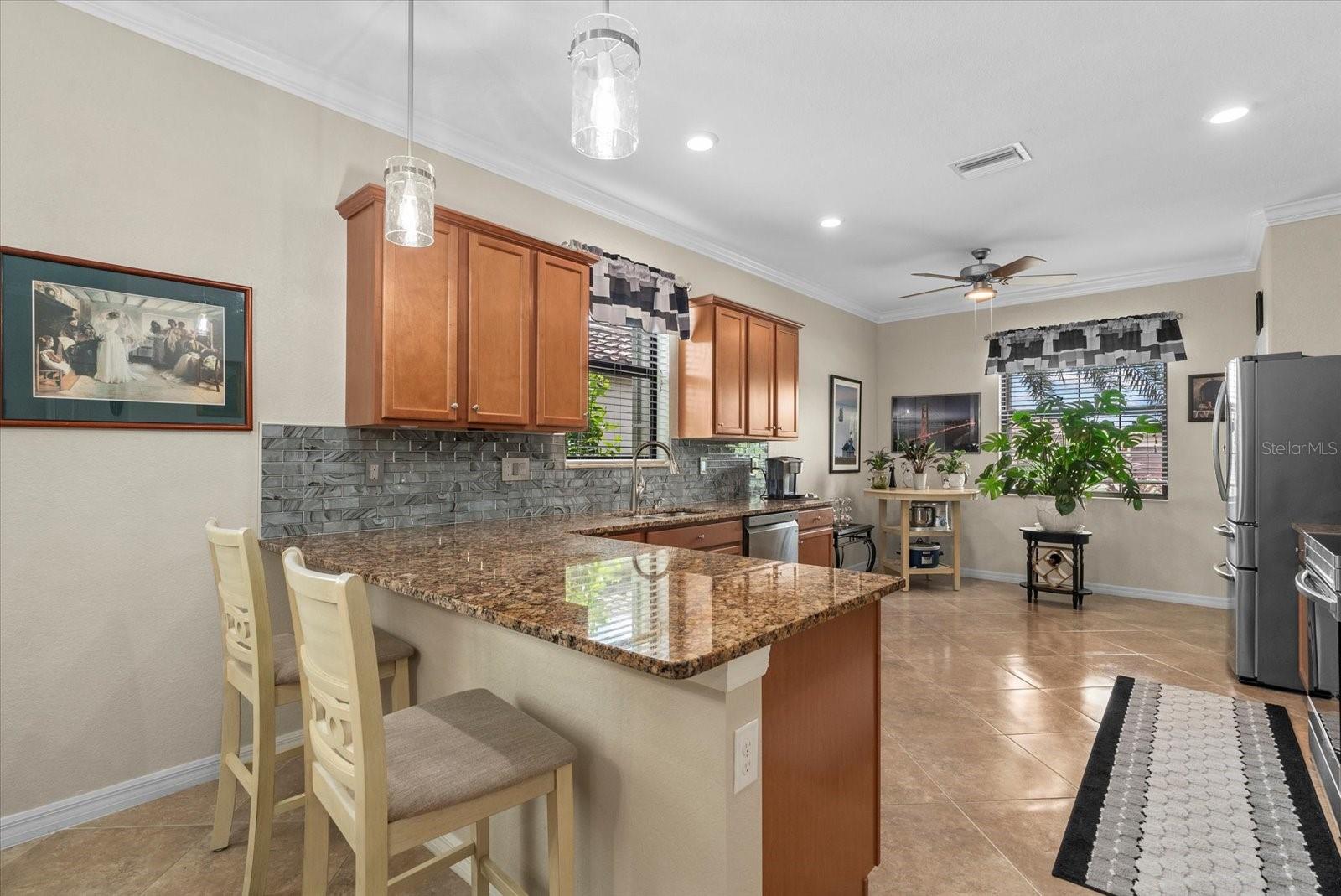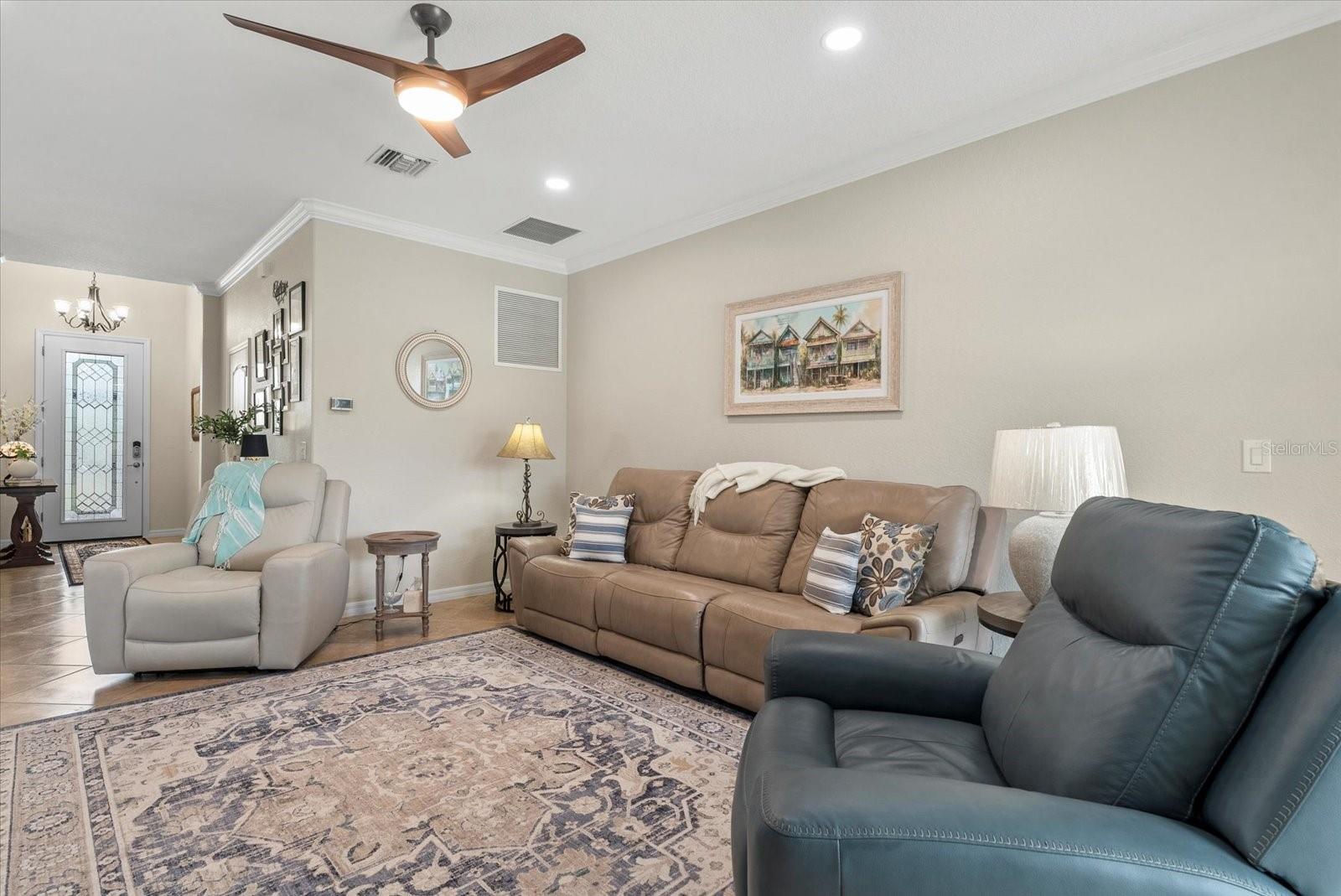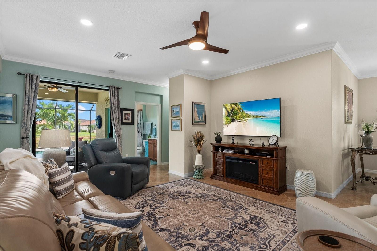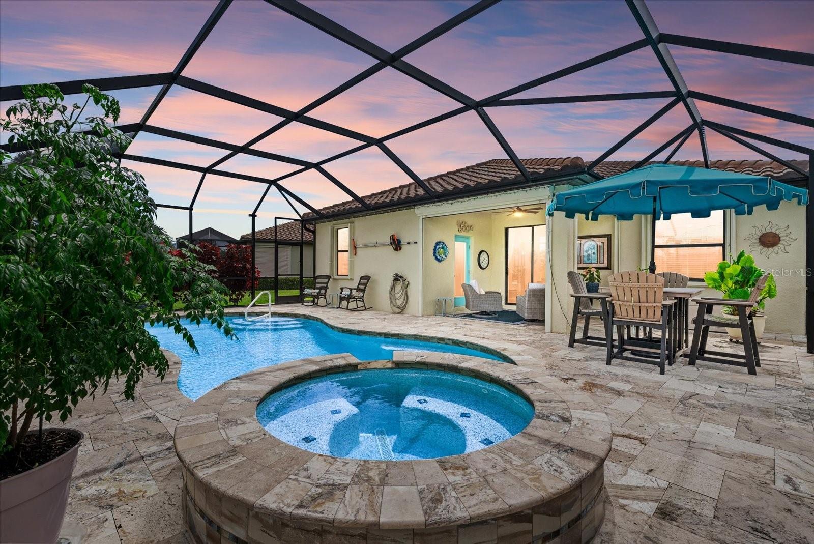 WATER VIEW POOL & SPA OVERSIZED LOT CAPRI FLOOR PLANThis stunning single-family home offers the perfect blend of elegance, comfort, and resort-style living in the highly sought-after, maintenance-free community of Gran Paradiso. Ideally positioned on a quiet cul-de-sac with a water view, this residence showcases the popular Capri floor plan with spacious, open living areas and refined finishes throughout.The curb appeal is undeniable with a beautifully landscaped yard that enhances the home's charm and provides a lush, tropical setting. Mature plantings and manicured grounds create a welcoming first impression and add to the sense of privacy and serenity.Step outside to your private oasis--an extended lanai with travertine tile, a heated saltwater pool and spa with color-changing LED lights, and plenty of space to relax or entertain while enjoying peaceful water views. The oversized lot allows for extra green space, making this property stand out.Inside, the home features neutral tones, crown molding, granite countertops, and porcelain tile set on the diagonal. The split-bedroom design offers privacy, an eat-in kitchen, abundant storage, and a 2-car garage with epoxy and overhead storage. An enclosed front entryway provides a charming spot for morning coffee.Gran Paradiso residents enjoy unmatched amenities, including a resort-style pool with beach entry, state-of-the-art fitness center, tennis and pickleball courts, saunas, steam rooms, and a vibrant calendar of events and activities. Conveniently located near US 41, I-75, shopping, dining, boating, and Gulf beaches, this home truly has it all.Move in and start enjoying the Florida lifestyle today!