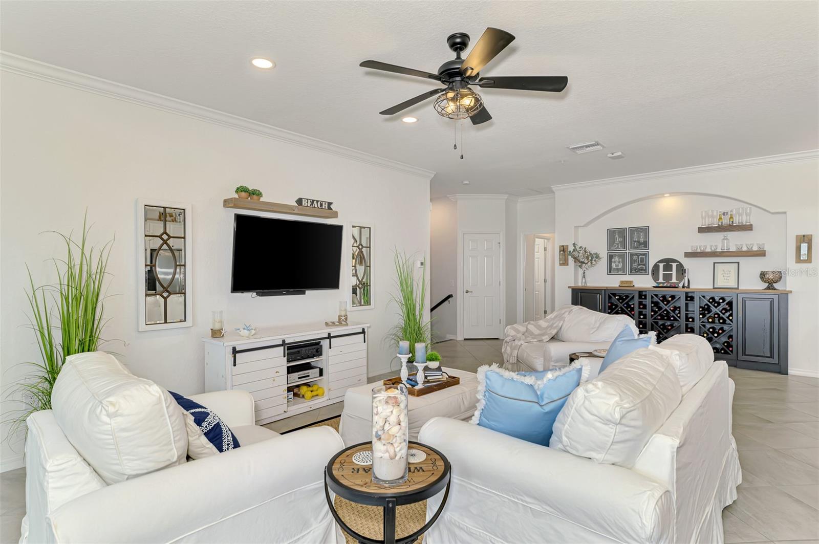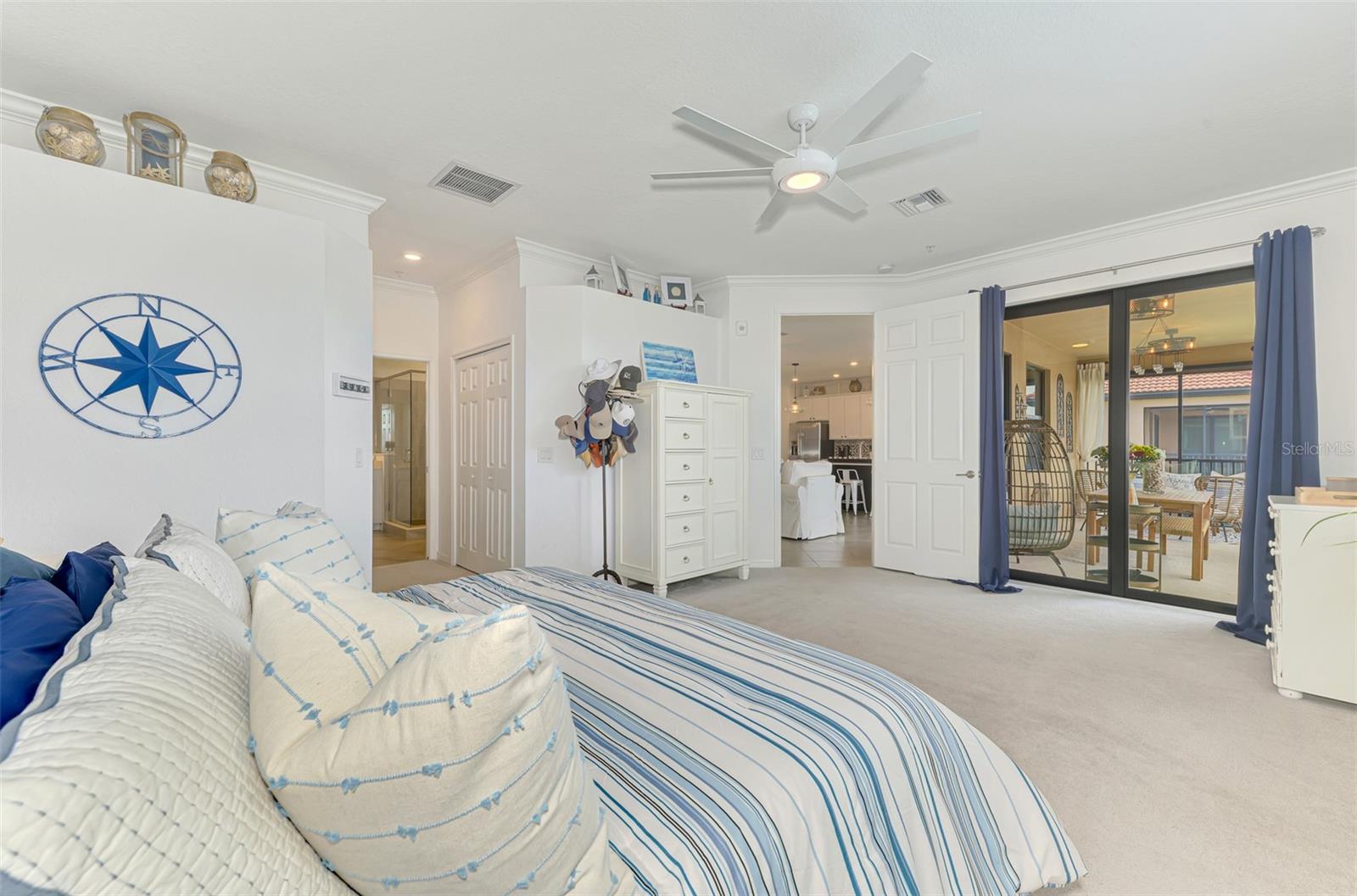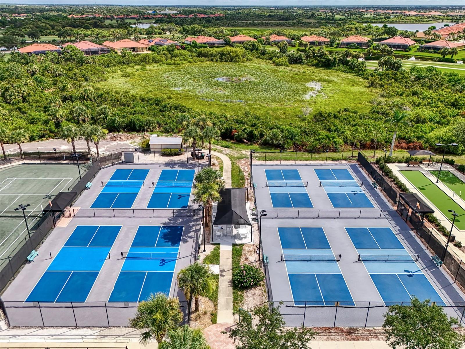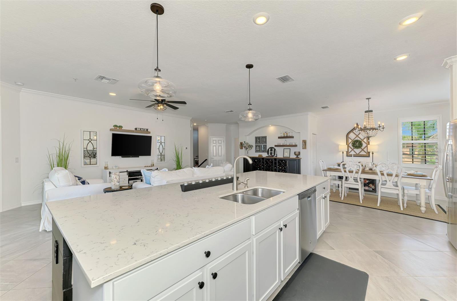Now is your chance to own this lavishly upgraded TOP FLOOR END UNIT condo, located in the highly sought after guard gated golf community of Sarasota National. Enjoy SOUTH FACING water and preserve views right from the comfort of your oversized screened lanai. HURRICANE IMPACT GLASS throughout! Step through the front door to find an impressive 2-story foyer entrance that was re-imagined with custom installed stair treads with matching banister and a decorative tile landing. Once upstairs you will appreciate a large open floor plan that was made for entertaining. Impress your guests with the thoughtfully designed wine bar with hand crafted wood top and sleek floating shelves. The kitchen showcases an designer backsplash, an oversized island outfitted with decorative woodwork, and tasteful quartz countertops. There is a large pantry with custom shelving system, and the cook of the family will enjoy a sleek stainless steel appliance package. The large living room is a great space to gather with friends or to relax and unwind after an enjoyable day on the golf course. Enjoy spectacular water views from every angle as you move through the home. Other upgrades include tile on the diagonal in the main living areas, crown moldings, plantation shutters, and designer light fixtures and fans. The primary suite offers ample space with extra room to create a home office or sitting area. A set of sliders lead out to the lanai, and a large window allows you to enjoy the stunning view right from the comfort of your bed. 2 walk-in closets with custom closet systems provide impressive organization. The en suite bathroom showcases dual vanities with extra storage, an oversized walk-in shower with seamless glass enclosure, and a private water closet. On the opposite side of the condo, you will find 2 additional bedrooms equal in size, both offering generous walk-in closets. A second full bathroom is just off the two extra bedrooms and features a tub/shower combo. It is easy to create privacy for guests from the main living space by closing the hallway privacy door. There is an in-unit laundry room with an upgraded stackable washer and dryer, freeing up space for more storage. Also included is a large 2 car garage with a 3rd tandem space to create a workshop, home gym, or to store your toys. This building is completely maintenance free and includes all landscaping maintenance, pest control, cable tv, water, sewer, and trash pick-up. Your monthly HOA fee also includes 2 GOLF MEMBERSHIPS that require no extra buy-in fee! This condo is perfect to use as a full-time residence, a part-time seasonal home, or even a great investment... one that will generate substantial rental income! Live like you are on a 5-star vacation with a 30,000sf clubhouse with resort style pool, hot tub, outdoor tiki bar serving food and drinks daily, a coffee house, fine dining restaurant, 7,000sf fitness center with top-of-the-line equipment and classes, day spa, card room, bocce ball, pickle ball, tennis, dog park, playground, event lawn, and 18-hole championship golf course. Sarasota National is a guard gated 2400-acre International Audubon Bird Sanctuary that offers some of the most beautiful water and preserve views in all of Venice. This home is just minutes to the Atlanta Brave's spring training camp at the CoolToday Park Stadium, as well as the town center of Wellen Park. Explore 3 local beaches and historic downtown Venice, all less than 15 minutes from your front door!
