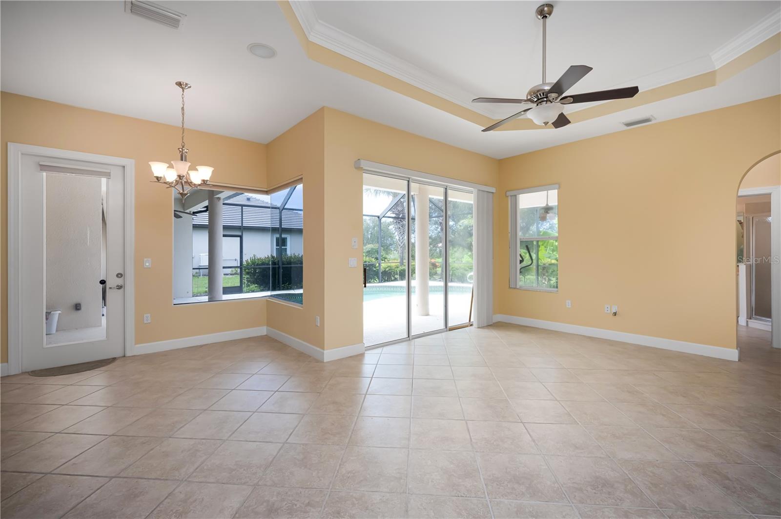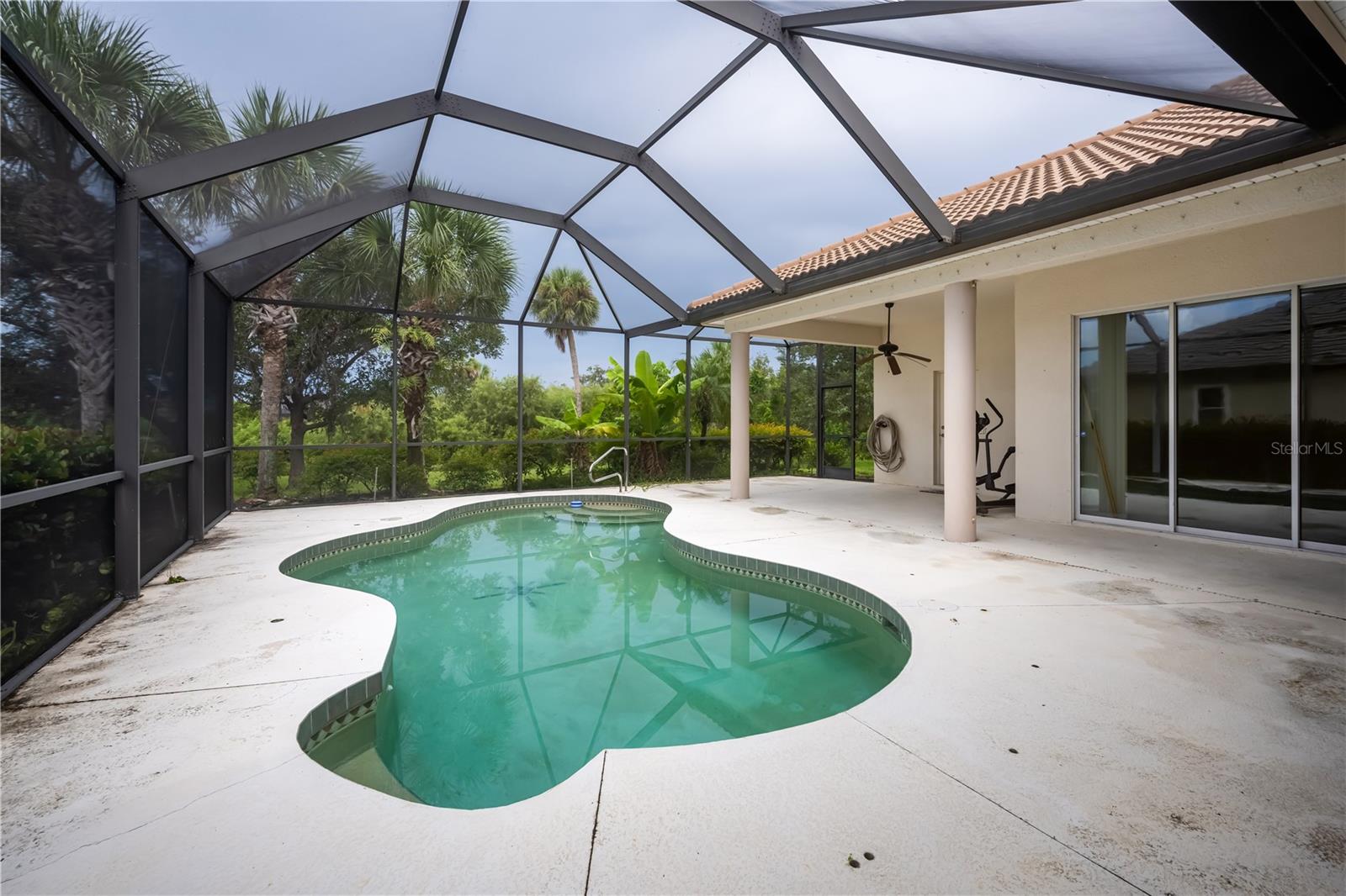 One or more photo(s) has been virtually staged. Welcome to this beautiful 4-BEDROOM, 3-BATH, OFFICE, POOL home located in the highly desirable RIVERWOOD GOLF COMMUNITY. Perfectly positioned on an oversized corner lot, this property provides added privacy and tranquility while placing you just minutes from championship golf, world-class boating and fishing, shopping, dining, and stunning Gulf Coast beaches including Boca Grande and Manasota Key. Inside, you'll find a bright and spacious floor plan featuring an open kitchen, a tray ceiling in the living room, and a luxurious master bedroom with its own tray ceiling. The master bath offers a glass shower door, soaking tub, dual sinks, and dual walk-in closets, a true retreat for relaxation. Bedrooms 2 and 3 are generously sized and share a full bathroom, while the fourth bedroom is located in a private wing alongside another full bath with direct access to the lanai and pool area, making it perfect for guests. The dedicated office provides the ideal space for working from home or creating a cozy study. Step outside to your own heated pool and screened lanai, the ideal spot for entertaining or unwinding. Living in Riverwood means enjoying so much more than just a home, it's a complete lifestyle. Residents benefit from championship golf, a state-of-the-art fitness center, tennis and pickleball courts, a community pool with tiki bar, and a full calendar of social events. With lush nature trails and meticulously maintained landscaping, Riverwood offers a serene and active retreat. Whether you're searching for a seasonal escape, a vacation home, or your forever residence, this gated golf community delivers it all. Don't miss your opportunity, schedule your tour today!