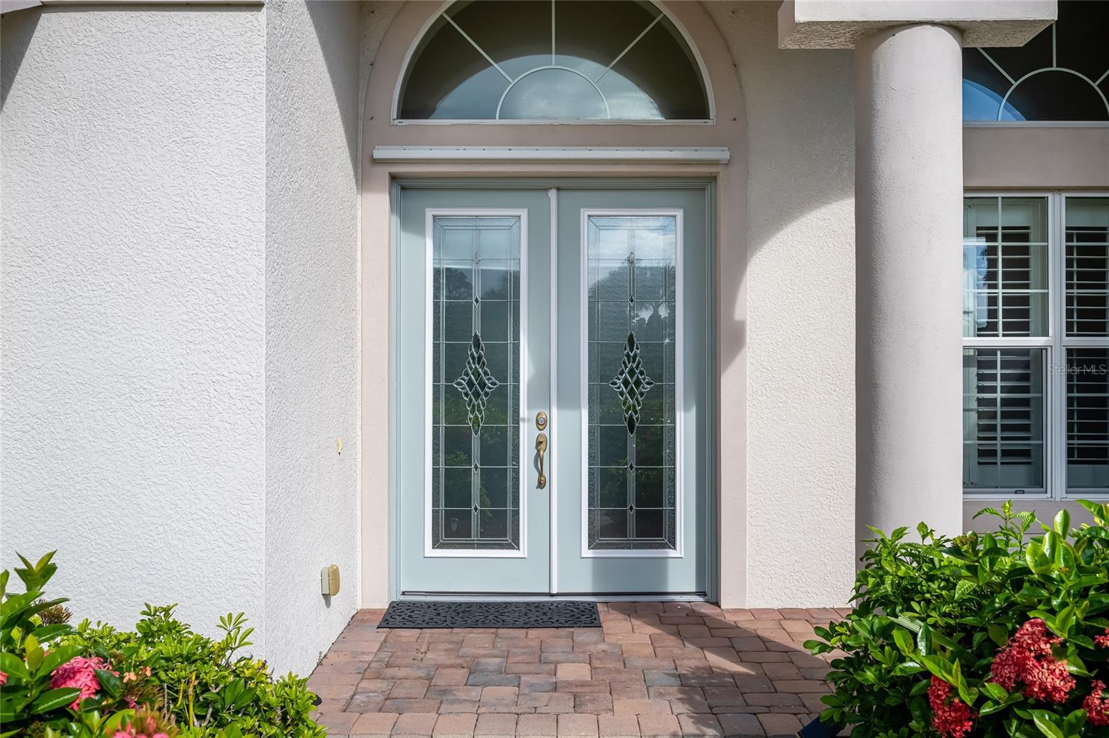 Exterior: Lighting, Private Mailbox, Sidewalk, Sliding Doors