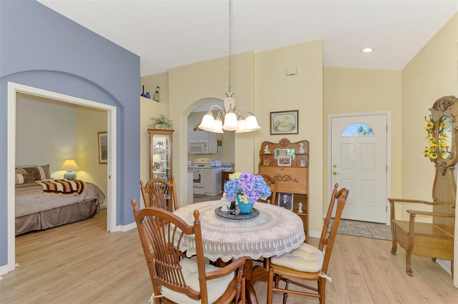 Living the life at Oak Forest in the 2-bedroom, 2-bathrooms with Den Villa! Just minutes from Gulf Coast Beaches, shopping, dining, medical! Lemon Bay Playhouse, Venice Art Theater, Downtown Venice, Downtown Englewood! NO CDD! LOW HOA, This Villa has New Roof, and 4-point home inspection already completed! Home Insurance on this home is LOW! No Flood Insurance required! Seller had luxury flooring put in all areas of home except bedrooms are carpeting! Den offers pocket doors for privacy! Solid surface countertops! Newer A/C and low utility bills. This end unit villa is very light and bright, with garden views all around the home. The lanai is enclosed with windows that you can use year-round for your pleasure! Home is being sold partially furnished. The community is very active with entertainment in clubhouse, social committee, bocci ball, pickle ball, tennis courts, heated pool for the winter and chilled pool for the summer! Nice exercise room, library room, and game room. Did I mention that this Villa is across the street to the Clubhouse! Look forward to your call!