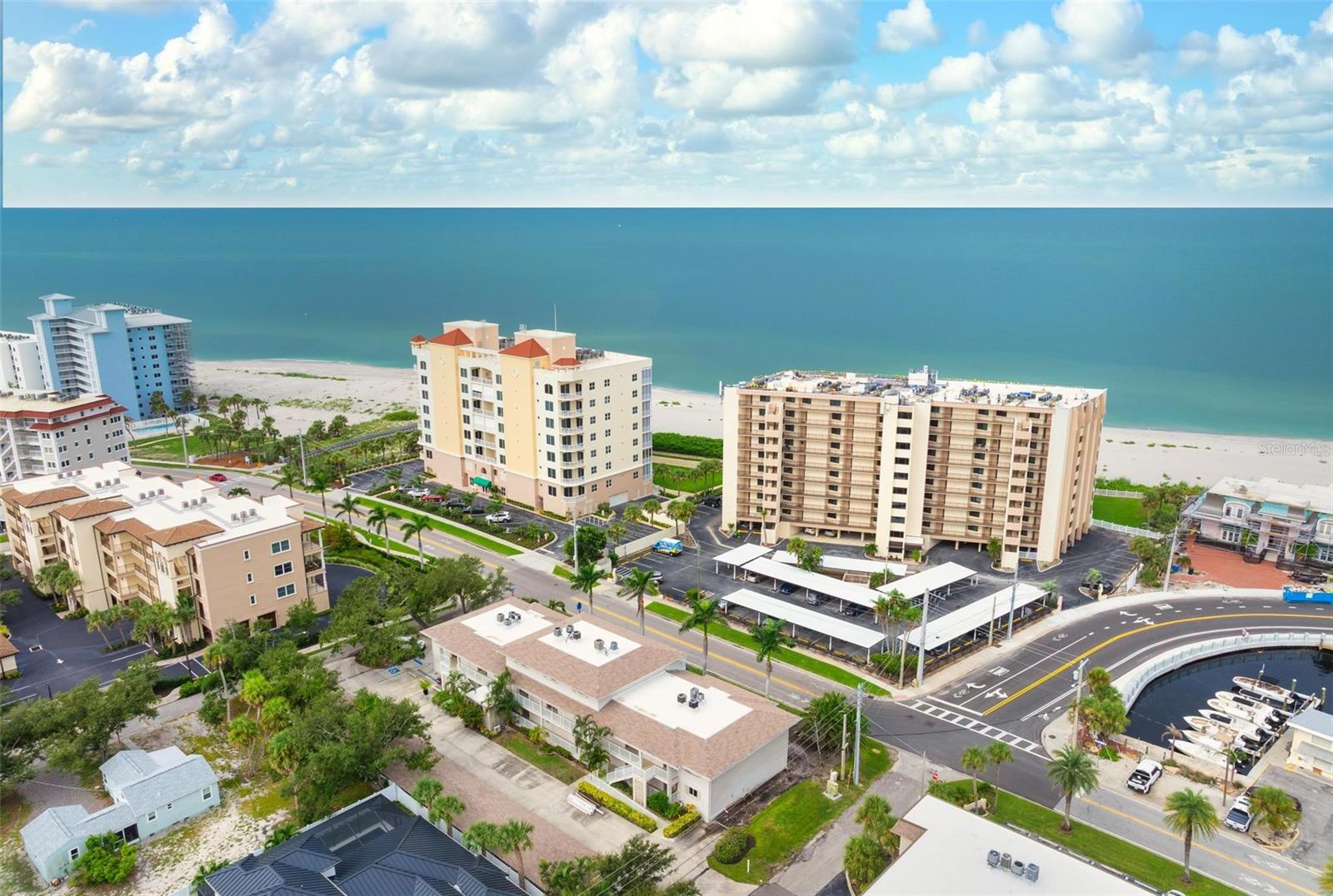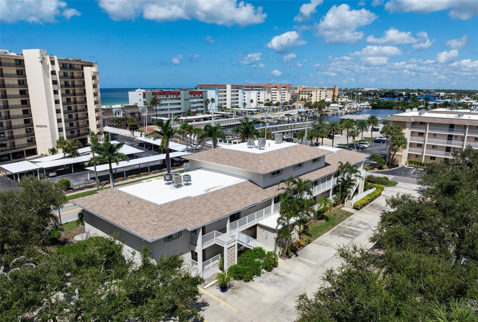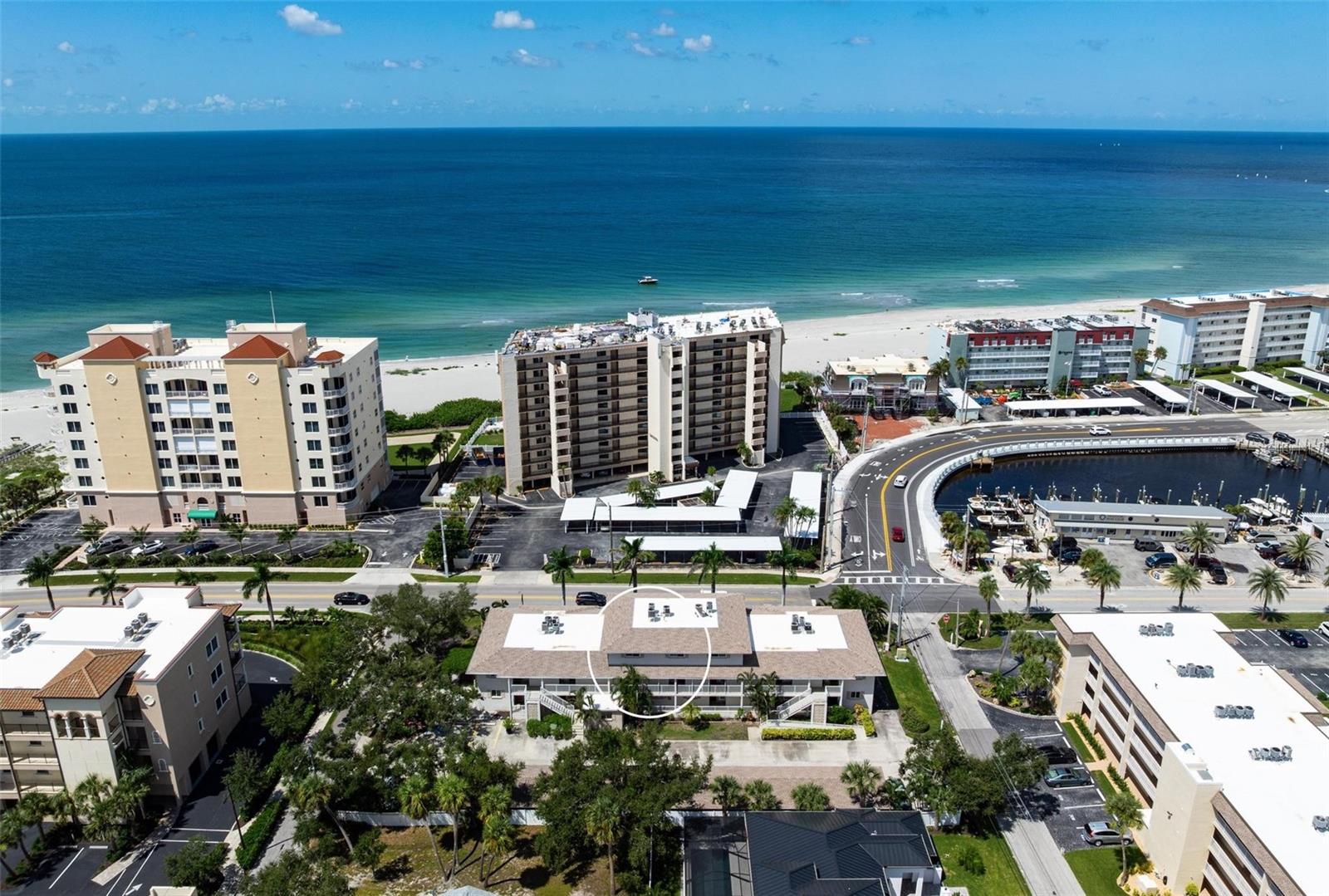 Just steps from the sand, this 2-bedroom, 2.5-bath condo blends coastal charm with a true walkable lifestyle. Less than 500 feet from the Gulf of Mexico, you can start your day with yoga on the beach, then ride your bike into Historic Downtown Venice to browse the farmers market or enjoy boutique shopping and sidewalk cafs. Freedom Boat Club, the Venice Yacht Club, the Venice Jetty, and the Crow's Nest Restaurant are also an easy waterfront stroll away--putting some of the best of Venice right at your doorstep.Inside, the open kitchen features wood cabinetry, stainless steel appliances, and granite counters, seamlessly flowing into a spacious, sunlit great room with a wall of sliders leading to the main balcony. Both bedrooms are designed for privacy and comfort with California closets and ensuite baths, while the primary suite boasts its own private balcony for soaking in Gulf breezes morning and night. The recently renovated primary bath offers a brand-new walk-in shower and all-new fixtures and finishes.With impact-resistant windows and sliders throughout, you'll have peace of mind along with low-maintenance living. Even better, the association is completing a series of exterior upgrades--including new staircases, gutters, carport roofs, fresh exterior paint, and landscape renovations--with all costs covered by the seller.This is a highly desirable property in excellent condition that is rarely available, offering the perfect opportunity to enjoy a coastal lifestyle where the beach, dining, shopping, and recreation are just a walk or bike ride away.