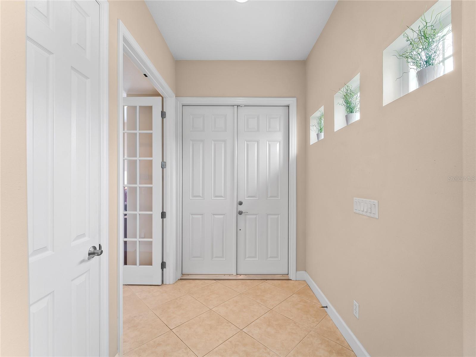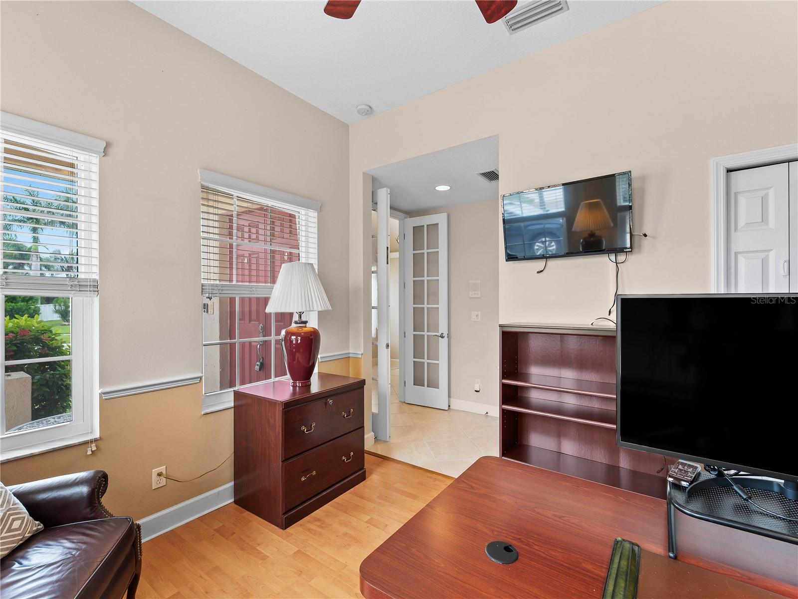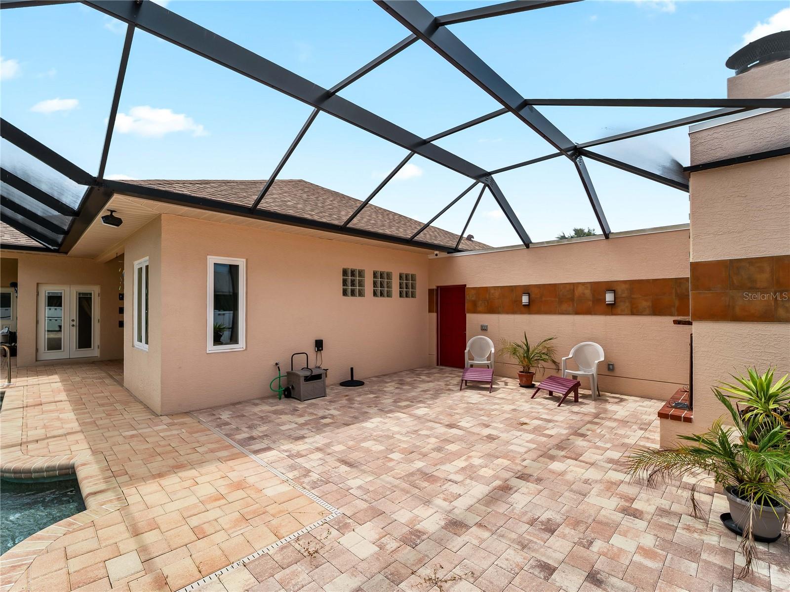 Exterior: French Doors, Hurricane Shutters, Sidewalk