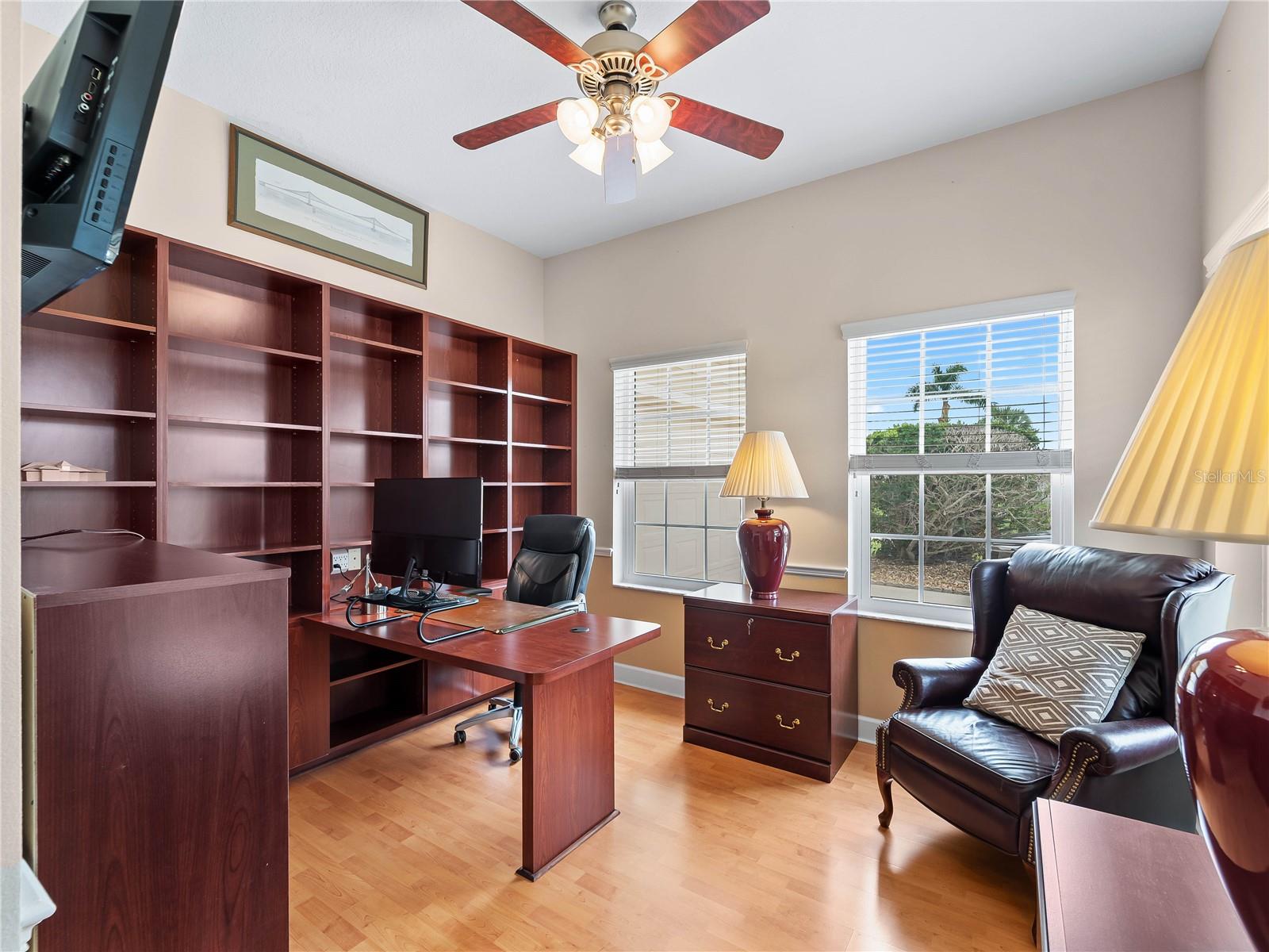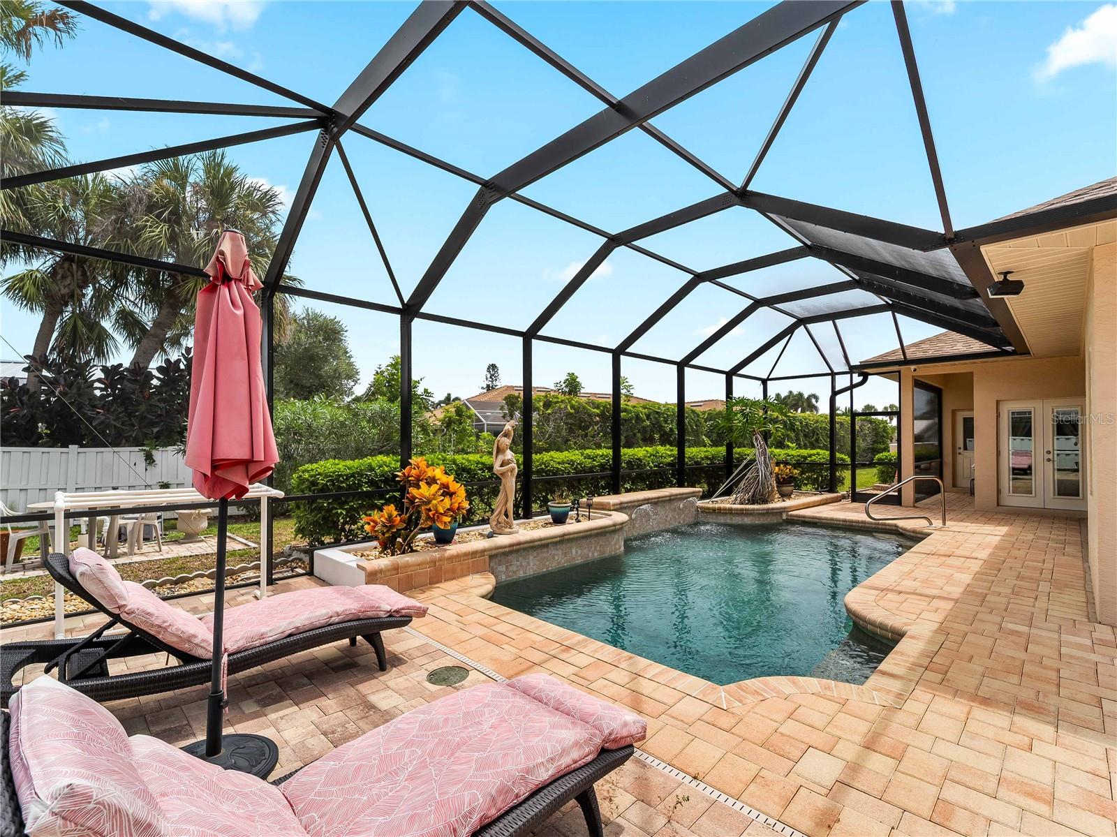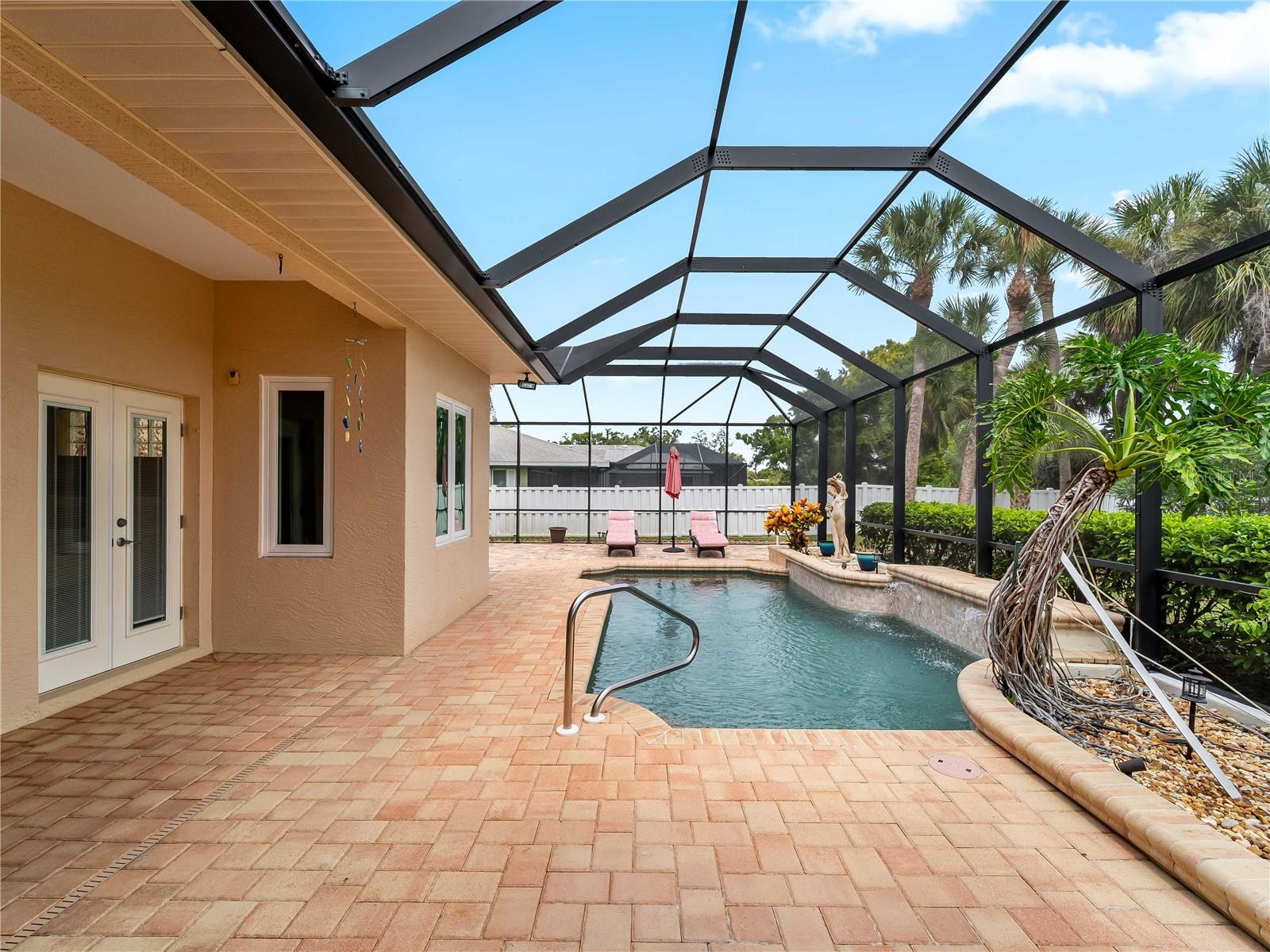 Built by award-winning local Caithness Builders, 1062 Derian Place is an executive-style, custom-designed residence is in the highly desirable community of Sorrento Woods. This one-owner home has been meticulously maintained and offers the perfect blend of elegance, comfort, and functionality.Step inside to soaring 10-foot ceilings throughout, creating an open and airy atmosphere. The thoughtful floor plan features three spacious bedrooms, two full bathrooms, and a private office with a built-in executive desk that includes its own half bathroom, ideal for working from home or managing daily life with ease. Every opening in the home is outfitted with hurricane-impact windows and doors, giving you peace of mind and added security.The heart of the home flows seamlessly into the expansive outdoor living area. Recently enhanced, the oversized screened-in lanai now includes a large entertaining space with a freestanding wood-burning fireplace, perfect for cozy evenings under the stars. The sparkling pool with a fountain feature invites year-round enjoyment and relaxation.Car enthusiasts and hobbyists will appreciate the oversized two-car garage with 10.6-foot ceilings, offering abundant storage and flexibility. Sitting proudly on a corner lot in this beautifully established neighborhood, the home combines privacy with curb appeal.Located just three miles from Nokomis Beach and only two miles from Sarasota Memorial Hospital's South Campus, this property offers unmatched convenience to Gulf beaches, top-rated healthcare, shopping, dining, and all that the Venice and Sarasota areas feature.Here are the need-to-knows: NEW ROOF 2024, ALL OPENINGS ARE HURRICANE IMPACT, AC 2018, WATER HEATER 2025, POOL CAGE/ PATIO EXTENSION WITH FIREPLACE 2021