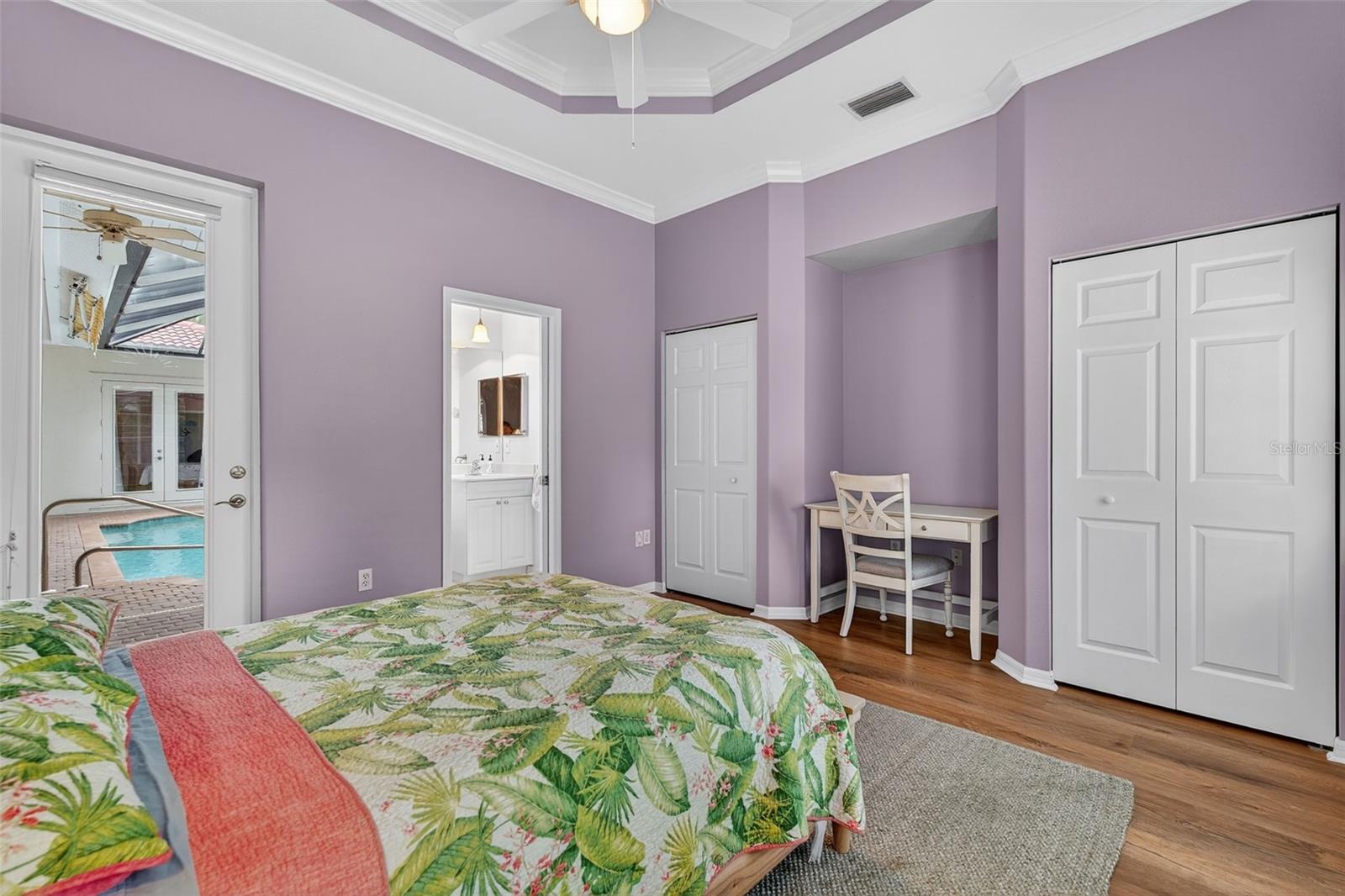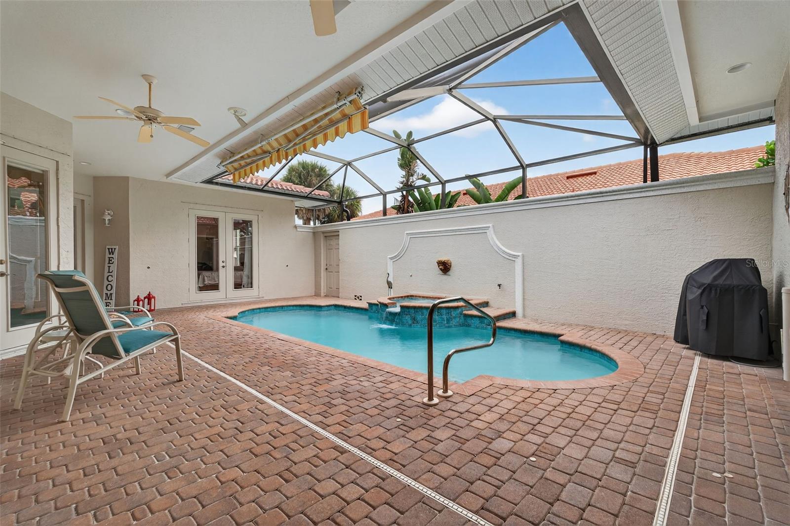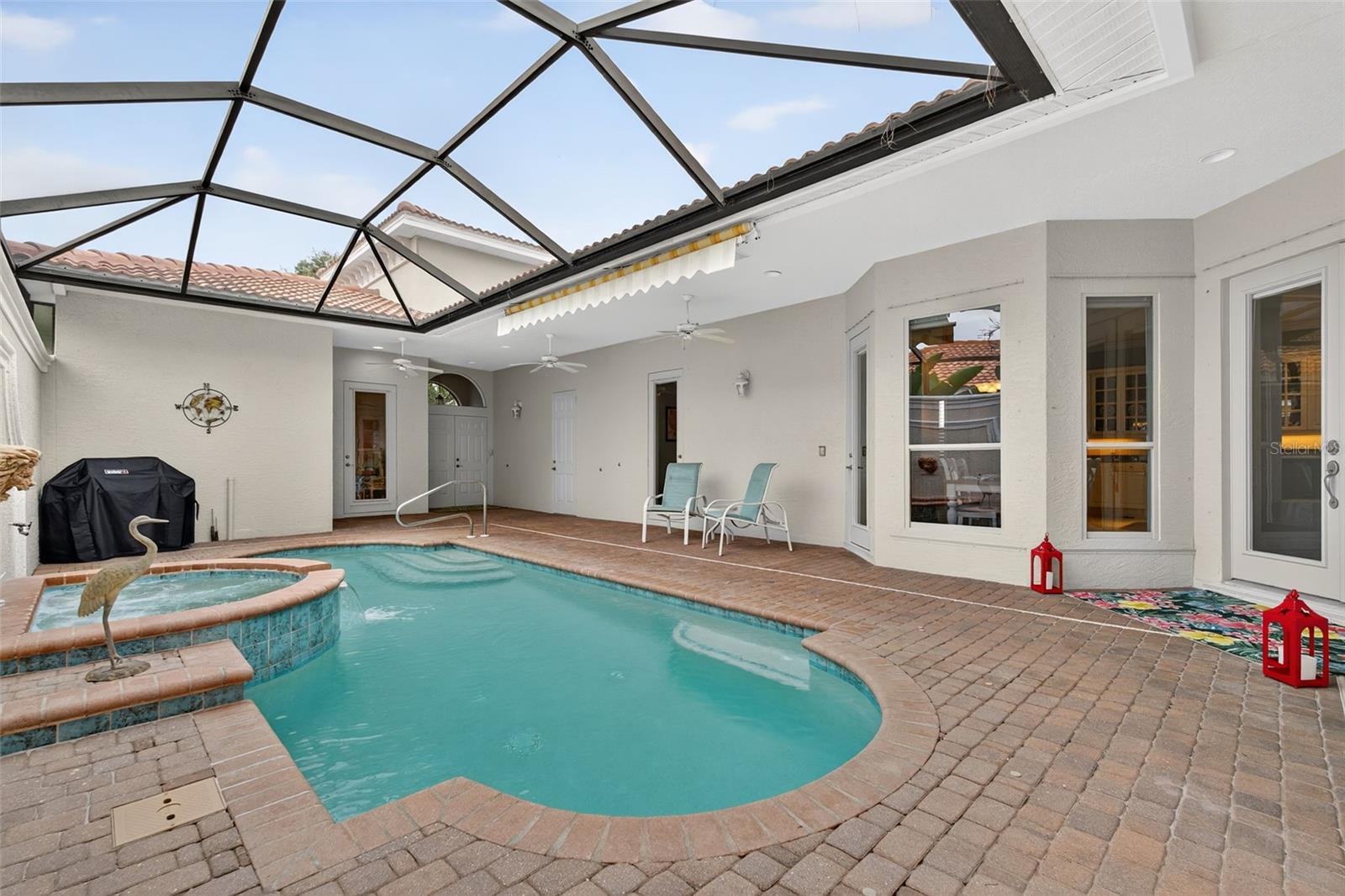 Private Courtyard Paradise with Casita in Bellagio on Venice Island! Unparalleled opportunity to live on the island in one of Venice's most desirable communities, perfect for year-round living or a seasonal escape. This gated community is in one of the highest elevations on Venice Island and in the low-risk X flood zone (no flood insurance required). This home is a seamless blend of luxury and comfort, and recent renovations and upgrades have transformed it into a move-in-ready dream. Rest assured, it's all systems go: the HVAC system was replaced in 2024 and the roof in 2023; a whole house water treatment system with reverse osmosis in the kitchen was added in 2024. Luxury vinyl plank (2024) enhances all 3 bedrooms. The pool was resurfaced and a new electric pool heater installed (2024). There's even a new garage door motor with camera (2024).The largest model in the community, the Trieste floor plan features 3 bedrooms, one of which is a unique, attached Casita with a separate entrance, perfect for guests or use as a private office or studio, complete with its own bathroom. The grand courtyard is an outdoor paradise offering total privacy and true Florida indoor-outdoor living with all rooms surrounding this focal space.An open great room with fireplace and large picture window overlook tropical landscaping from the main living space. Upscale details like crown molding, plantation shutters and tray ceilings lend a premium feel.A comfortable kitchen for cooking and entertaining includes stainless steel appliances, gas cook top with separate Microwave/convection oven and custom glass display cabinets as well as a handy, hanging pot rack.Bellagio is a private, gated community of 142 single-family, maintenance-free Mediterranean-style homes, surrounded by mature trees and tropical landscapes. Resort-style amenities include tennis / pickleball courts, a sparkling pool, Clubhouse with fitness center and gathering spaces. Community roads have recently been repaved and gates upgraded and fortified. Bellagio residents enjoy direct access to the Venetian Waterway Park, which runs along the Intracoastal Waterway. Under 2 miles away in Historic Downtown Venice are endless options for boutique shopping, dining, festivals, Centennial Park's concerts and gatherings, and Venice Theater! And several of our stunning Gulf Coast beaches are situated under 2 miles as well. Schedule an appointment to view this one in person to appreciate its unique details.