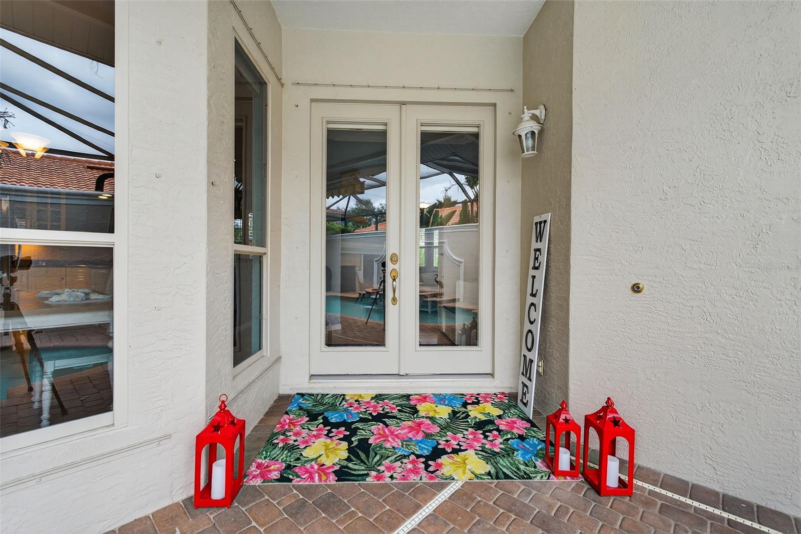 Exterior: Courtyard, French Doors, Hurricane Shutters, Lighting, Private Mailbox, Sidewalk, Sliding Doors