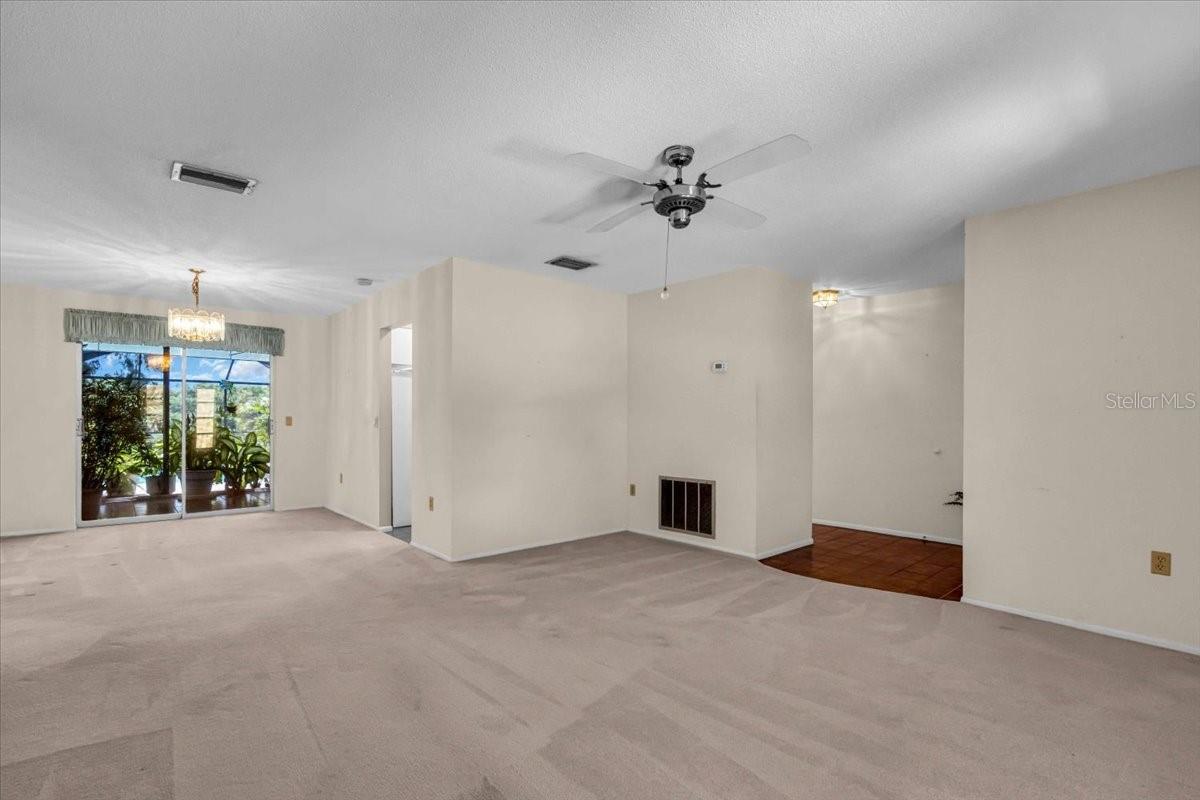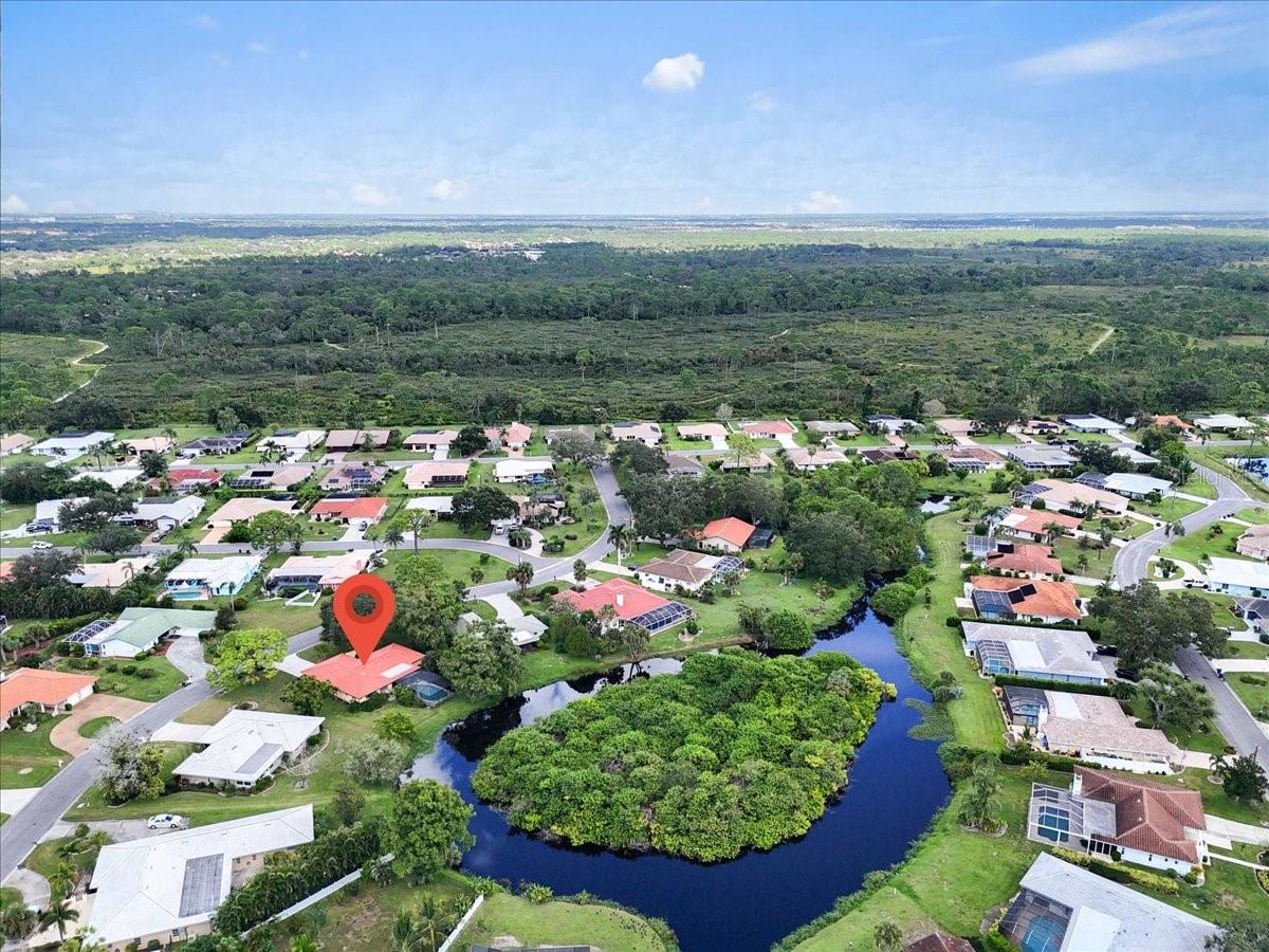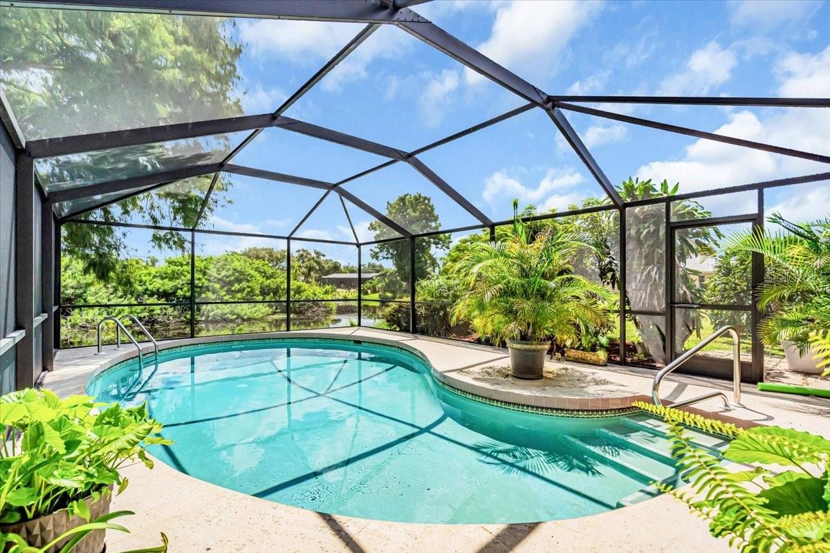 Located on a quiet street in the popular community of Sorrento East, this charming canal-front home offers serene living surrounded by mature landscaping and abundant Florida wildlife. The front atrium patio welcomes you with a cozy seating bench and lush greenery, with a screened entry. This home has 2 bedrooms, 2 baths with bonus office/den, and a two-car garage. Inside, the home features a spacious split floor plan with a living room, dining room, and a kitchen that opens to a family room and additional dining area. The kitchen has plenty of counter space with a functional layout that includes a pantry and a pass-through window to the lanai, making entertaining a breeze.Your guests will be quite comfortable in the guest suite with a walk-in closet, ensuite bath, and pocket doors for privacy, and the other serving as a flexible office or den space, also with pocket doors. The master suite is generously sized, featuring a large walk-in closet and an ensuite bath with a walk-in shower. Sliders from both the dining room and family room lead to a fully enclosed lanai with a lovely pool, all screened in and overlooking the peaceful canal. The outdoor area offers ample space for dining, lounging, and even a TV setup--perfect for relaxing or entertaining while enjoying the tranquil view.Additional highlights include a spacious laundry room, plenty of storage throughout. Ideally located in Nokomis you are just minutes to area beaches, shopping, and restaurants both in Venice and Sarasota. With no CDD fees, a low HOA, and solid bones, this home is full of potential. A little vision and updating could transform it into your perfect Florida retreat in a wonderful neighborhood.