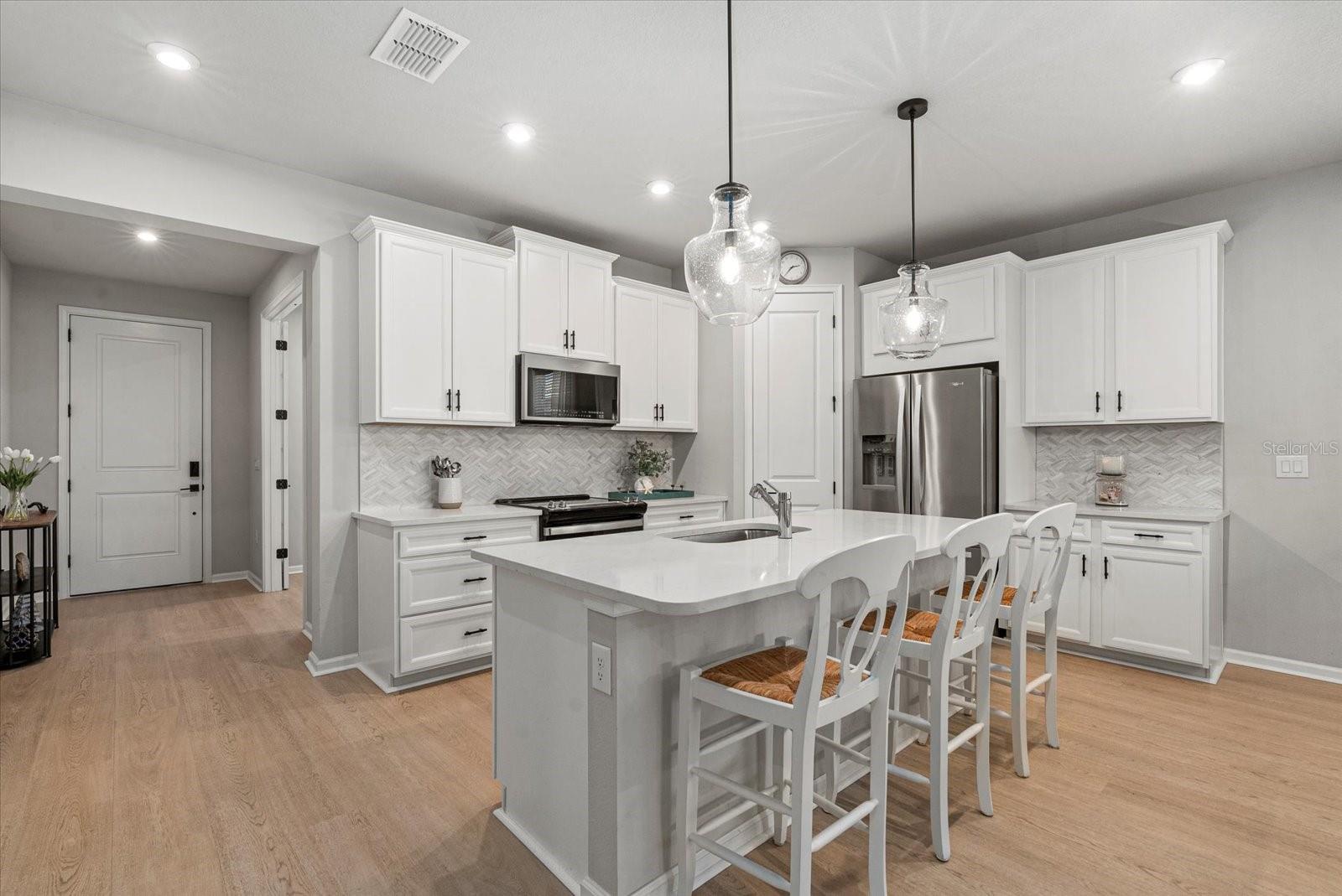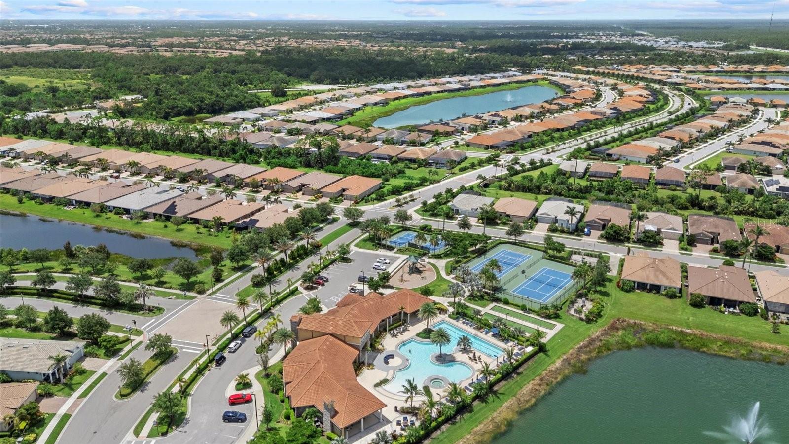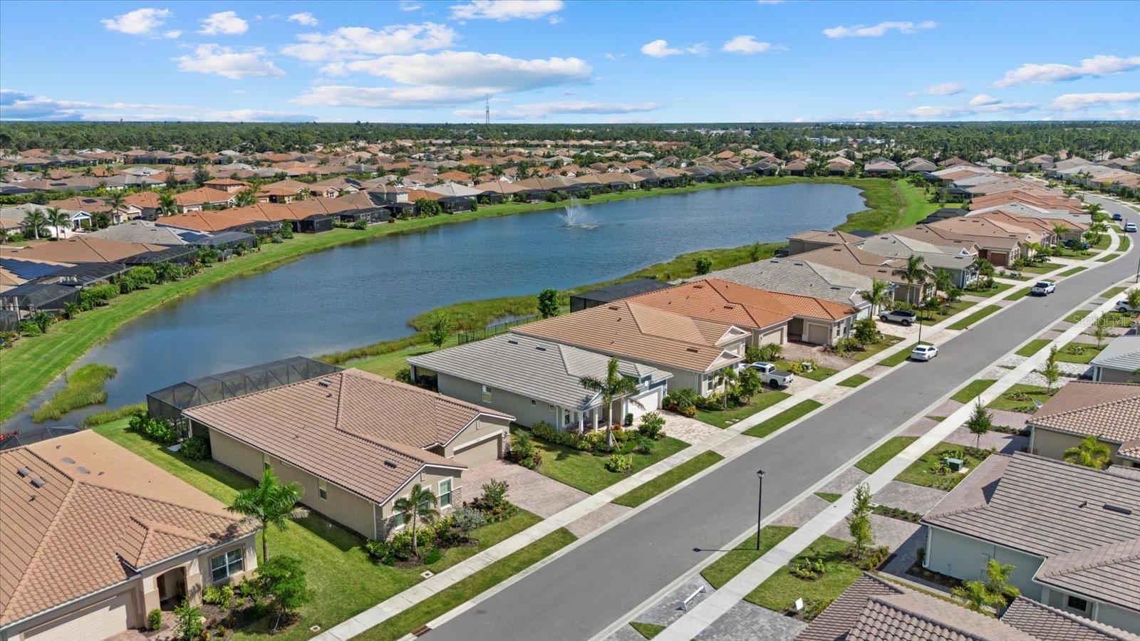 3 BEDROOMS PLUS A DEN 2 BATHROOMS 2-CAR GARAGE LAKE VIEWS RESORT-STYLE COMMUNITY LIVING. From the moment you arrive, this home welcomes you with a charming front porch -- the perfect spot to sip coffee, catch the Florida breeze, and wave to neighbors strolling by on the community sidewalks. Inside, Luxury Vinyl Plank flooring flows throughout the entire home, setting a warm, modern tone. Just off the entry, a bright den/bonus room features four windows that fill the space with natural light -- ideal for a home office, library, or creative retreat. The spacious kitchen boasts elegant white shaker cabinets, a stylish backsplash, Stainless Steel appliances, and a large island with seating for four. A generous corner pantry provides ample storage for food and small appliances. The open concept living and dining areas flow seamlessly, making entertaining effortless. Sliding glass doors extend the living space onto the large, screened lanai, where you'll enjoy sparkling lake views. An additional pull-down screen offers extra privacy or shade.The primary suite is a true retreat -- spacious, bright, and featuring a linen closet plus a spa-inspired ensuite with DUAL VANITIES, a WALK-IN SHOWER, private water closet, and an oversized WALK-IN CLOSET that runs the full length of the bedroom. Two guest bedrooms are tucked into their own private wing, each comfortably sized. The guest bath also impresses with DUAL VANITIES and a tub/shower combination, offering both style and function.This gated community is designed for those who value resort-style living. Residents enjoy a clubhouse, resort pool, tennis and pickleball courts, and a full calendar of social activities. Scenic walking and biking trails weave throughout the neighborhood, encouraging an active lifestyle in a welcoming, neighborly setting. As one of the fastest-growing master-planned communities in the nation, Wellen Park offers a vibrant lifestyle where every detail is designed for convenience and connection. At the heart of it all is Downtown Wellen, a lakeside hub featuring waterfront dining, boutique shopping, live entertainment, and an 80-acre lake perfect for kayaking or sunset strolls. With miles of trails, multiple parks, nearby golf courses, top-rated schools, and quick access to I-75, Venice, and Gulf Coast beaches, Wellen Park blends modern living with a true Florida lifestyle. Copy and paste the following link for a luxury tour.https://player.vimeo.com/video/1120823482?badge=0&autopause=0&player_id=0&app_id=58479%2Fembed