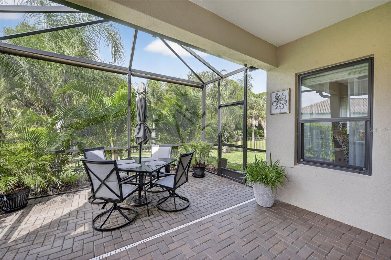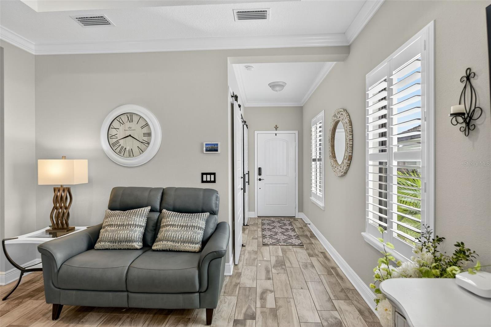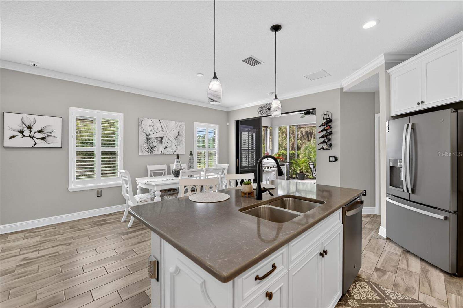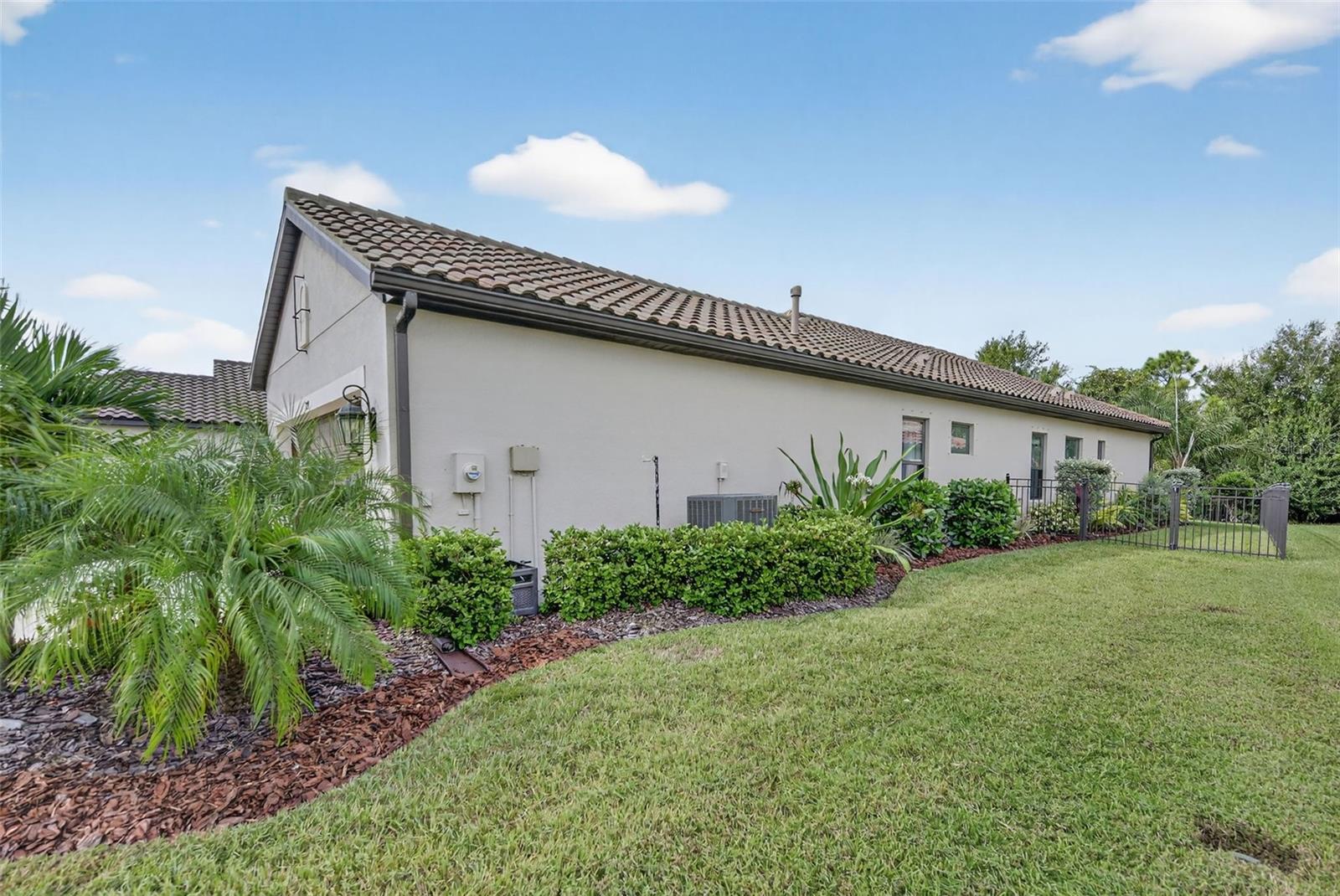 For Sale: Stunning Patriot Model Home - Move-In Ready! Discover modern elegance in this beautifully crafted 3-bedroom, 2-bath home, designed with an open-concept layout perfect for entertaining. The new buyer can enjoy over $70k of upgrades without the wait of adding to new construction. This gem boasts exquisite details like crown molding, a coffered ceiling with custom woodworking, and plantation shutters throughout the living area. The gourmet kitchen shines with quartz countertops, upgraded backsplash with custom glass cabinets, gas cooking for the chef in the family, all complemented by upgraded tile flooring in neutral grey tones to complete the list. Relax in the extended lanai with sealed pavers and an outdoor kitchen, ideal for al fresco dining on your premium, fenced-in lot with professional landscaping.Additional highlights include a den/study with a stylish barn door, upgraded carpet in two bedrooms, ceiling fans throughout, and all rooms cable-ready. Enjoy peace of mind with gutters, a home security system, remaining transferable HVAC warranty plus an extended garage with epoxy flooring. Located close to the amenity center, this tiled roof home is not in a flood zone, has low HOA fees, and no CDD. Don't miss this opportunity to own a meticulously upgraded home built for comfort and style! #DreamHome #ForSale