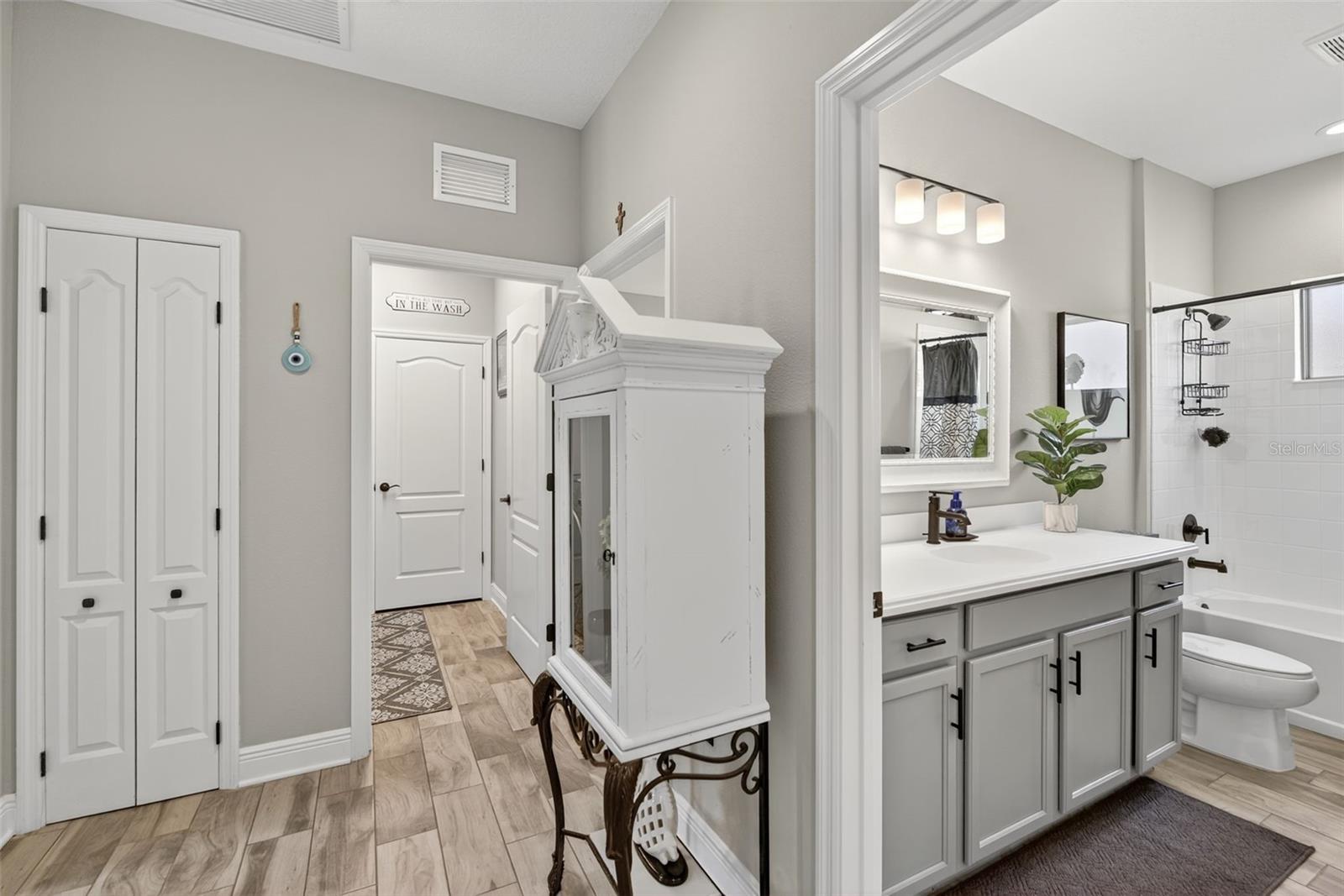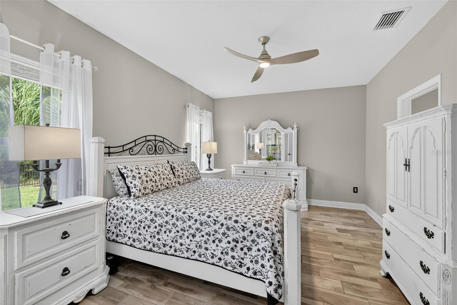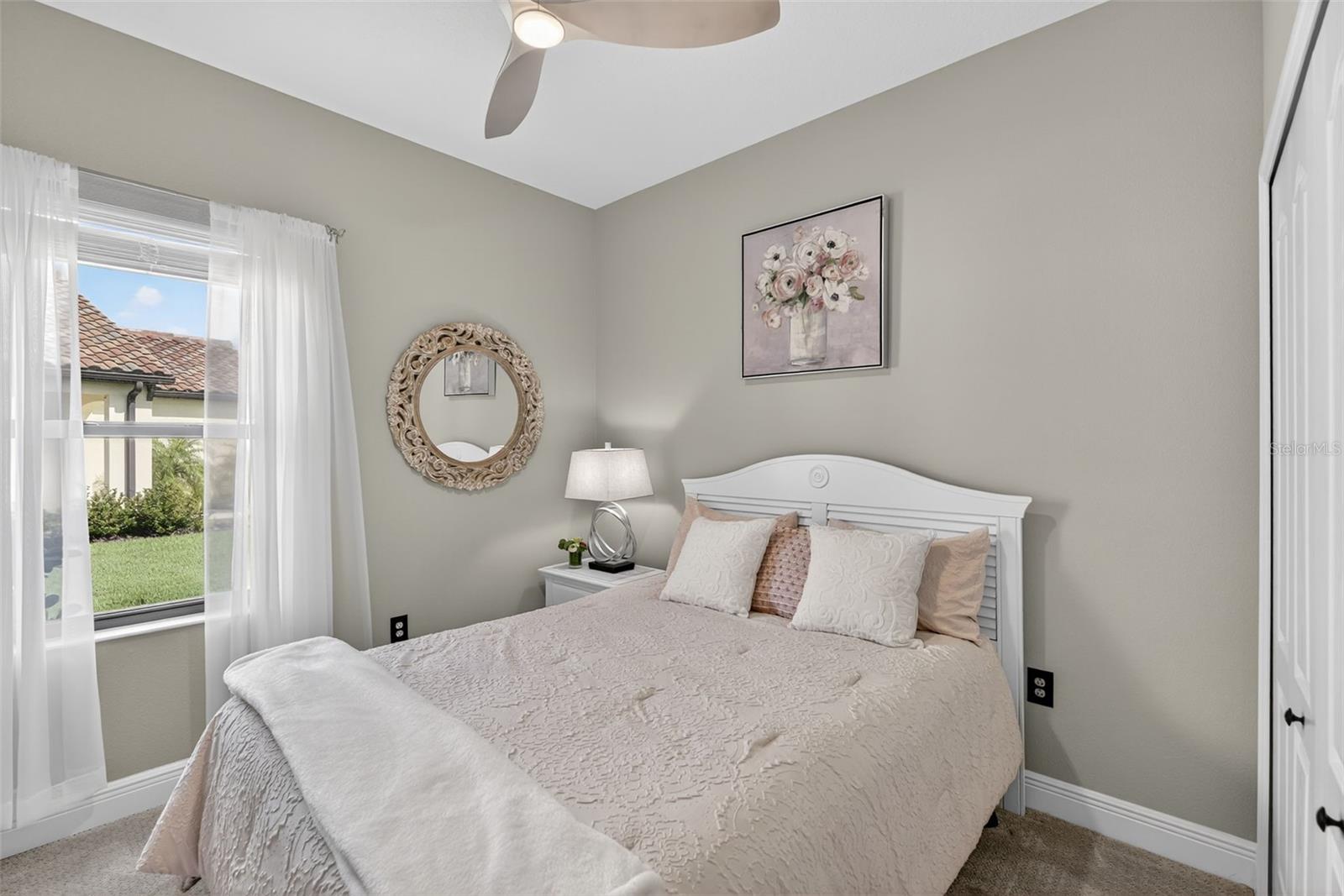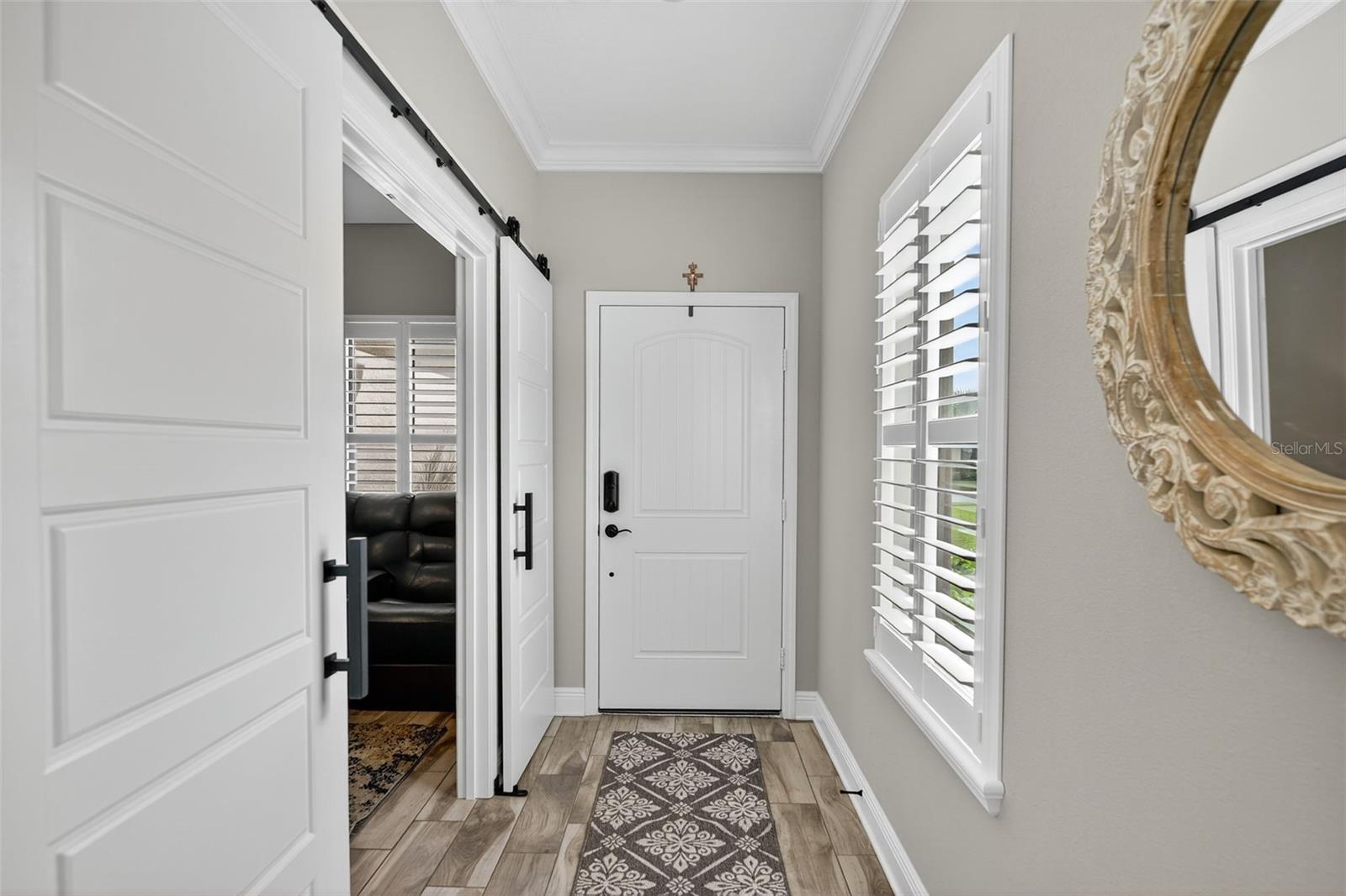 For Sale: Stunning Patriot Model Home - Move-In Ready! Discover modern elegance in this beautifully crafted 3-bedroom, 2-bath home, designed with an open-concept layout perfect for entertaining. The new buyer can enjoy over $70k of upgrades without the wait of adding to new construction. This gem boasts exquisite details like crown molding, a coffered ceiling with custom woodworking, and plantation shutters throughout the living area. The gourmet kitchen shines with quartz countertops, upgraded backsplash with custom glass cabinets, gas cooking for the chef in the family, all complemented by upgraded tile flooring in neutral grey tones to complete the list. Relax in the extended lanai with sealed pavers and an outdoor kitchen, ideal for al fresco dining on your premium, fenced-in lot with professional landscaping.Additional highlights include a den/study with a stylish barn door, upgraded carpet in two bedrooms, ceiling fans throughout, and all rooms cable-ready. Enjoy peace of mind with gutters, a home security system, remaining transferable HVAC warranty plus an extended garage with epoxy flooring. Located close to the amenity center, this tiled roof home is not in a flood zone, has low HOA fees, and no CDD. Don't miss this opportunity to own a meticulously upgraded home built for comfort and style! #DreamHome #ForSale