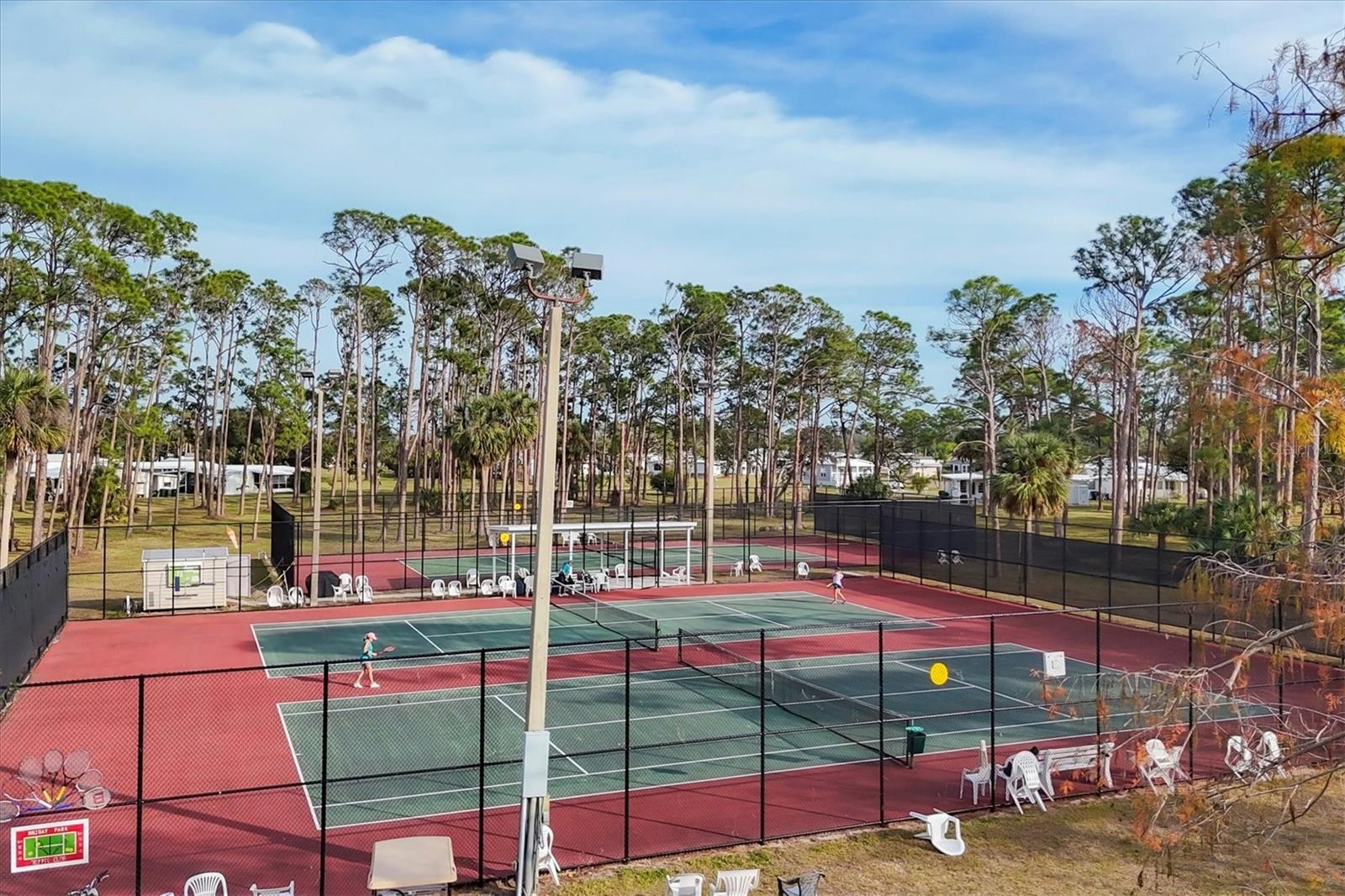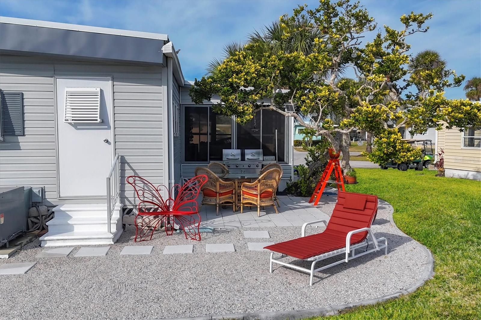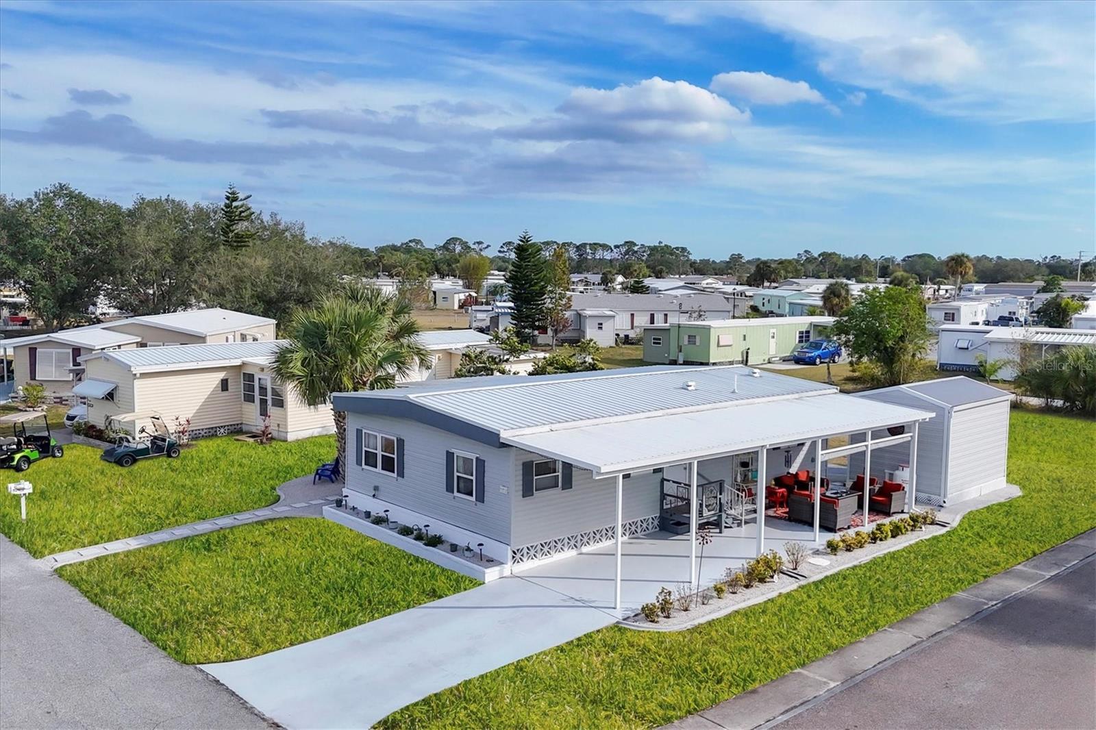 PRICE TO SELL!!! Holiday Park: A 55+ GATED COMMUNITY. CORNER LOT IN A CUL-DE-SAC WITH 2 BEDROOMS, 2 BATHROOMS. Public water and public sewer! METAL ROOF 12/2022, replaced all roof insulation (R40), NEW VAPOR BARRIER, NEW INSULATED CARPORT (wind-rated Florida) 1/2023, NEW FLOORING, UPGRADED KITCHEN, UPGRADED BOTH BATHROOMS, NEW HVAC, and repair duckwork. New ceilings 1/2023, NEW UNDER-HOUSE AND VAPOR BARRIER, NEW SHED 12/2022, NEW LANDSCAPING 3/2023, NEW A/C IN 2020, ELECTRIC UPDATED IN 2017, NEW STAINLESS APPLIANCES, PROPANE RANGE, CEILING FANS, WAINSCOTING, FRESHLY PAINTED, VINYL SIDING, AND ENCLOSED FLORIDA ROOM. Holiday Park is a gated, secure, and safe 55+ community. Amenities at the park include: Clubhouse 2 heated swimming pools Tennis courts Pickleball courts Bocce ball courts Horseshoe pits Billiards tables Exercise room with quality equipment Park Library arts and crafts room. Gated compounds for RVs, boats, and trailers. CONVENIENT TO CHURCHES, SHOPPING, RESTAURANTS AND NEAR BEACHES. Maintenance fees ARE INCLUDED IN THE PROPERTY TAX BILL.Excellent location, peaceful neighborhood, minutes from I-75 & Tamiami Trail! North Port is the perfect place to call home with a central location to shopping, dining, golfing, entertainment, medical facilities, award-winning beaches, and the Spring Training home of the 2021 World Series Champions, the Atlanta Braves. You don't want to miss the opportunity to see this incredible home in person. All information deemed reliable, but not guaranteed; buyer to confirm all.Situated in a vibrant and thriving community minutes away from Warm Mineral Springs, this property promises a lifestyle filled with abundant sunshine, natural beauty, and coastal charm. GREAT ELEVATION! Nestled in the heart of North Port, this home benefits from its prime location, offering easy access to an array of amenities and attractions. Discover the nearby pristine Gulf beaches, where you can bask in the sun, partake in water activities, or simply relish the tranquility of the ocean. Embark on nautical adventures from the conveniently located marinas, allowing you to explore the region's captivating waterways and nearby islands. North Port is known for its thriving shopping and dining scene, featuring a diverse range of retail centers, boutiques, and restaurants. Immerse yourself in the vibrant downtown area, boasting charming shops, art galleries, and entertainment venues. The city hosts numerous cultural events, festivals, and community gatherings throughout the year, ensuring there's always something exciting happening. Beyond the city's amenities, this home offers proximity to breathtaking nature parks and preserves. Lose yourself in the beauty of Charlotte Harbor Preserve State Park, where scenic trails, wildlife sightings, and peaceful waterways await exploration.Nature enthusiasts will find endless opportunities to connect with the outdoors just moments away from this property. North Port also boasts excellent educational institutions, reliable medical facilities, and convenient transportation options. The city's welcoming community and strong sense of belonging make it an ideal place to establish roots and create lasting memories. Experience the best Florida living, with nearby beaches, golf courses, and outdoor recreational activities just a short drive away. Don't miss out on the chance to own this extraordinary home.