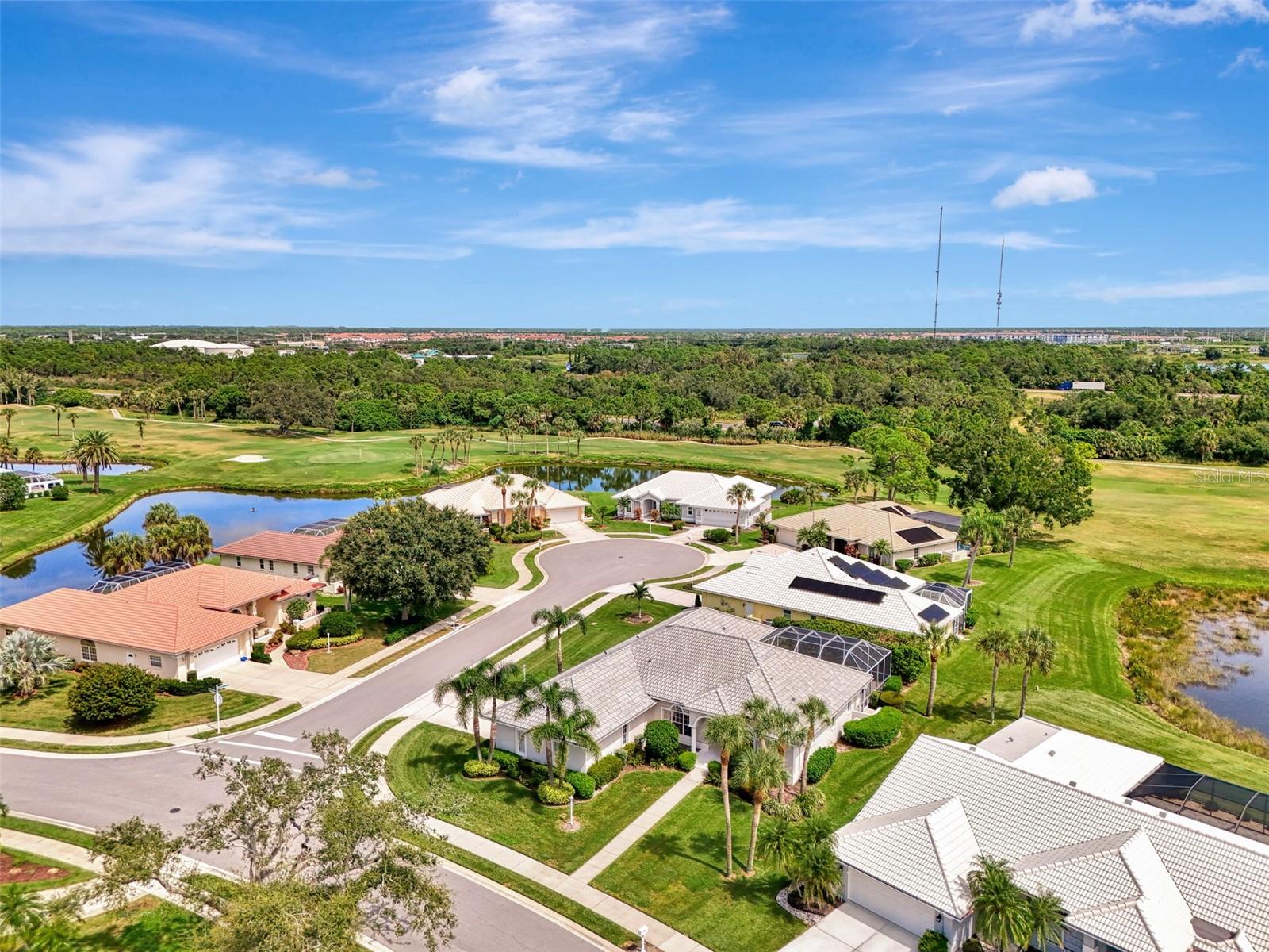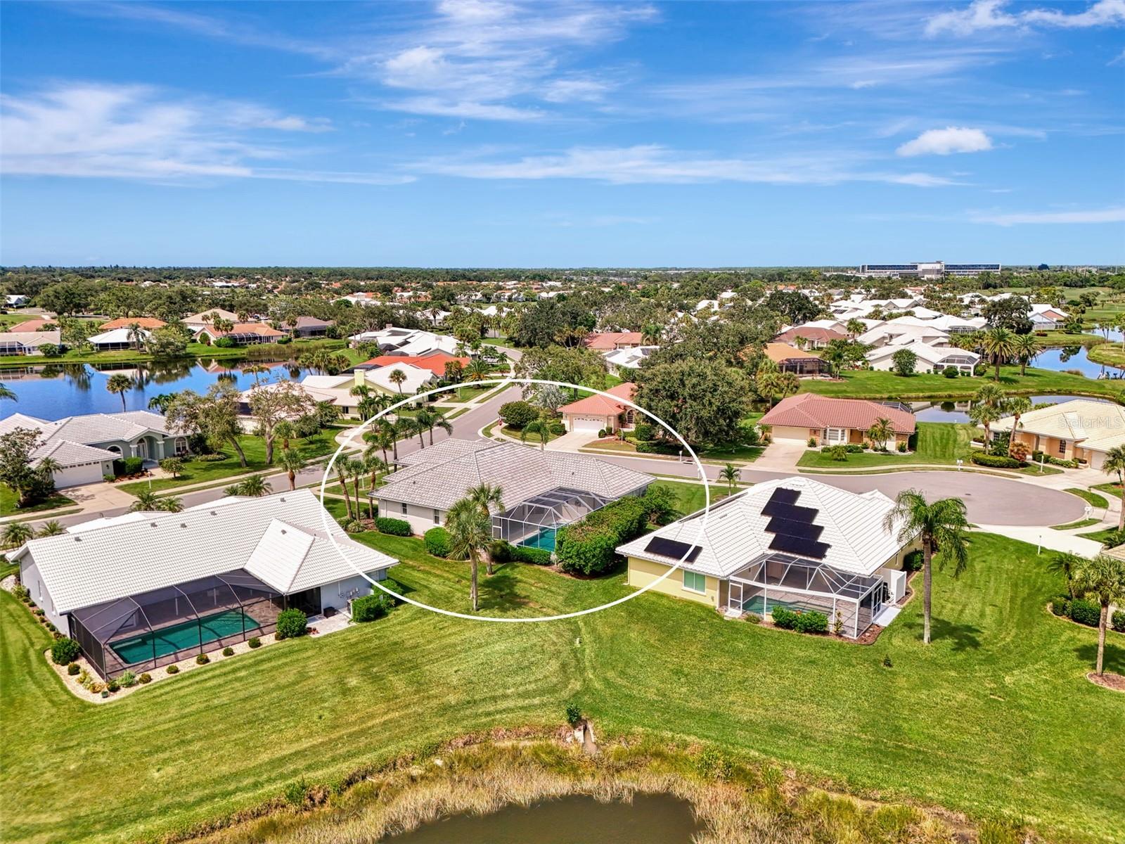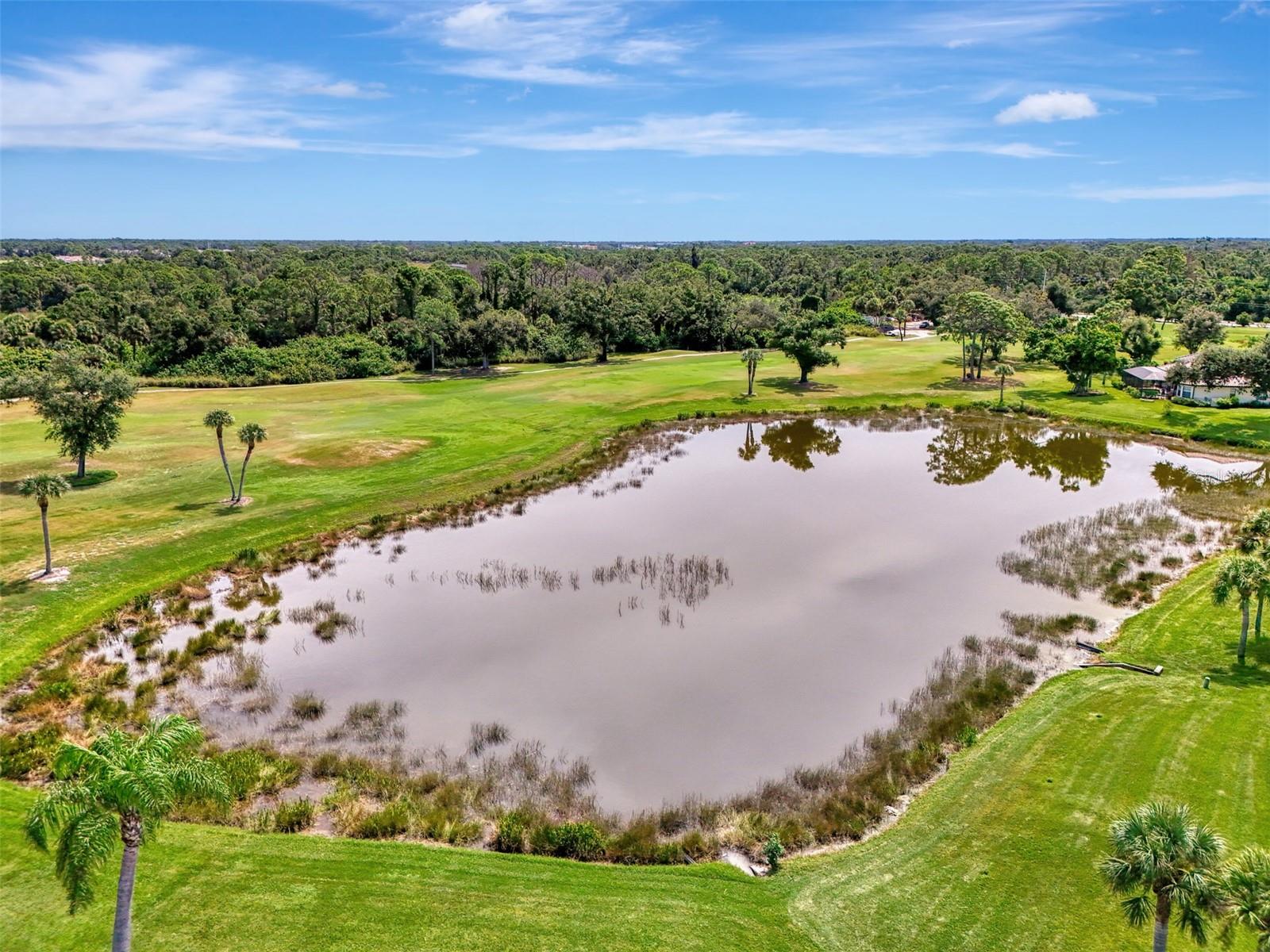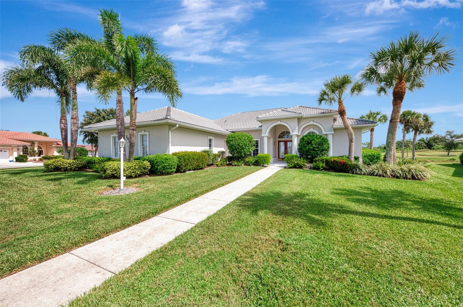 Attractive two bedroom, three bath, pool home, with golf course and water views. The home looks out onto the 7th hole of the Gleneagles course, in the highly desirable, Waterford Golf Community. The home features a gourmet kitchen, with center island, breakfast bar, Corian counters, a Viking double oven and a propane gas stove. There is a large eating area/breakfast nook looking out onto your pool. There is also a formal dining room. The large family room has French doors and could be used as a mother-in law suite with its attached full bath. The master bedroom has sliders out to the pool and two walk-in closets. The garage is an oversize two-car at 768 square feet. The home is being sold partially furnished. The roof was replaced in 2022 and the AC system was replaced in 2021. Be a part of this great community where golf membership on the 27 hole championship course is voluntary. The Waterford community amenities include a large heated pool and spa, clubhouse, fitness room and tennis courts. New pickleball courts are coming very soon! Come and see this beautiful home today!