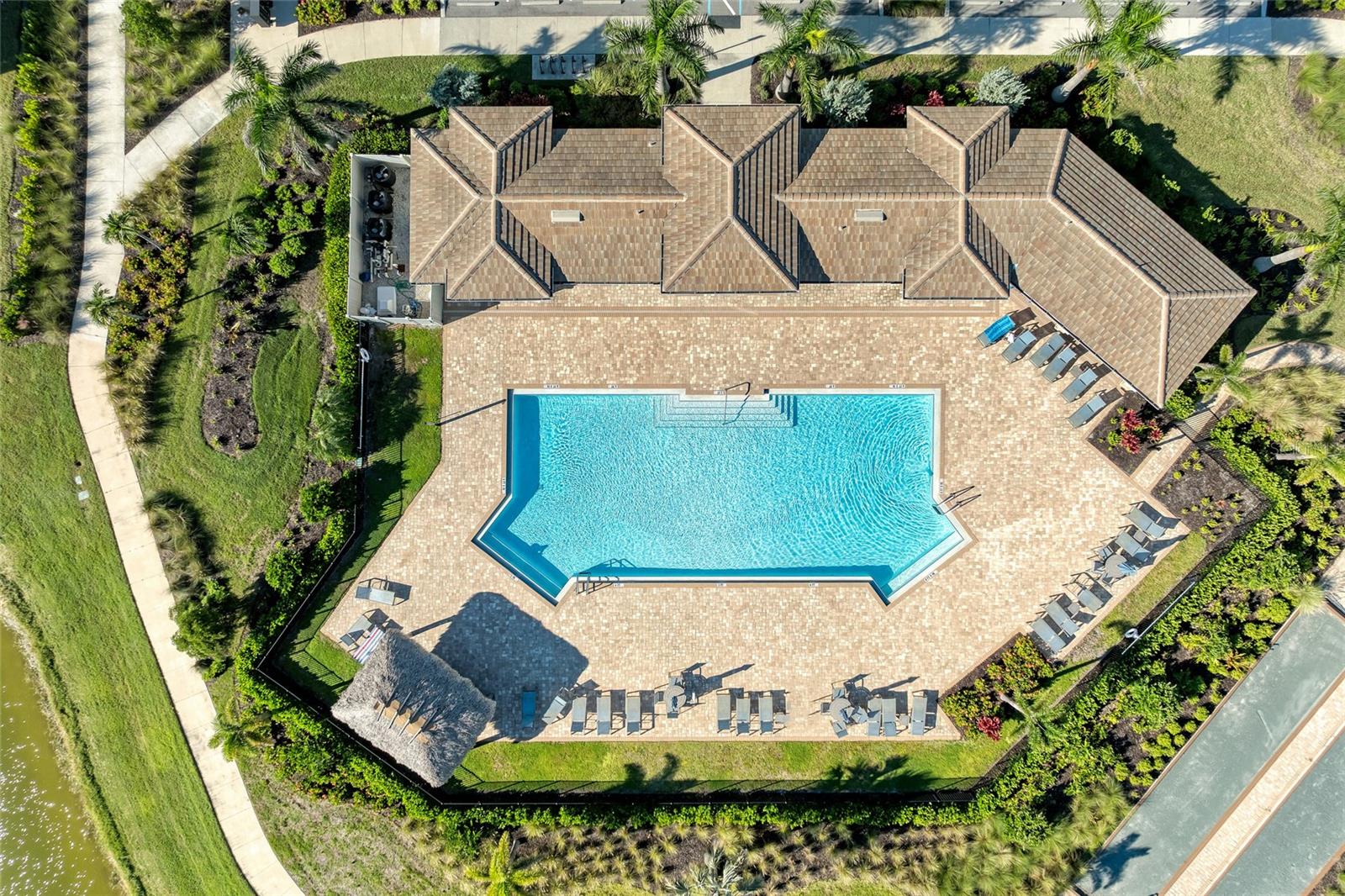 Exterior: Hurricane Shutters, Rain Gutters, Sidewalk, Sliding Doors