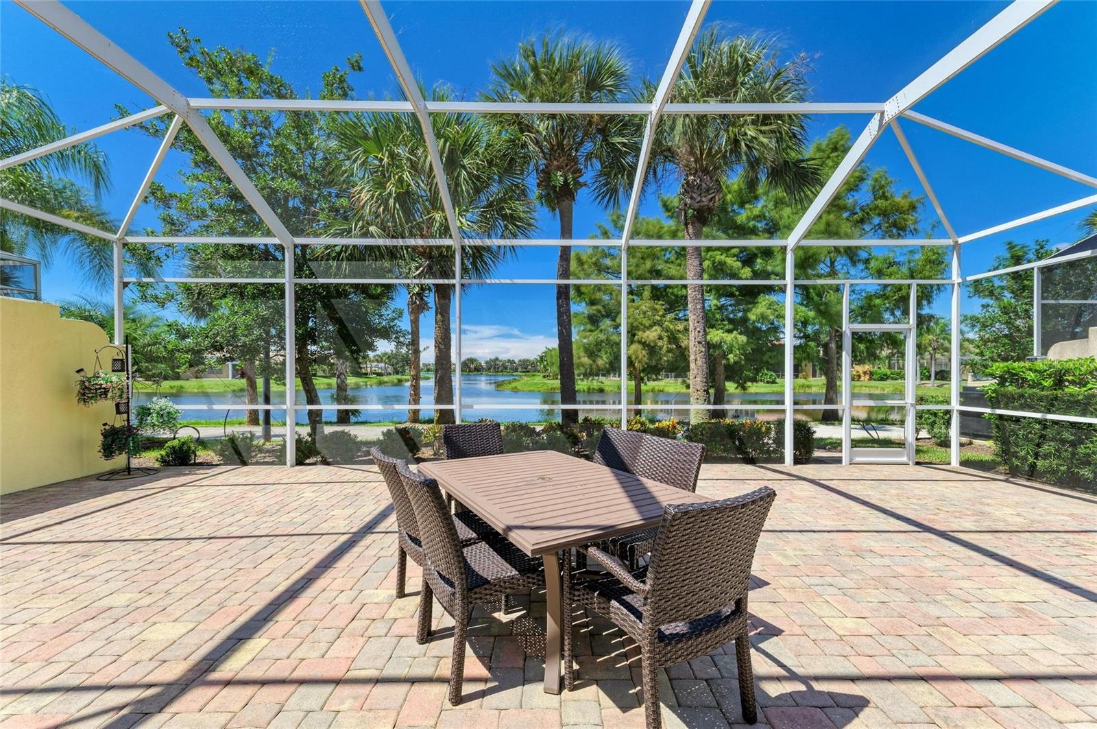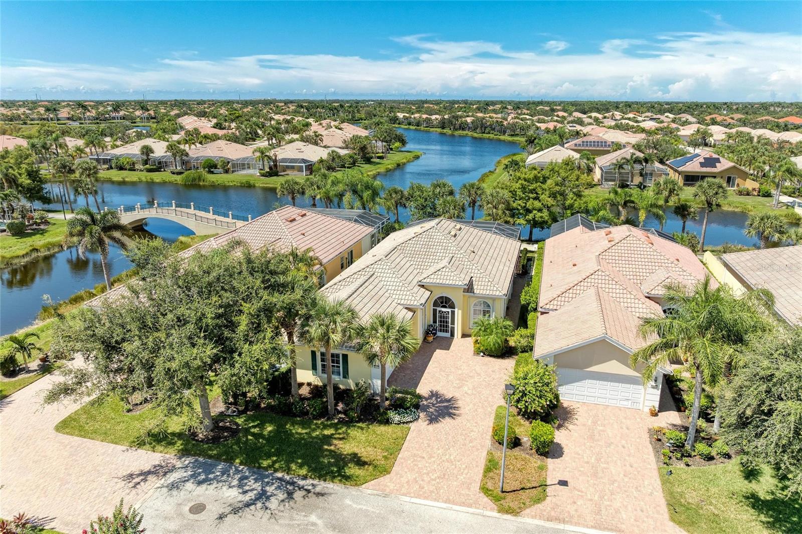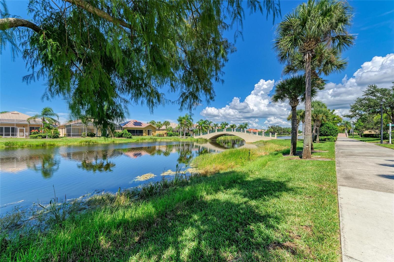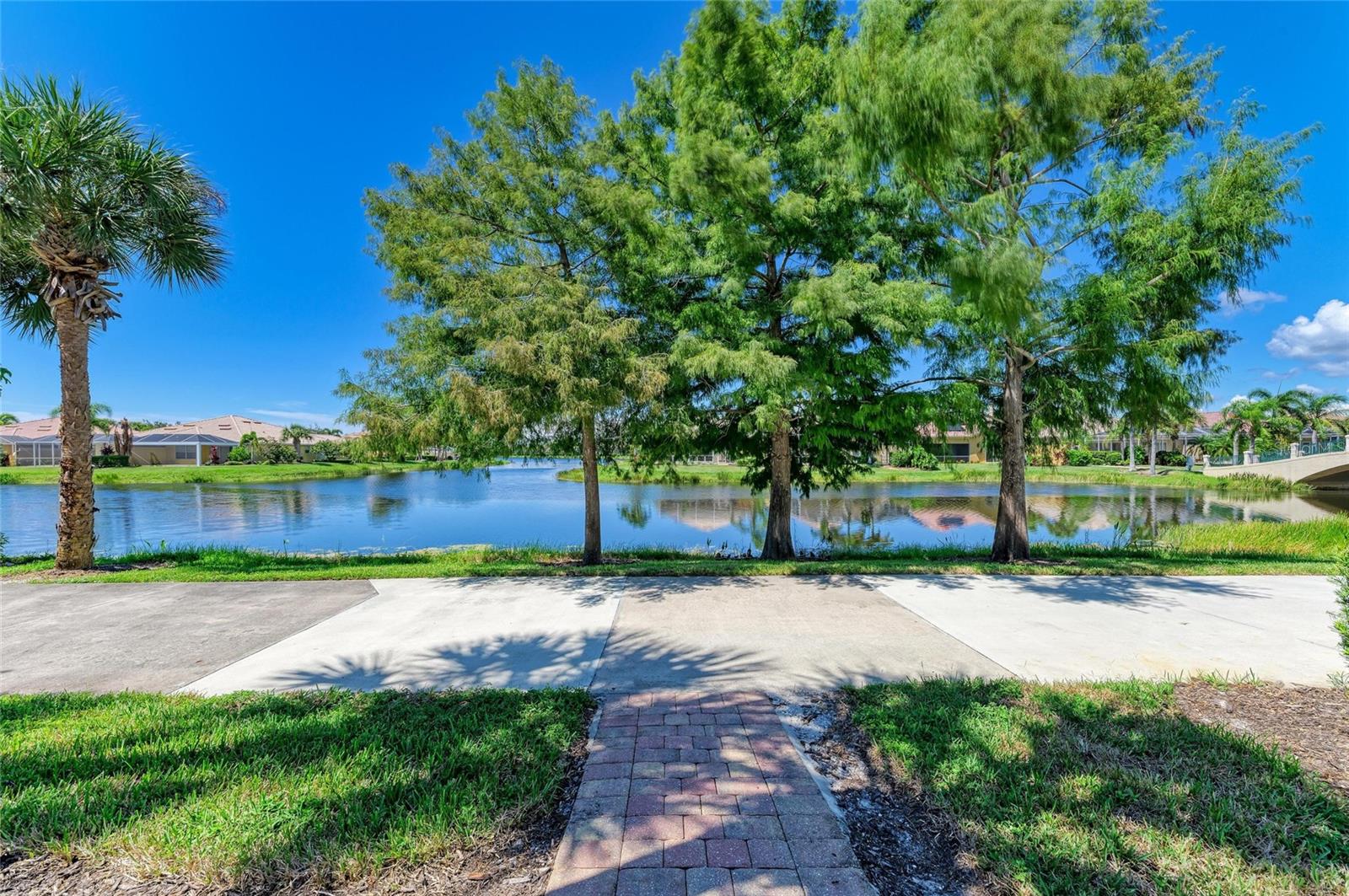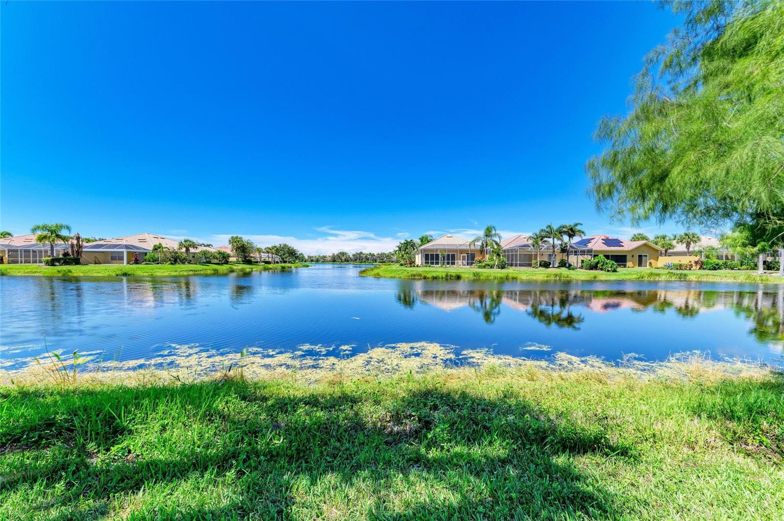 SELLERS ARE MOTIVATED- Reduced $25k! BEST VIEW IN ISLANDWALK! PRIVATE & BEAUTIFUL. Perfectly situated on the sought-after "hammerhead" lot, this home offers breathtaking LONG WATER VIEWS along with sightlines of both bridges. Homes like this don't last long! This true split floor plan features 3 BEDROOMS PLUS DEN, 3 BATHROOMS and SOARING ceilings throughout. Bright and welcoming, the UPDATED kitchen boasts granite countertops, newer stainless-steel appliances, and a custom built-in pantry. The spacious living and dining areas provide plenty of room for entertaining family and friends. The master suite enjoys tranquil lake views with glass sliders that open to the backyard. The en suite has been thoughtfully remodeled with a large walk-in shower, multiple closets, and dual bathrooms--his and hers! On the opposite side of the home, the guest bedrooms share a full bath, giving visitors comfort and privacy. Additional highlights include crown molding throughout, WHOLE HOUSE ACCORDIAN SHUTTERS and STORM SMART SHUTTERS on the lanai for easy storm prep, and tile flooring in every room. This stunning home combines elegance, function, and one of the best views you'll find! IslandWalk is one of VENICE'S most social communities with a FULL TIME ACTIVITIES DIRECTOR, countless events and clubs and activities, TWO community clubhouses, an EVENT center, TWO resort style pools, a LAP pool, 12 PICKLE BALL Courts, 8 Har Tru Tennis Courts, DOG PARK, Playground, Basketball Court, Community Garden- the list goes on! The entire community is surrounded by miles and miles of golf cart trails, walking and biking trails, VENETIAN bridges and water! The Atlanta Braves Stadium is a short bike ride away- enjoy year- round events and activities. The new marketplace features PUBLIX, restaurants, shopping, gas station, etc! Downtown Wellen Park features an 80-acre lake, retail shops, restaurant waterfront dining and rooftop decks, pedestrian-friendly streets, a splash pad, a playground and a public town hall gathering place that hosts live theater and music events. Coming soon to downtown Wellen Park- a hammock grove and a permanent food truck area. This immaculate, move-in-ready property makes it easy to start living your best Florida lifestyle right away! LOW HOA that includes WIFI, CABLE, GROUNDS MAINTENANCE, 24 HOUR GUARD GATE, and AMENITIES!!!! LOW CDD, NO FLOOD REQ at this time.