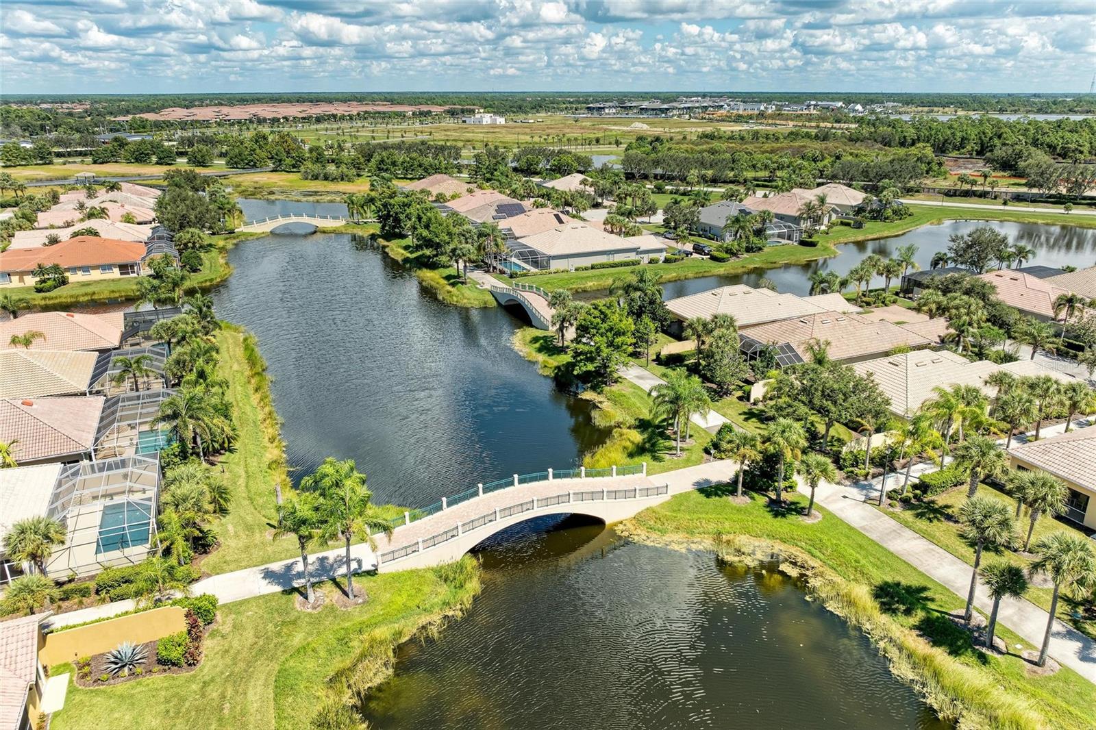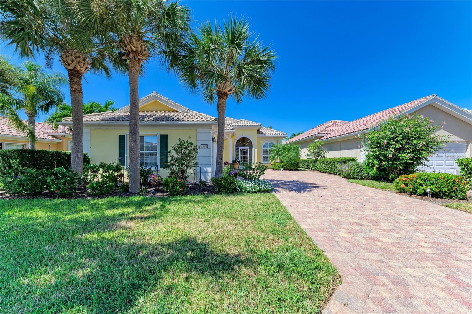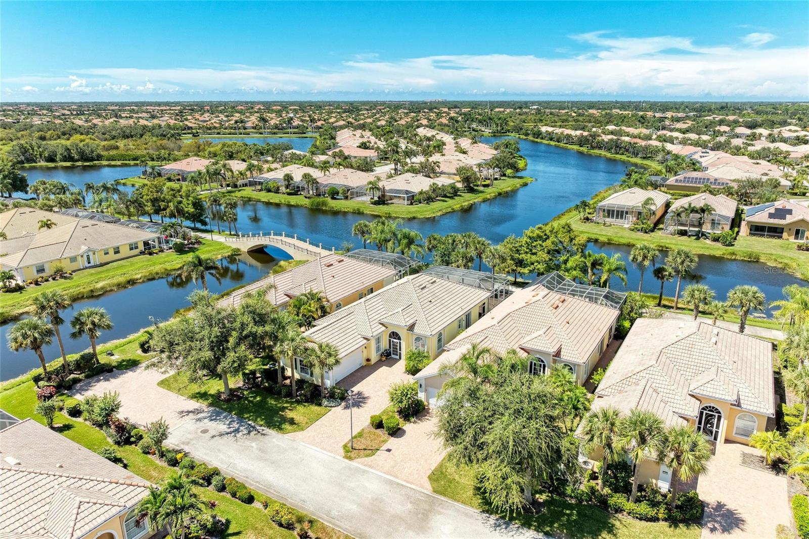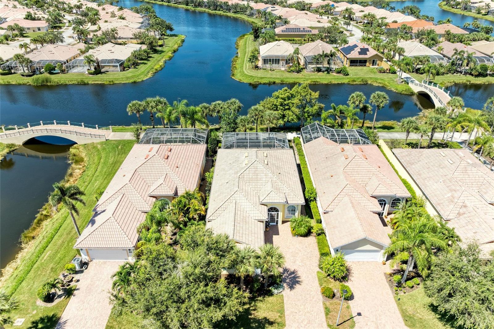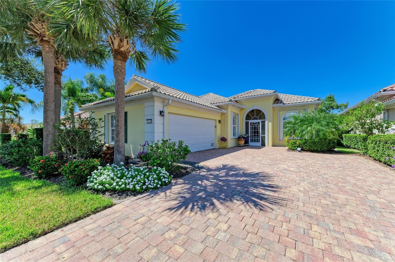 SELLERS ARE MOTIVATED- Reduced $25k! BEST VIEW IN ISLANDWALK! PRIVATE & BEAUTIFUL. Perfectly situated on the sought-after "hammerhead" lot, this home offers breathtaking LONG WATER VIEWS along with sightlines of both bridges. Homes like this don't last long! This true split floor plan features 3 BEDROOMS PLUS DEN, 3 BATHROOMS and SOARING ceilings throughout. Bright and welcoming, the UPDATED kitchen boasts granite countertops, newer stainless-steel appliances, and a custom built-in pantry. The spacious living and dining areas provide plenty of room for entertaining family and friends. The master suite enjoys tranquil lake views with glass sliders that open to the backyard. The en suite has been thoughtfully remodeled with a large walk-in shower, multiple closets, and dual bathrooms--his and hers! On the opposite side of the home, the guest bedrooms share a full bath, giving visitors comfort and privacy. Additional highlights include crown molding throughout, WHOLE HOUSE ACCORDIAN SHUTTERS and STORM SMART SHUTTERS on the lanai for easy storm prep, and tile flooring in every room. This stunning home combines elegance, function, and one of the best views you'll find! IslandWalk is one of VENICE'S most social communities with a FULL TIME ACTIVITIES DIRECTOR, countless events and clubs and activities, TWO community clubhouses, an EVENT center, TWO resort style pools, a LAP pool, 12 PICKLE BALL Courts, 8 Har Tru Tennis Courts, DOG PARK, Playground, Basketball Court, Community Garden- the list goes on! The entire community is surrounded by miles and miles of golf cart trails, walking and biking trails, VENETIAN bridges and water! The Atlanta Braves Stadium is a short bike ride away- enjoy year- round events and activities. The new marketplace features PUBLIX, restaurants, shopping, gas station, etc! Downtown Wellen Park features an 80-acre lake, retail shops, restaurant waterfront dining and rooftop decks, pedestrian-friendly streets, a splash pad, a playground and a public town hall gathering place that hosts live theater and music events. Coming soon to downtown Wellen Park- a hammock grove and a permanent food truck area. This immaculate, move-in-ready property makes it easy to start living your best Florida lifestyle right away! LOW HOA that includes WIFI, CABLE, GROUNDS MAINTENANCE, 24 HOUR GUARD GATE, and AMENITIES!!!! LOW CDD, NO FLOOD REQ at this time.