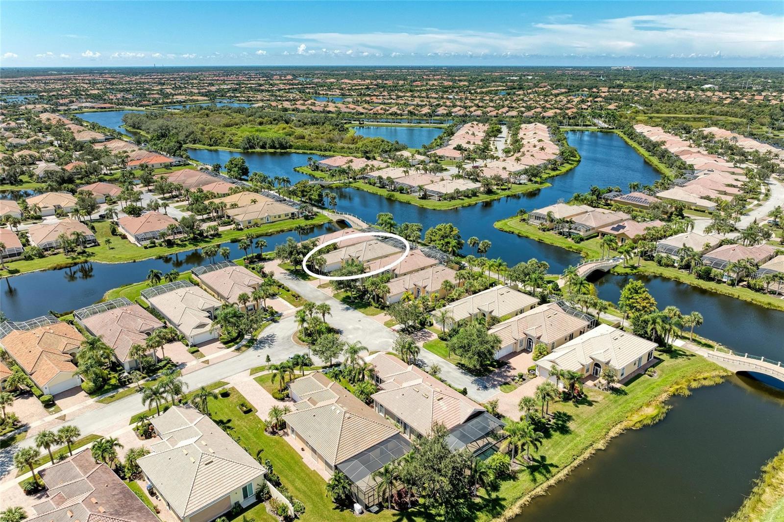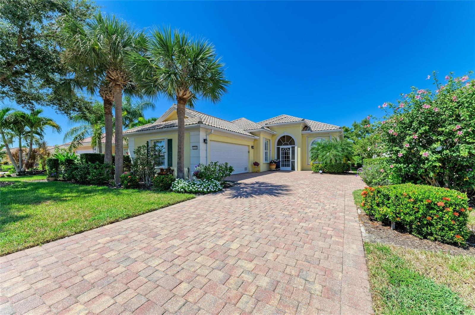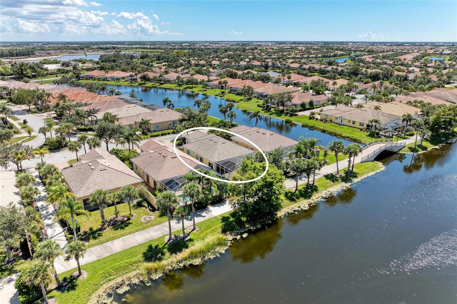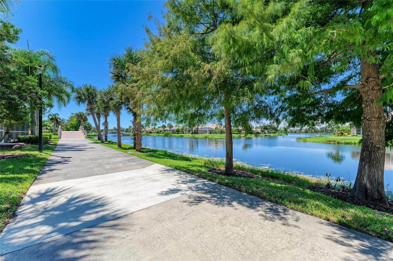 SELLERS ARE MOTIVATED- Reduced $25k! BEST VIEW IN ISLANDWALK! PRIVATE & BEAUTIFUL. Perfectly situated on the sought-after "hammerhead" lot, this home offers breathtaking LONG WATER VIEWS along with sightlines of both bridges. Homes like this don't last long! This true split floor plan features 3 BEDROOMS PLUS DEN, 3 BATHROOMS and SOARING ceilings throughout. Bright and welcoming, the UPDATED kitchen boasts granite countertops, newer stainless-steel appliances, and a custom built-in pantry. The spacious living and dining areas provide plenty of room for entertaining family and friends. The master suite enjoys tranquil lake views with glass sliders that open to the backyard. The en suite has been thoughtfully remodeled with a large walk-in shower, multiple closets, and dual bathrooms--his and hers! On the opposite side of the home, the guest bedrooms share a full bath, giving visitors comfort and privacy. Additional highlights include crown molding throughout, WHOLE HOUSE ACCORDIAN SHUTTERS and STORM SMART SHUTTERS on the lanai for easy storm prep, and tile flooring in every room. This stunning home combines elegance, function, and one of the best views you'll find! IslandWalk is one of VENICE'S most social communities with a FULL TIME ACTIVITIES DIRECTOR, countless events and clubs and activities, TWO community clubhouses, an EVENT center, TWO resort style pools, a LAP pool, 12 PICKLE BALL Courts, 8 Har Tru Tennis Courts, DOG PARK, Playground, Basketball Court, Community Garden- the list goes on! The entire community is surrounded by miles and miles of golf cart trails, walking and biking trails, VENETIAN bridges and water! The Atlanta Braves Stadium is a short bike ride away- enjoy year- round events and activities. The new marketplace features PUBLIX, restaurants, shopping, gas station, etc! Downtown Wellen Park features an 80-acre lake, retail shops, restaurant waterfront dining and rooftop decks, pedestrian-friendly streets, a splash pad, a playground and a public town hall gathering place that hosts live theater and music events. Coming soon to downtown Wellen Park- a hammock grove and a permanent food truck area. This immaculate, move-in-ready property makes it easy to start living your best Florida lifestyle right away! LOW HOA that includes WIFI, CABLE, GROUNDS MAINTENANCE, 24 HOUR GUARD GATE, and AMENITIES!!!! LOW CDD, NO FLOOD REQ at this time.