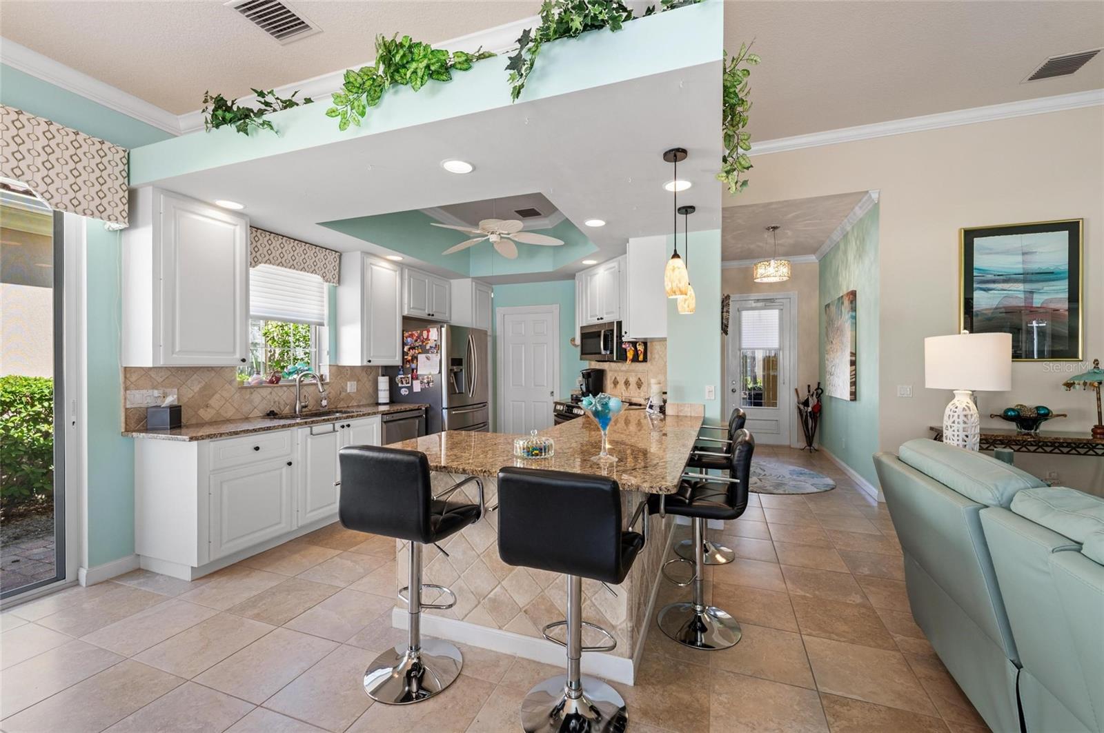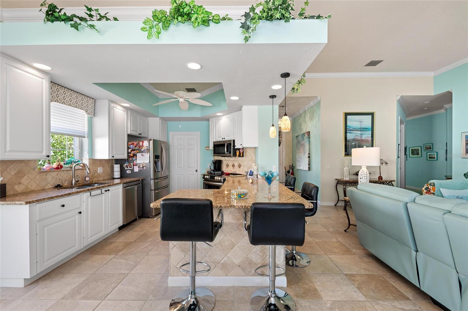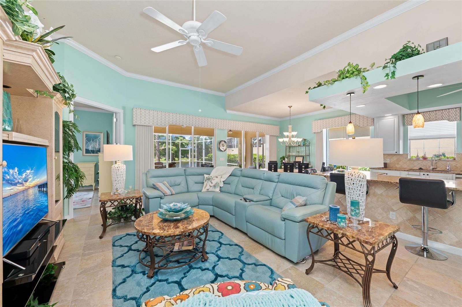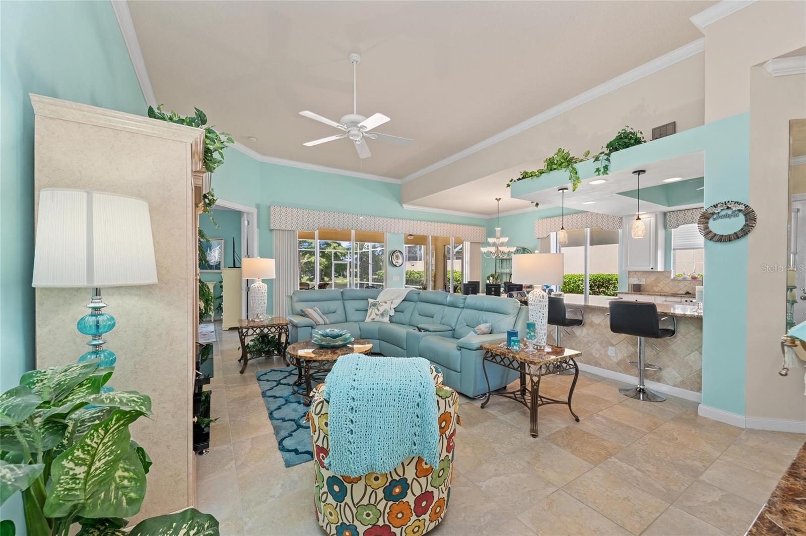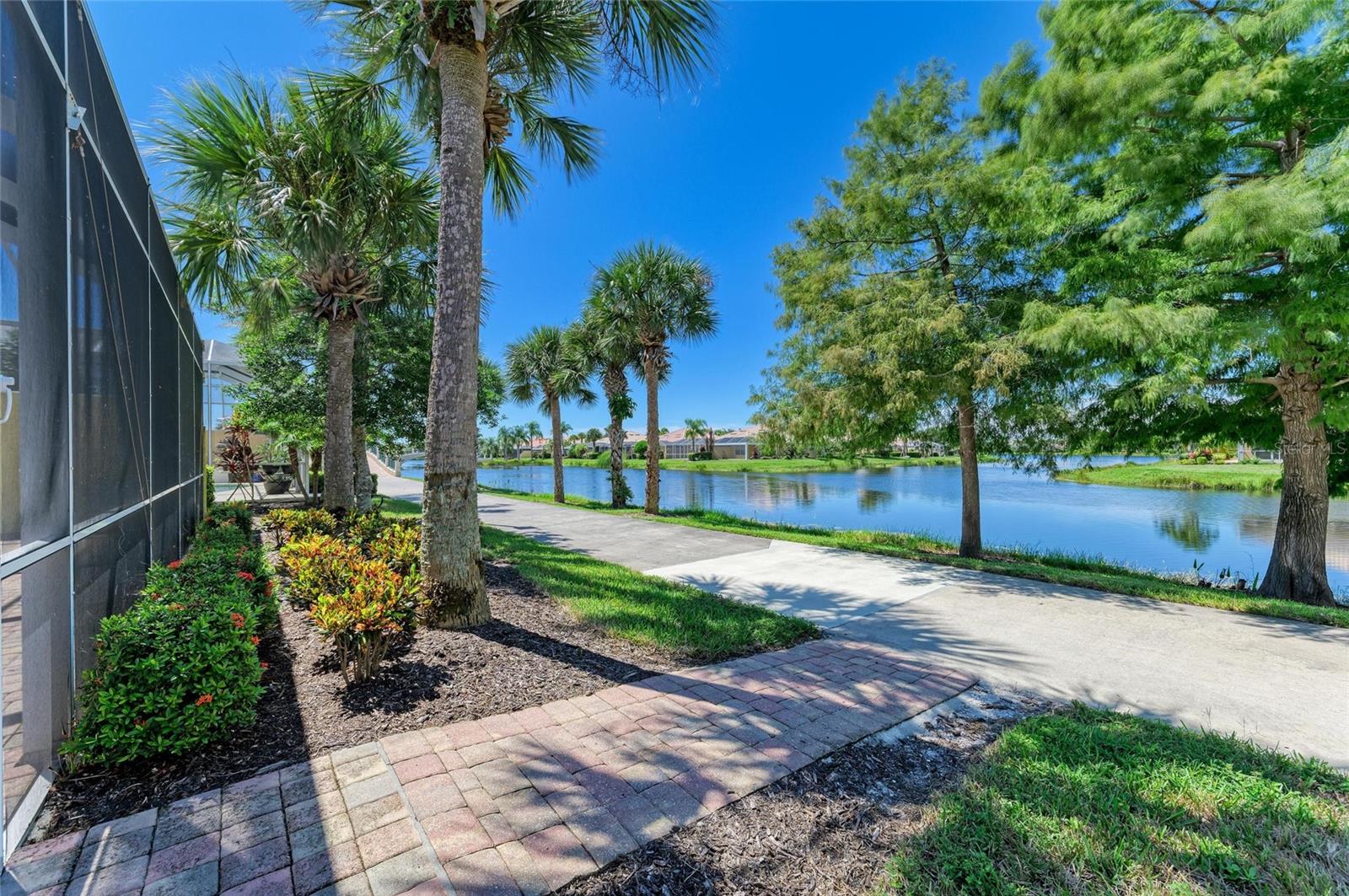 SELLERS ARE MOTIVATED- Reduced $25k! BEST VIEW IN ISLANDWALK! PRIVATE & BEAUTIFUL. Perfectly situated on the sought-after "hammerhead" lot, this home offers breathtaking LONG WATER VIEWS along with sightlines of both bridges. Homes like this don't last long! This true split floor plan features 3 BEDROOMS PLUS DEN, 3 BATHROOMS and SOARING ceilings throughout. Bright and welcoming, the UPDATED kitchen boasts granite countertops, newer stainless-steel appliances, and a custom built-in pantry. The spacious living and dining areas provide plenty of room for entertaining family and friends. The master suite enjoys tranquil lake views with glass sliders that open to the backyard. The en suite has been thoughtfully remodeled with a large walk-in shower, multiple closets, and dual bathrooms--his and hers! On the opposite side of the home, the guest bedrooms share a full bath, giving visitors comfort and privacy. Additional highlights include crown molding throughout, WHOLE HOUSE ACCORDIAN SHUTTERS and STORM SMART SHUTTERS on the lanai for easy storm prep, and tile flooring in every room. This stunning home combines elegance, function, and one of the best views you'll find! IslandWalk is one of VENICE'S most social communities with a FULL TIME ACTIVITIES DIRECTOR, countless events and clubs and activities, TWO community clubhouses, an EVENT center, TWO resort style pools, a LAP pool, 12 PICKLE BALL Courts, 8 Har Tru Tennis Courts, DOG PARK, Playground, Basketball Court, Community Garden- the list goes on! The entire community is surrounded by miles and miles of golf cart trails, walking and biking trails, VENETIAN bridges and water! The Atlanta Braves Stadium is a short bike ride away- enjoy year- round events and activities. The new marketplace features PUBLIX, restaurants, shopping, gas station, etc! Downtown Wellen Park features an 80-acre lake, retail shops, restaurant waterfront dining and rooftop decks, pedestrian-friendly streets, a splash pad, a playground and a public town hall gathering place that hosts live theater and music events. Coming soon to downtown Wellen Park- a hammock grove and a permanent food truck area. This immaculate, move-in-ready property makes it easy to start living your best Florida lifestyle right away! LOW HOA that includes WIFI, CABLE, GROUNDS MAINTENANCE, 24 HOUR GUARD GATE, and AMENITIES!!!! LOW CDD, NO FLOOD REQ at this time.