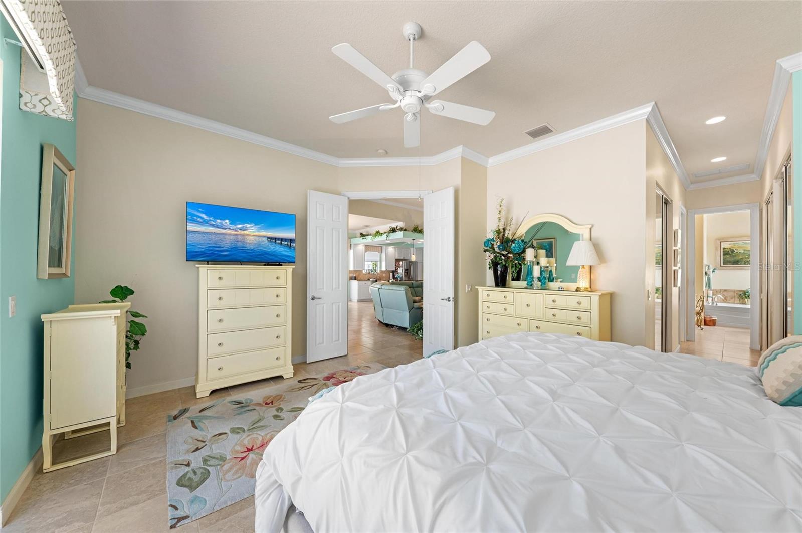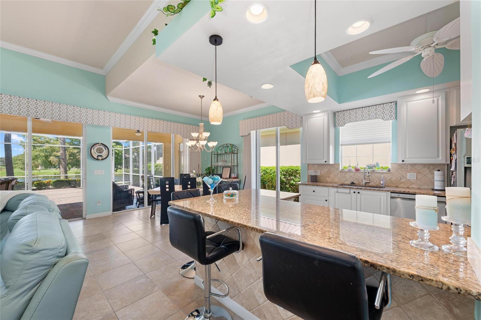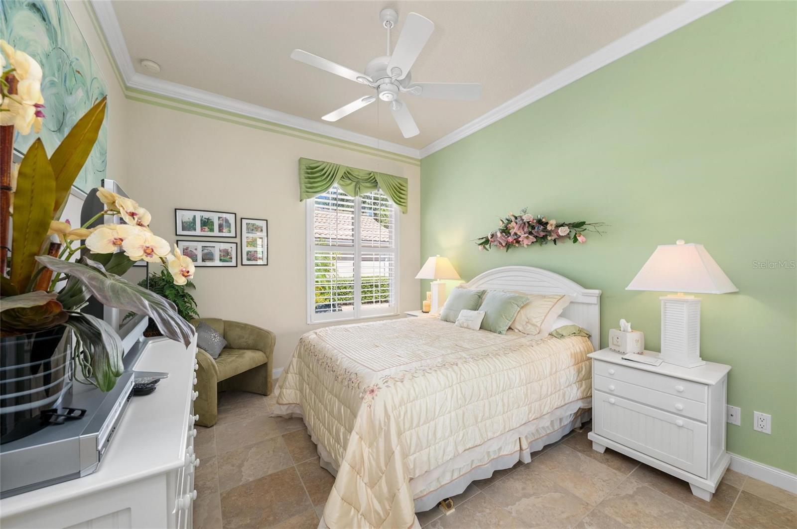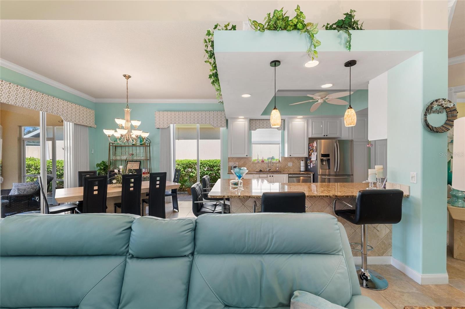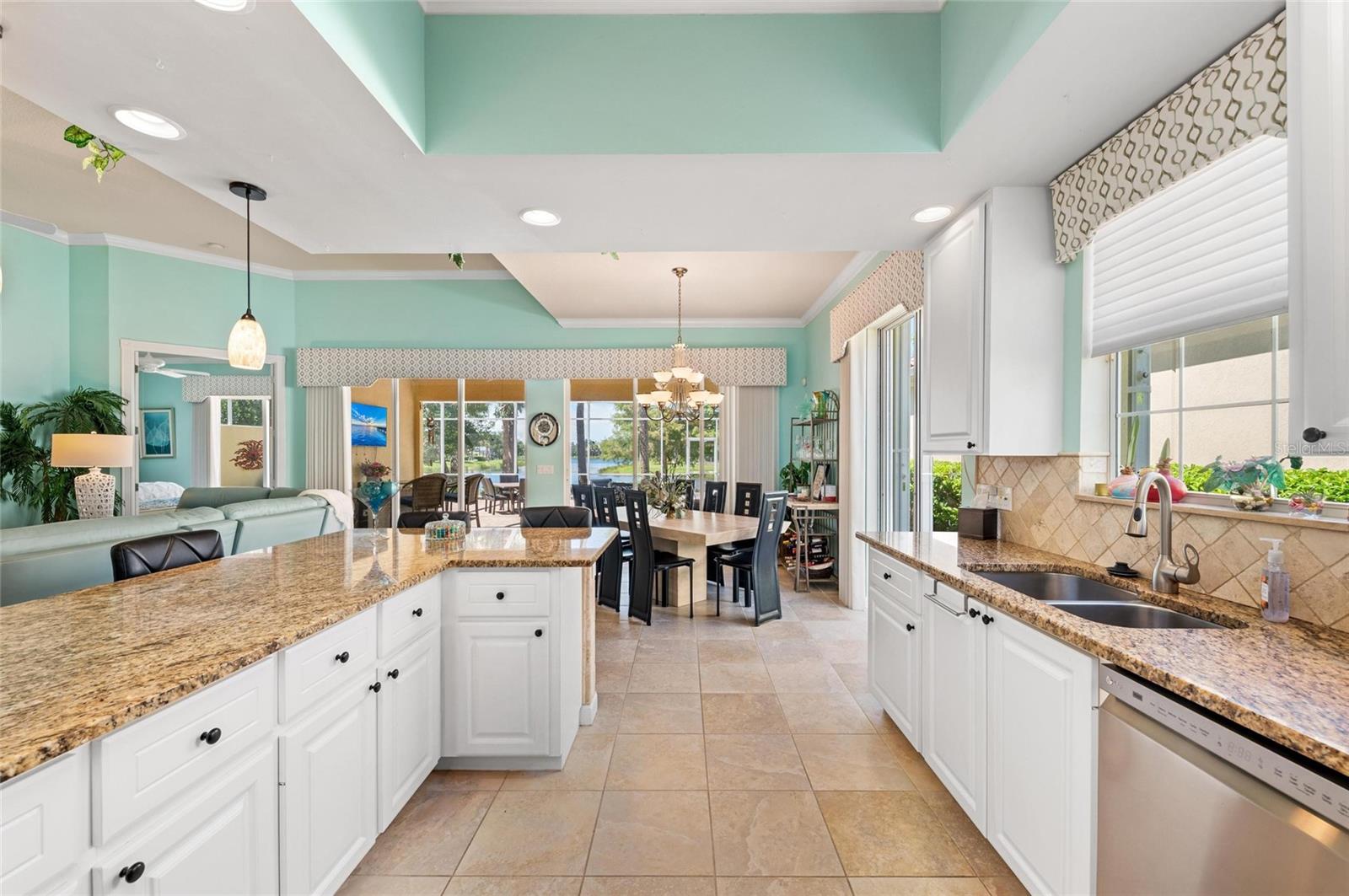 SELLERS ARE MOTIVATED- Reduced $25k! BEST VIEW IN ISLANDWALK! PRIVATE & BEAUTIFUL. Perfectly situated on the sought-after "hammerhead" lot, this home offers breathtaking LONG WATER VIEWS along with sightlines of both bridges. Homes like this don't last long! This true split floor plan features 3 BEDROOMS PLUS DEN, 3 BATHROOMS and SOARING ceilings throughout. Bright and welcoming, the UPDATED kitchen boasts granite countertops, newer stainless-steel appliances, and a custom built-in pantry. The spacious living and dining areas provide plenty of room for entertaining family and friends. The master suite enjoys tranquil lake views with glass sliders that open to the backyard. The en suite has been thoughtfully remodeled with a large walk-in shower, multiple closets, and dual bathrooms--his and hers! On the opposite side of the home, the guest bedrooms share a full bath, giving visitors comfort and privacy. Additional highlights include crown molding throughout, WHOLE HOUSE ACCORDIAN SHUTTERS and STORM SMART SHUTTERS on the lanai for easy storm prep, and tile flooring in every room. This stunning home combines elegance, function, and one of the best views you'll find! IslandWalk is one of VENICE'S most social communities with a FULL TIME ACTIVITIES DIRECTOR, countless events and clubs and activities, TWO community clubhouses, an EVENT center, TWO resort style pools, a LAP pool, 12 PICKLE BALL Courts, 8 Har Tru Tennis Courts, DOG PARK, Playground, Basketball Court, Community Garden- the list goes on! The entire community is surrounded by miles and miles of golf cart trails, walking and biking trails, VENETIAN bridges and water! The Atlanta Braves Stadium is a short bike ride away- enjoy year- round events and activities. The new marketplace features PUBLIX, restaurants, shopping, gas station, etc! Downtown Wellen Park features an 80-acre lake, retail shops, restaurant waterfront dining and rooftop decks, pedestrian-friendly streets, a splash pad, a playground and a public town hall gathering place that hosts live theater and music events. Coming soon to downtown Wellen Park- a hammock grove and a permanent food truck area. This immaculate, move-in-ready property makes it easy to start living your best Florida lifestyle right away! LOW HOA that includes WIFI, CABLE, GROUNDS MAINTENANCE, 24 HOUR GUARD GATE, and AMENITIES!!!! LOW CDD, NO FLOOD REQ at this time.