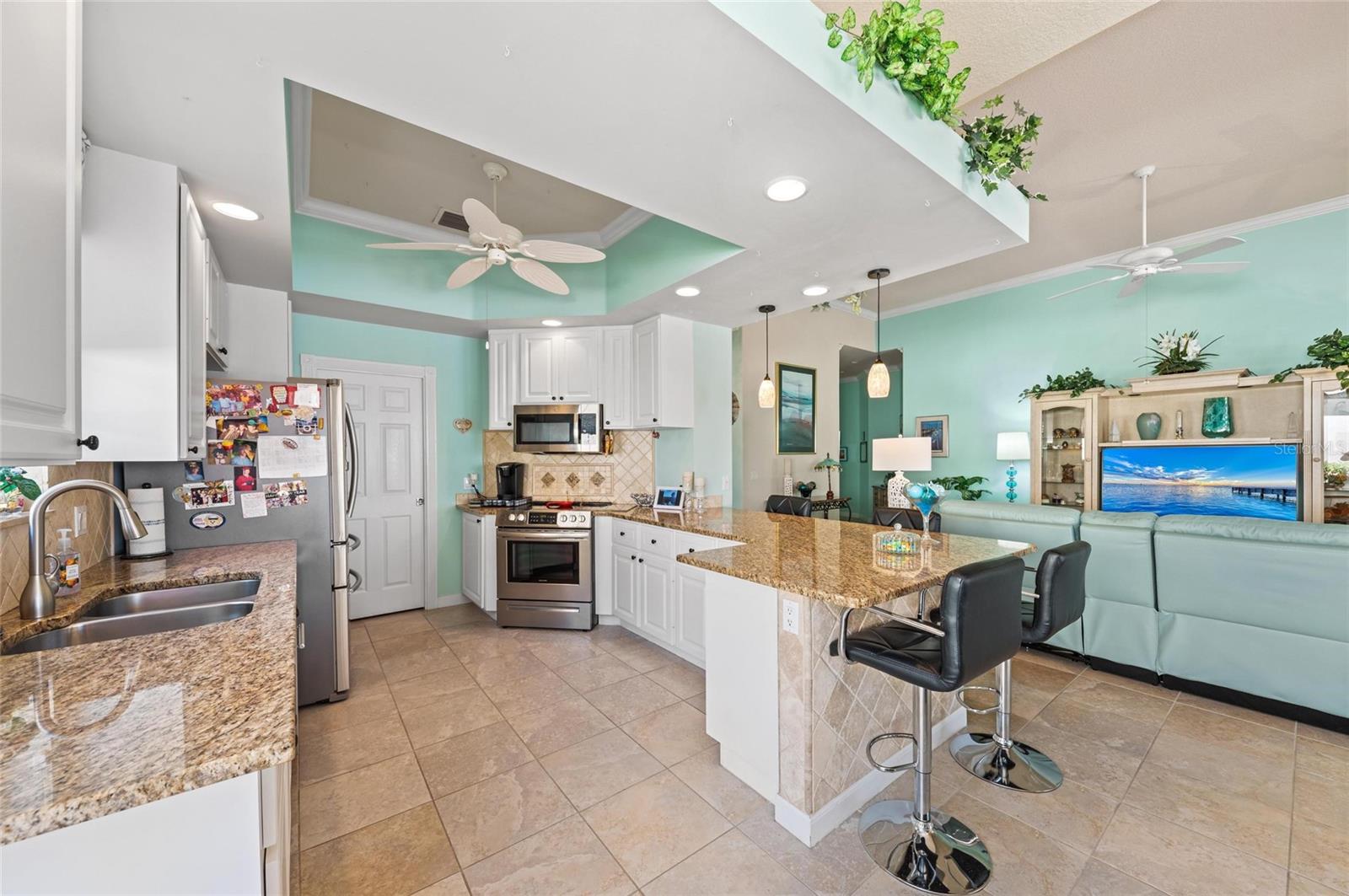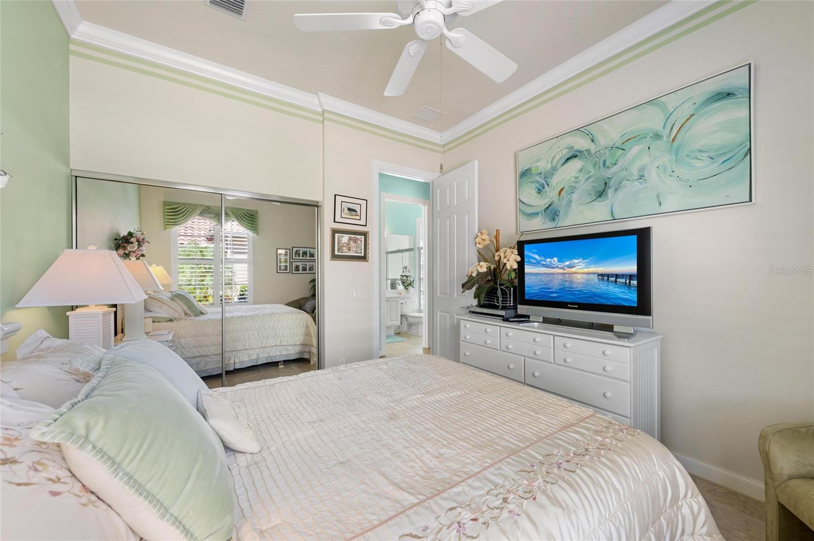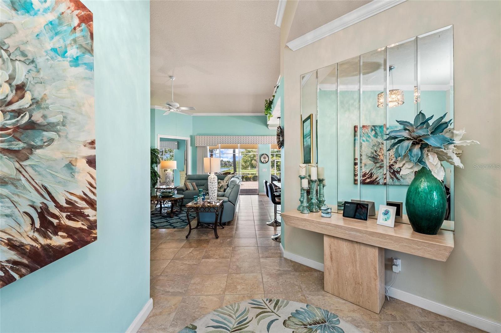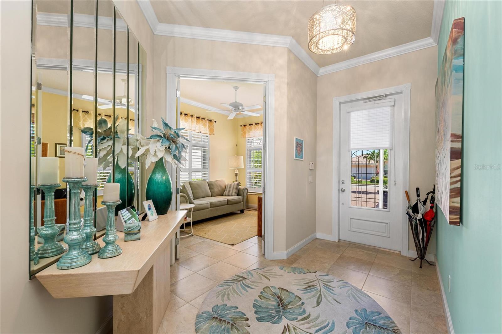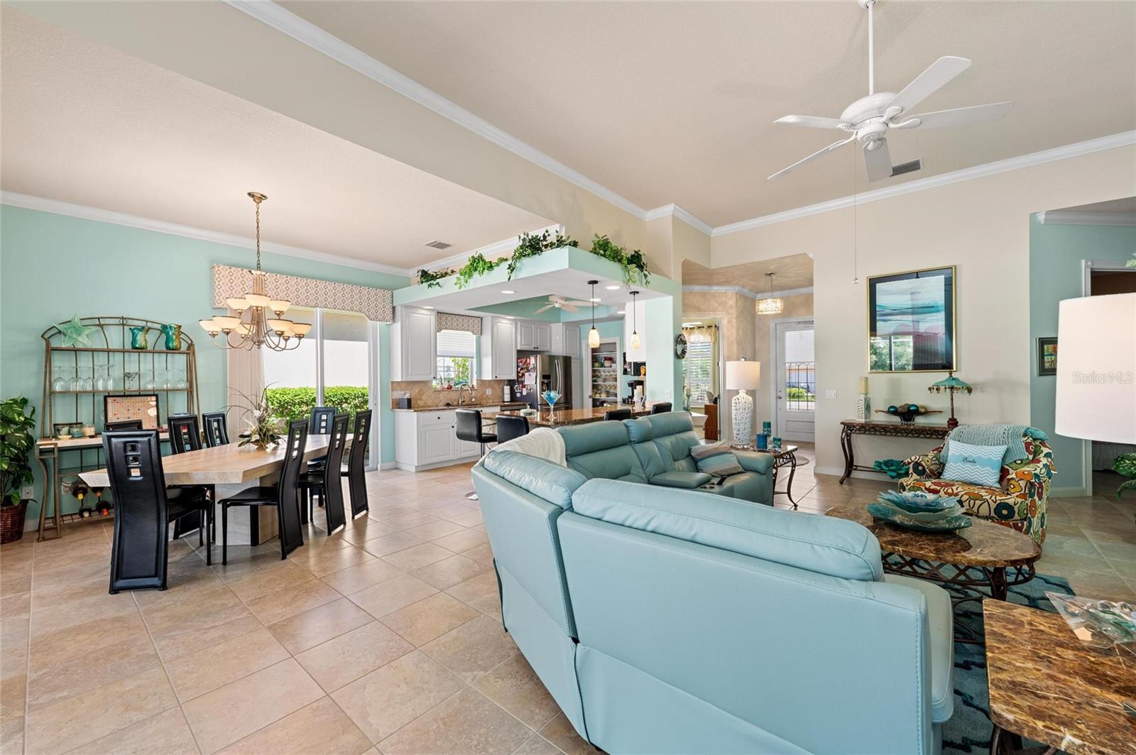 SELLERS ARE MOTIVATED- Reduced $25k! BEST VIEW IN ISLANDWALK! PRIVATE & BEAUTIFUL. Perfectly situated on the sought-after "hammerhead" lot, this home offers breathtaking LONG WATER VIEWS along with sightlines of both bridges. Homes like this don't last long! This true split floor plan features 3 BEDROOMS PLUS DEN, 3 BATHROOMS and SOARING ceilings throughout. Bright and welcoming, the UPDATED kitchen boasts granite countertops, newer stainless-steel appliances, and a custom built-in pantry. The spacious living and dining areas provide plenty of room for entertaining family and friends. The master suite enjoys tranquil lake views with glass sliders that open to the backyard. The en suite has been thoughtfully remodeled with a large walk-in shower, multiple closets, and dual bathrooms--his and hers! On the opposite side of the home, the guest bedrooms share a full bath, giving visitors comfort and privacy. Additional highlights include crown molding throughout, WHOLE HOUSE ACCORDIAN SHUTTERS and STORM SMART SHUTTERS on the lanai for easy storm prep, and tile flooring in every room. This stunning home combines elegance, function, and one of the best views you'll find! IslandWalk is one of VENICE'S most social communities with a FULL TIME ACTIVITIES DIRECTOR, countless events and clubs and activities, TWO community clubhouses, an EVENT center, TWO resort style pools, a LAP pool, 12 PICKLE BALL Courts, 8 Har Tru Tennis Courts, DOG PARK, Playground, Basketball Court, Community Garden- the list goes on! The entire community is surrounded by miles and miles of golf cart trails, walking and biking trails, VENETIAN bridges and water! The Atlanta Braves Stadium is a short bike ride away- enjoy year- round events and activities. The new marketplace features PUBLIX, restaurants, shopping, gas station, etc! Downtown Wellen Park features an 80-acre lake, retail shops, restaurant waterfront dining and rooftop decks, pedestrian-friendly streets, a splash pad, a playground and a public town hall gathering place that hosts live theater and music events. Coming soon to downtown Wellen Park- a hammock grove and a permanent food truck area. This immaculate, move-in-ready property makes it easy to start living your best Florida lifestyle right away! LOW HOA that includes WIFI, CABLE, GROUNDS MAINTENANCE, 24 HOUR GUARD GATE, and AMENITIES!!!! LOW CDD, NO FLOOD REQ at this time.