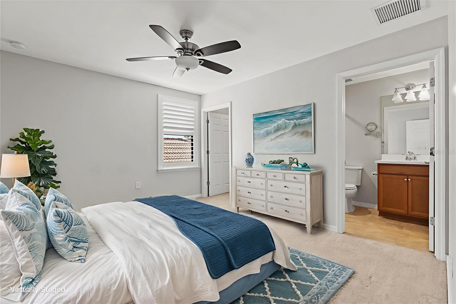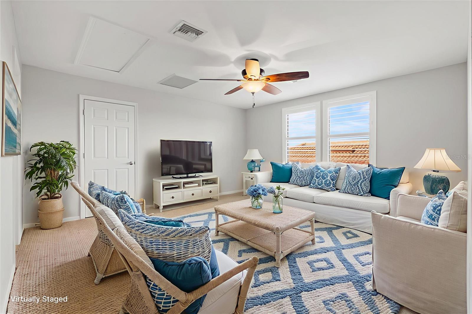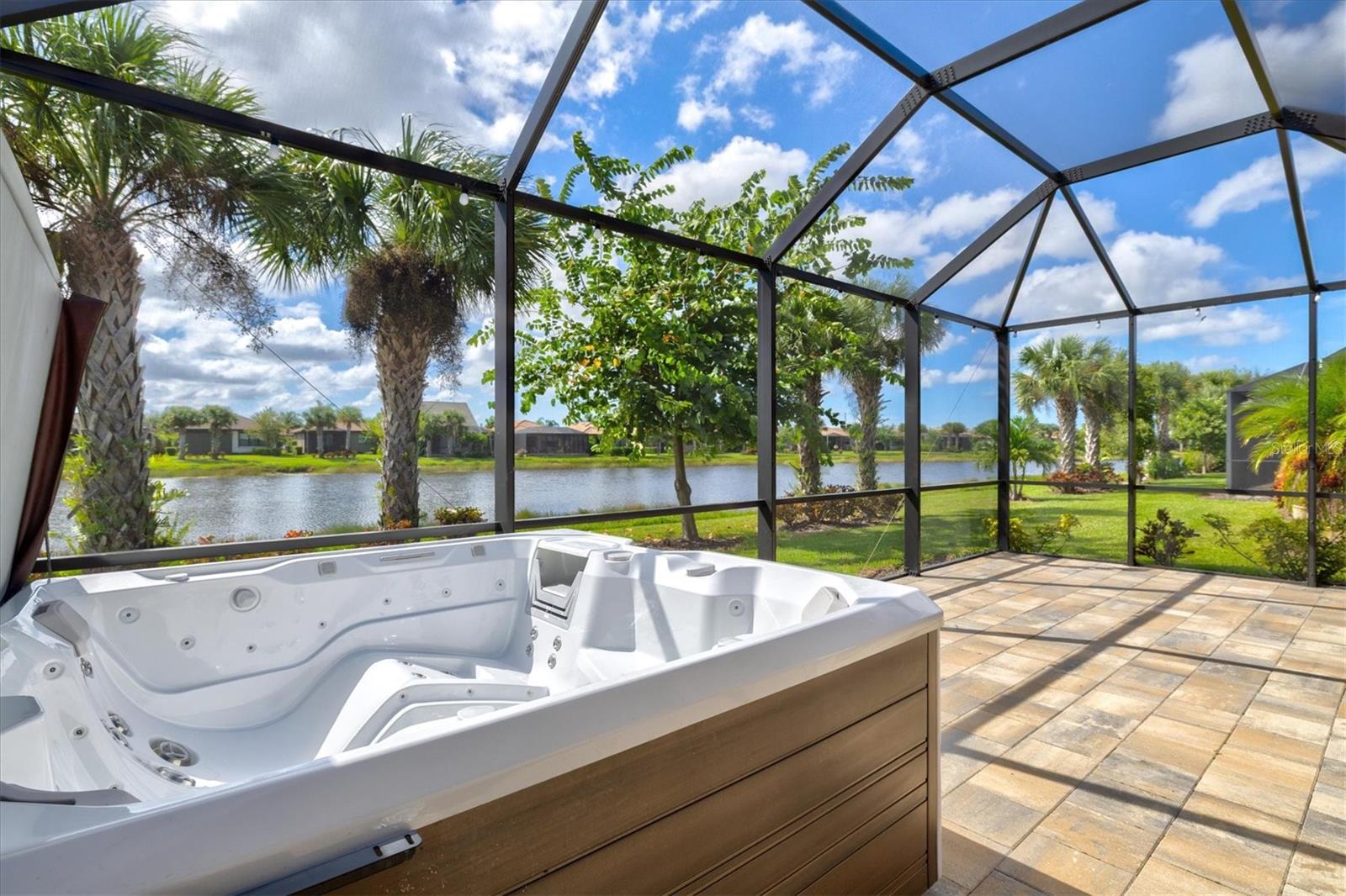 Welcome to this exceptional Taft Street residence, built in 2017 and meticulously maintained. Nestled on a quiet cul-de-sac, this home captures the best of Florida living with southern exposure, peaceful water views, and a thoughtful floor plan offering 3 bedrooms, 3 full bathrooms, plus a versatile den/office. Spanning over 2,000 sq. ft. of living space and abundant storage throughout, this design stands out from others in IslandWalk. Upstairs, discover a private guest retreat with a spacious living area, bedroom, full bath, and generous closets--perfect for extended family, multi-generational living, or even a dedicated hobby, media, or game space. The main level showcases an open concept layout with 9'4" ceilings and neutral tile flooring that flow seamlessly through the kitchen, gathering room, and caf. The gourmet kitchen is equipped with stainless steel appliances, timeless cabinetry, and an oversized granite island that doubles as a prep station and social hub. Large windows showcase the water views and open seamlessly to the extended screened lanai, where a hot tub awaits for peaceful evenings. The backyard has plenty of room to add a pool or extend the lanai even further. The owner's suite offers privacy with a walk-in closet and spa-inspired bath featuring a glass-enclosed shower. The split floor plan provides guests with their own wing and full bath, while the den/office adapts easily to your lifestyle needs. This home is loaded with extras, including a widened paver driveway and walkway, recessed soffit lighting, epoxy-coated garage floor with storage racks, hurricane shutters, and a screened front entry. Living in IslandWalk means enjoying a true resort lifestyle. This gated, amenity-rich community features two clubhouses, two resort-style pools, a lap pool, pickleball, Har-Tru tennis courts, bocce, a dog park, basketball, playground, community gardens, scenic trails, and countless clubs and activities led by a full-time lifestyle director. The second amenity center is conveniently located within walking distance of this home. The location is unmatched--just minutes from the Atlanta Braves Spring Training Stadium, Publix, shopping, dining, and the all-new downtown Wellen Park, which offers an 80-acre lake, waterfront restaurants, rooftop decks, retail shops, live entertainment, and family-friendly attractions. A brand-new Costco is also nearby for added convenience. With HOA fees covering landscaping, cable, Wi-Fi, and 24-hour guard-gated security, plus a low CDD fee and no flood insurance required, this property offers peace of mind and a carefree lifestyle. This home truly has it all--style, function, and location. Schedule your private showing today and be sure to view the 3D Matterport and drone video tours to fully appreciate everything this property has to offer.