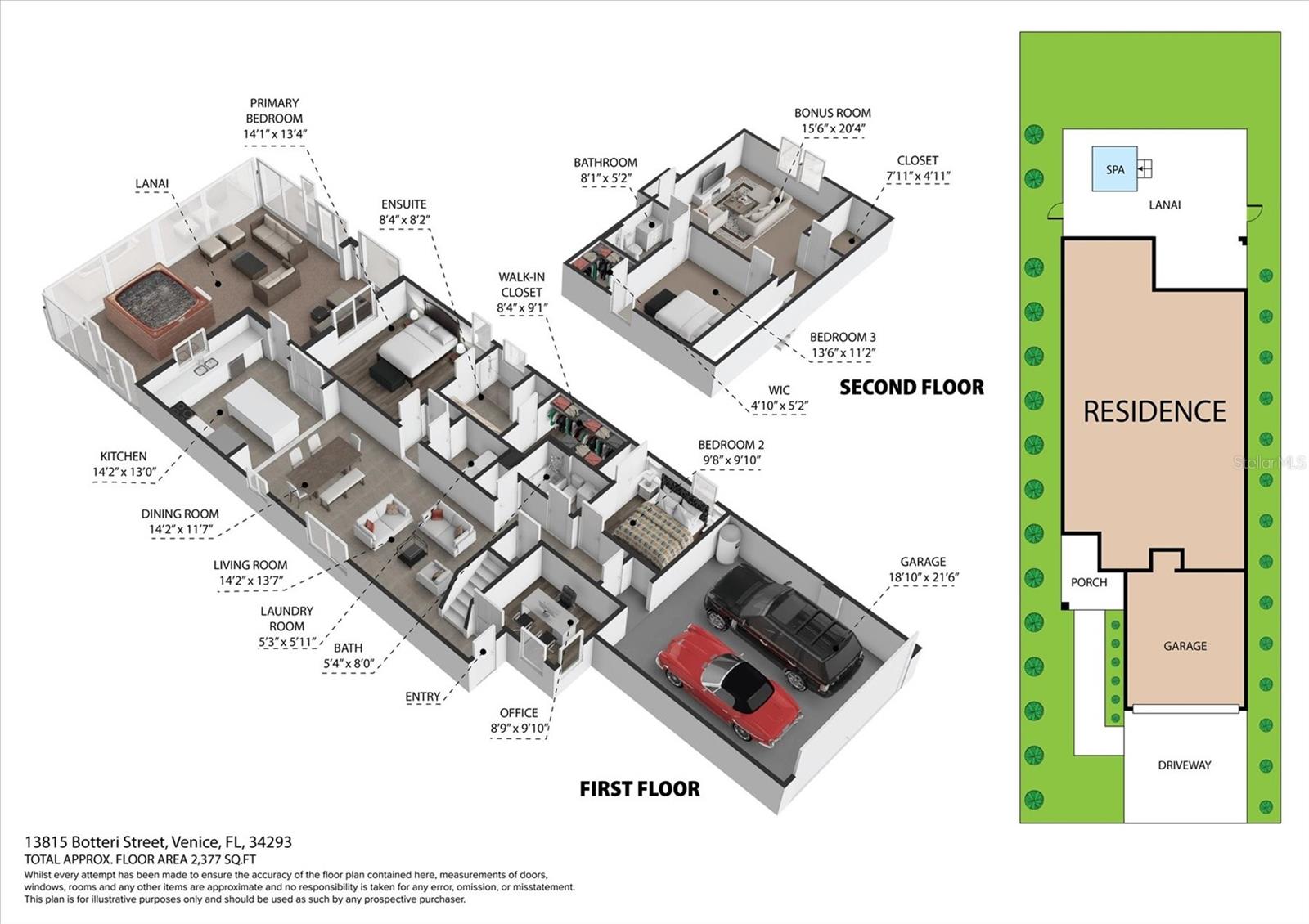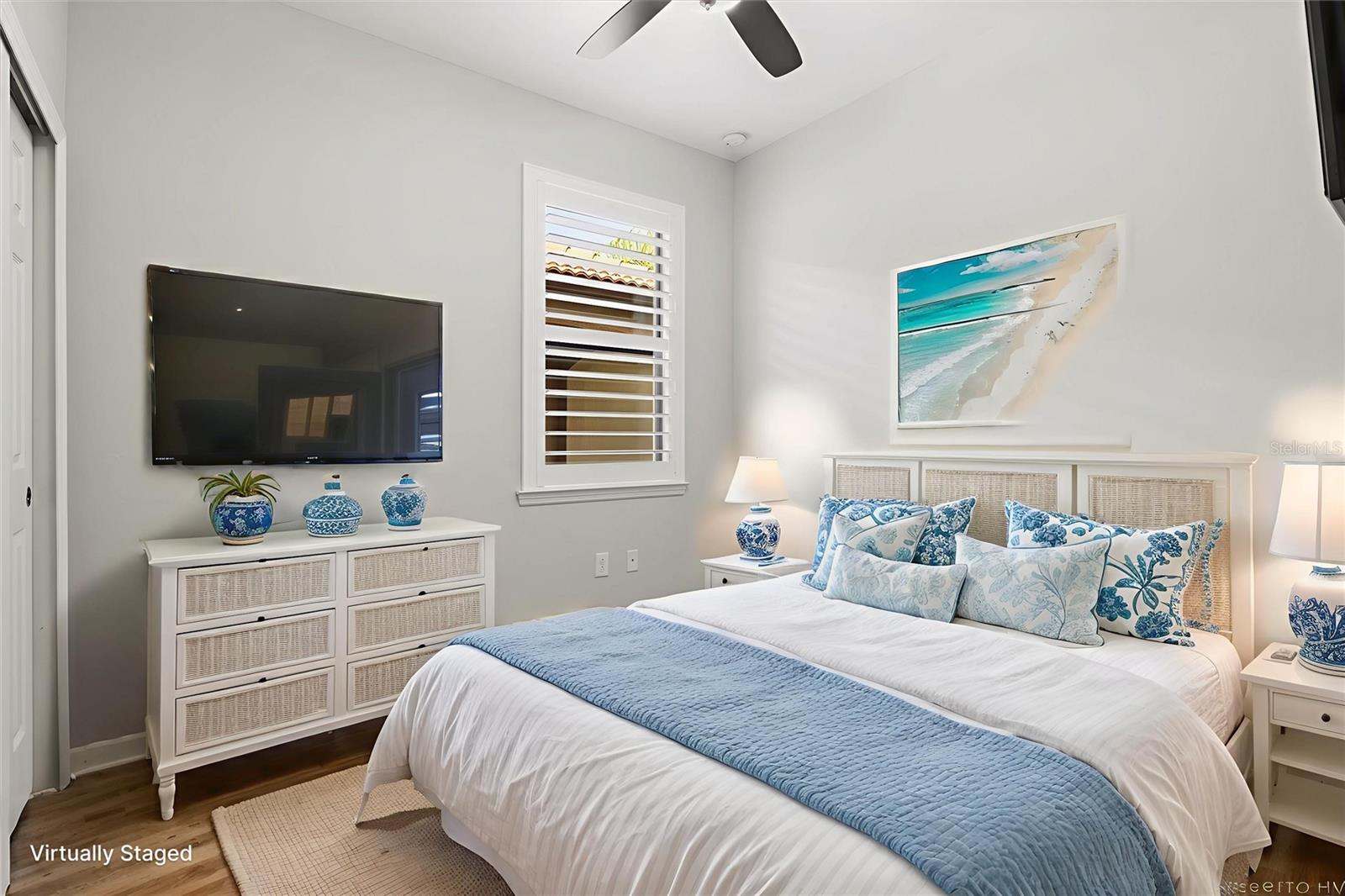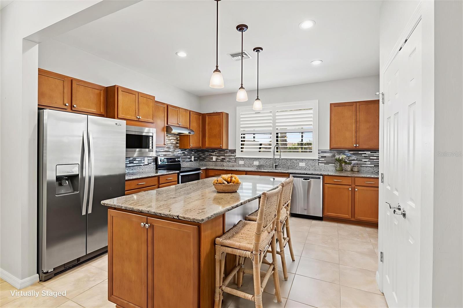 Welcome to this exceptional Taft Street residence, built in 2017 and meticulously maintained. Nestled on a quiet cul-de-sac, this home captures the best of Florida living with southern exposure, peaceful water views, and a thoughtful floor plan offering 3 bedrooms, 3 full bathrooms, plus a versatile den/office. Spanning over 2,000 sq. ft. of living space and abundant storage throughout, this design stands out from others in IslandWalk. Upstairs, discover a private guest retreat with a spacious living area, bedroom, full bath, and generous closets--perfect for extended family, multi-generational living, or even a dedicated hobby, media, or game space. The main level showcases an open concept layout with 9'4" ceilings and neutral tile flooring that flow seamlessly through the kitchen, gathering room, and caf. The gourmet kitchen is equipped with stainless steel appliances, timeless cabinetry, and an oversized granite island that doubles as a prep station and social hub. Large windows showcase the water views and open seamlessly to the extended screened lanai, where a hot tub awaits for peaceful evenings. The backyard has plenty of room to add a pool or extend the lanai even further. The owner's suite offers privacy with a walk-in closet and spa-inspired bath featuring a glass-enclosed shower. The split floor plan provides guests with their own wing and full bath, while the den/office adapts easily to your lifestyle needs. This home is loaded with extras, including a widened paver driveway and walkway, recessed soffit lighting, epoxy-coated garage floor with storage racks, hurricane shutters, and a screened front entry. Living in IslandWalk means enjoying a true resort lifestyle. This gated, amenity-rich community features two clubhouses, two resort-style pools, a lap pool, pickleball, Har-Tru tennis courts, bocce, a dog park, basketball, playground, community gardens, scenic trails, and countless clubs and activities led by a full-time lifestyle director. The second amenity center is conveniently located within walking distance of this home. The location is unmatched--just minutes from the Atlanta Braves Spring Training Stadium, Publix, shopping, dining, and the all-new downtown Wellen Park, which offers an 80-acre lake, waterfront restaurants, rooftop decks, retail shops, live entertainment, and family-friendly attractions. A brand-new Costco is also nearby for added convenience. With HOA fees covering landscaping, cable, Wi-Fi, and 24-hour guard-gated security, plus a low CDD fee and no flood insurance required, this property offers peace of mind and a carefree lifestyle. This home truly has it all--style, function, and location. Schedule your private showing today and be sure to view the 3D Matterport and drone video tours to fully appreciate everything this property has to offer.
