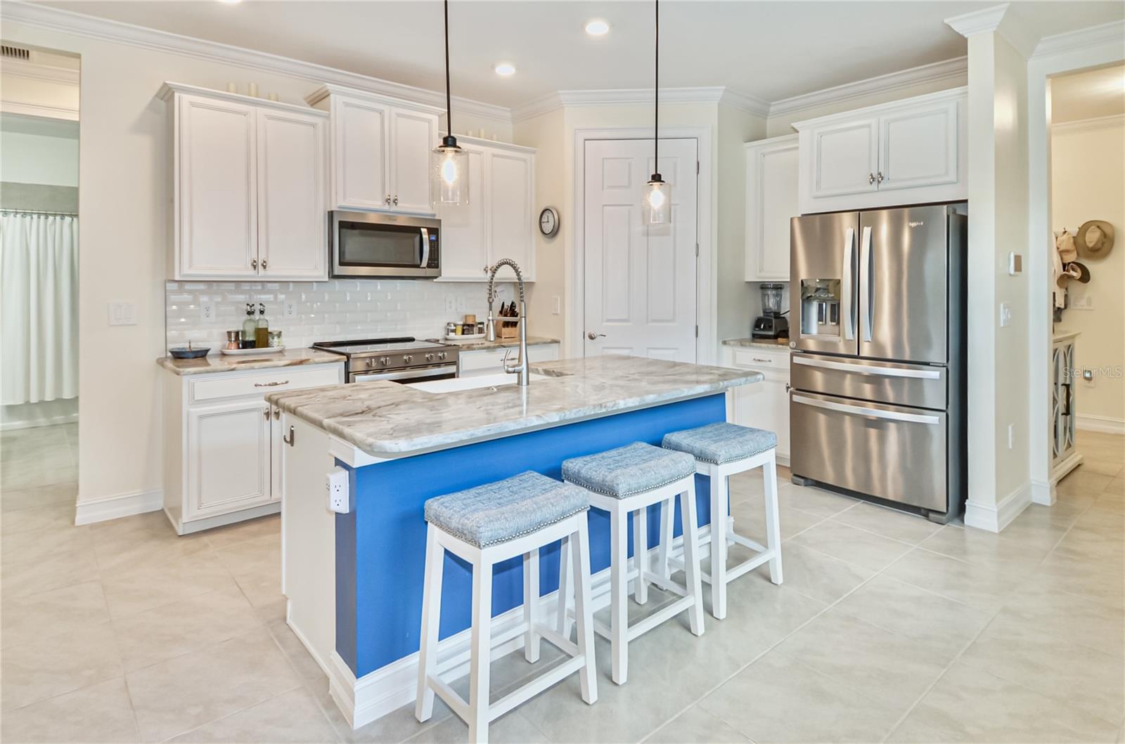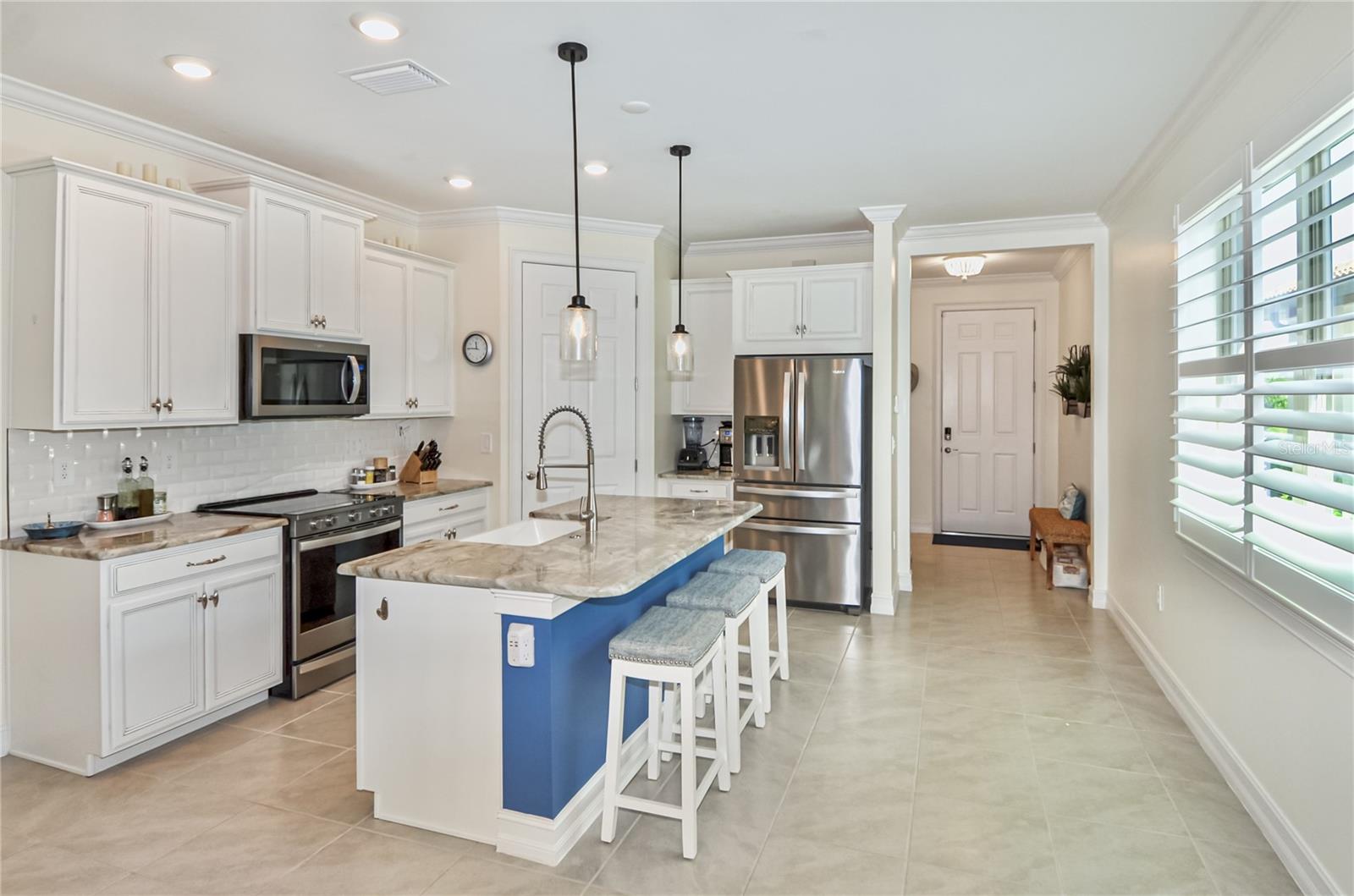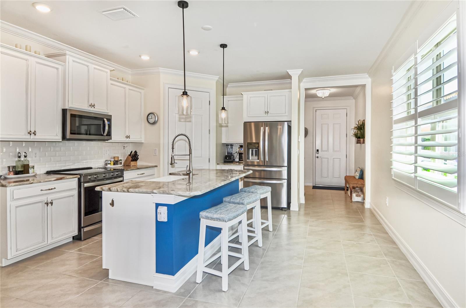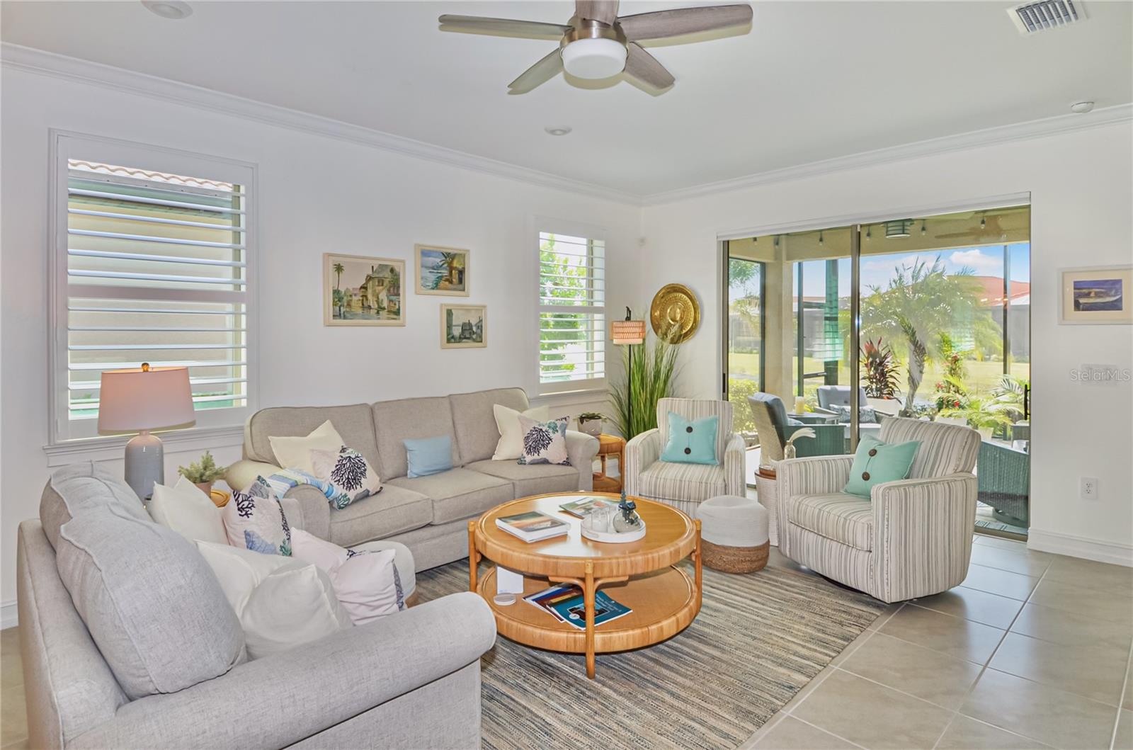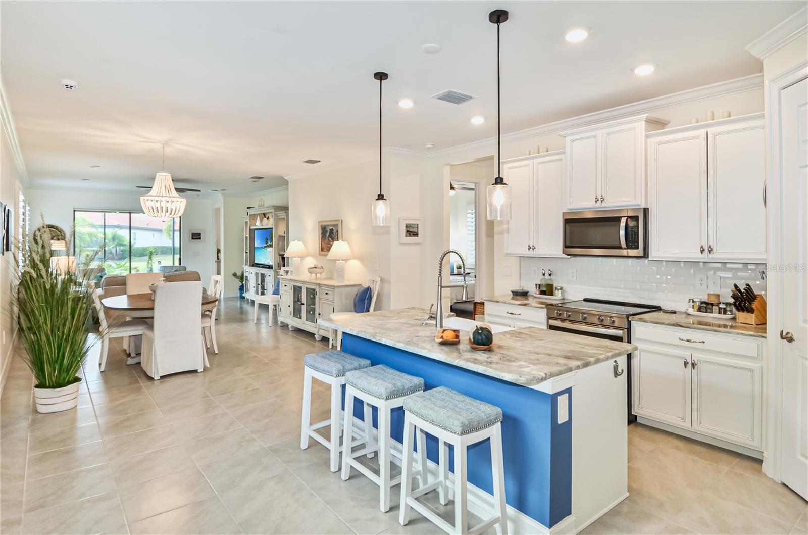 Immaculate Toscana Isles Home With Lake View! Welcome to this beautifully maintained 3-bedroom, 2-bath, 2-car garage home located in the highly sought-after, gated community of Toscana Isles in Nokomis, Florida. From the moment you arrive, the home's pristine landscaping and pavered driveway make an impressive first impression, showcasing true curb appeal. Inside, you'll find a bright open-concept layout that seamlessly connects the kitchen, dining, and living areas, perfect for modern living and entertaining. The modern style kitchen features stainless steel appliances, a large island with breakfast bar seating, recessed-panel cabinetry, granite stone countertops, subway tile backsplash, porcelain farmhouse sink, walk-in pantry, and recessed and pendant lighting for a warm, inviting ambiance. The split-bedroom floor plan provides privacy and convenience. The primary suite is a tranquil retreat with a walk-in closet located inside the en suite bathroom featuring dual sinks, a water closet, walk-in shower, and generous vanity storage and counter space. The additional two bedrooms each have built-in closets and share a guest bathroom with a garden tub/shower combo. Enjoy Florida living at its finest from the oversized screened lanai, where sliding glass doors lead you to a relaxing outdoor space with covered seating offering breathtaking views of the expansive lake and great bird watching. Additional highlights include a laundry room, crown molding, interior plantation shutters, and motorized blinds for the sliding glass doors to the lanai, ceiling fans, dimmer light switches, and freshly painted interior. Home also includes motorized outdoor hurricane screens for the lanai. Note that a security system is available with an activated subscription, and the property allows room for a pool to be built. Residents of Toscana Isles enjoy resort-style amenities, including walking sidewalks, a playground, dog park, tennis and pickleball courts, bocce ball, a kayak launch, and a stunning clubhouse featuring a gathering room, billiards room, library, fitness center, community kitchen and bar, and an infinity-edge pool overlooking the sparkling lake. This home combines elegance, functionality, and community living--making it the perfect Florida retreat or year-round residence. Home is just a few miles from I-75, Sarasota Memorial Hospital - Venice, multiple golf courses, shopping, grocery, and restaurants, as well as Historic Downtown Venice, and multiple Gulf beaches. Don't miss the opportunity to experience luxury living with the convenience of the amazing amenities at Toscana Isles!