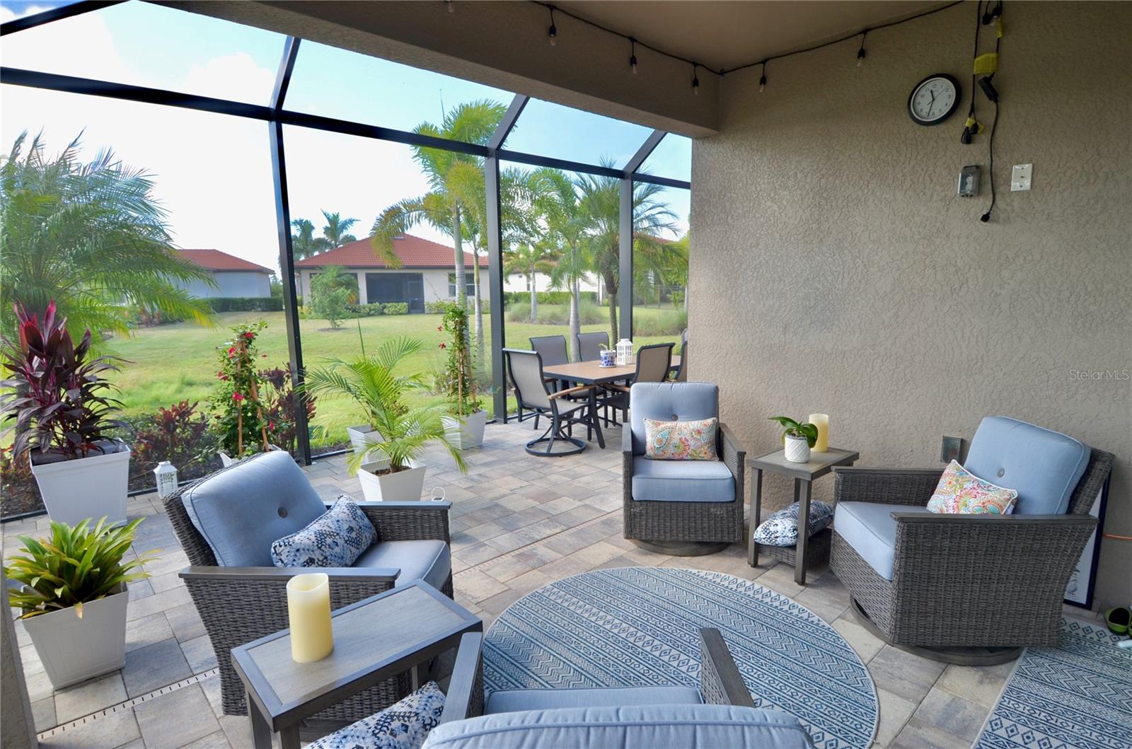 Exterior: Hurricane Shutters, Lighting, Rain Gutters, Sidewalk, Sliding Doors