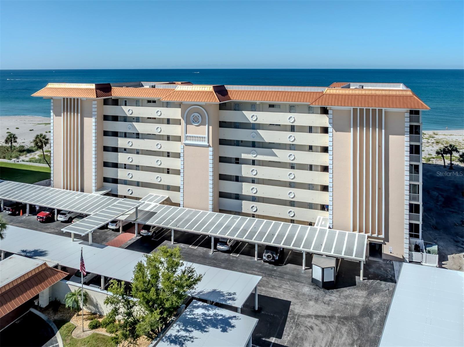 Look at this upscale coastal beachfront condominium offering direct Gulf and Roberts Bay views! Relax by The Towers' Gulf-front pool or on the beach near your private beach gate. This condominium offers a primary bedroom with Gulf views, sliding glass doors to your 28-foot lanai where you can sit and enjoy the Gulf waves, walk-in closet, ceiling fan, updated bath with a stall shower, a second bedroom with a second fully attached, walk-in closet, ceiling fan and views of Roberts Bay. Great room with direct southern Gulf views, new hurricane proof (3) sliding glass doors out to the lanai where you can have breakfast, lunch or dinners, updated kitchen with extra cabinets and a second entry door out to the walkway. Newer appliances, private washer and dryer in your condominium and six additional community laundry rooms around the building. Air handler/furnace, air conditioning & hot water tank maintained yearly. This elegant building offers a newly remodeled community room with full kitchen for your private parties, TV, game tables for playing cards or games with your friends, book exchange, sliding glass doors out to common grounds and saltwater pool, two separate dual full baths with showers off the pool grounds, barbecue grill, lounge chairs, table, chairs, poolside umbrellas, beach showers, bike rack, canoe and kayak rack, and private indoor mailbox area. This complex is about halfway between Venice Beach where you can do yoga and the fishing jetty/inlet to Roberts Bay, behind your condo. Enjoy a great walk on the beach. Right across the street from The Towers is the Freedom Boat Club, Venice Yacht Club and Pelican Bay, where you can rent available boat slips. The Towers is one of the few pet-friendly buildings. Private storage cage, 5x4 ft. at the end of the hall by the elevator to lock personal items, bikes and more. The fact management budgets years in advance for their updates is amazing. Over the years, the Towers complex has been known as one of the most well-maintained complexes in the area. Walk to or ride a mile to downtown Venice to experience boutique shopping, entertainment, dining and tennis courts/pickleball courts. Offered turnkey with everything in it that you see, with the exception of so of the wall art. Do not miss the calming sunsets from this incredible complex.