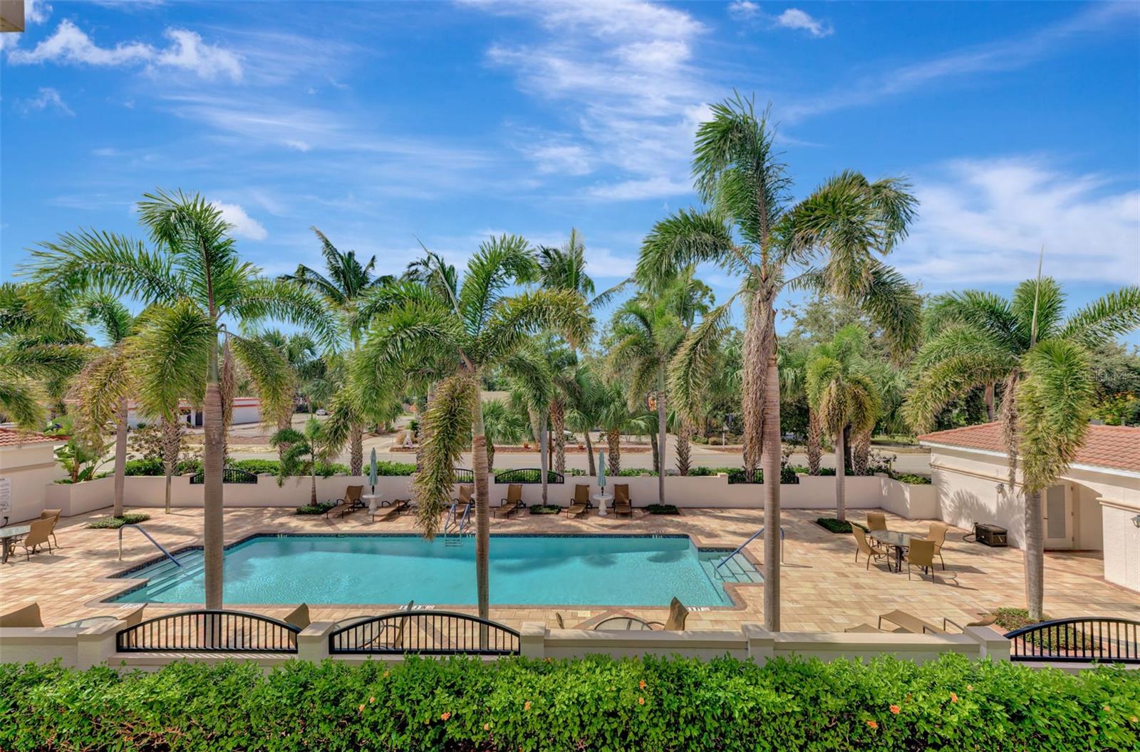 Island Life at its best Downtown Venice! LOCATION! LOCATION! LOCATION! This Exceptional Courtyard Style Condominium offers Easy Living on the Island of Venice! This 2 bedroom, 2.5 bathroom, with media room, den, ELEVATOR and two open Balconies is simply stunning! As you walk to the open foyer, your stair way can take you upstairs to main living of home(2nd floor) or you can take the ELEVATOR UP FROM (1st floor) located off near 2 car garage. The open floor plan offers Hardwood Engineer Wood Floors in all main living area, kitchen and primary bedroom. The Kitchen offers stainless steel appliances, quartz counter tops, beautiful glass backsplash, wine refrigerator, lots and lots of cabinet space with roll outs! Home is very light and bright, offers LED lighting thru-out! Owner loves view overlooking pool, park and many sunsets off Balconies! Primary Bedroom is very spacious with walk-in closet that offers built in shelving!Primary bathroom is large with walk-in title shower, large vanity granite counter top to include make up area and lots of storage too! Second bedroom is spacious with private balcony and is an ensuite with private bath too! Media room, Den and Laundry room is located perfectly in the Island Condo! Two Car Garage is rear of condo, is very spacious offers water softener and RO System! NO CDD, IMPACT WINDOWS AND SLIDERS, CONDO IS BUILT IN 2015, Walk to grocery store's, shopping, dinning on the avenue! Venice arts and Library is across the street! ONLY 26 courtyard condos in this community, and rarely available. Look for your call today!