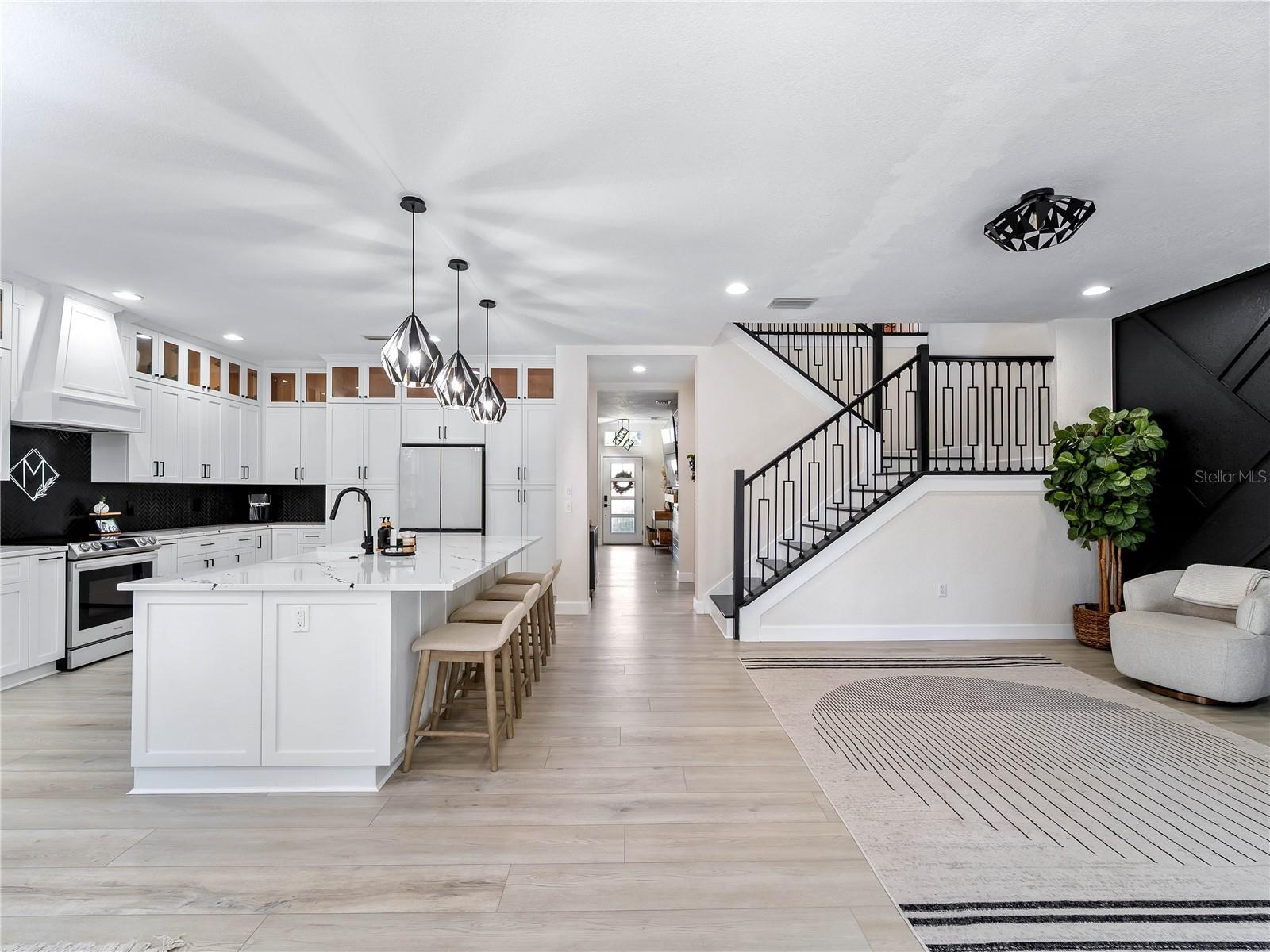 Do not lightly brush over this home, trust me you don't want to miss it! This home has been completely renovated down to the studs in 2023. Walk through the front door and into your huge, expanded living room with Luxury wide plank vinyl flooring. Who wants to see the kitchen like every other home when you walk through the front door but continue a little further and you are now in your amazing new kitchen with high end quartz counters around the perimeter and the large island. More cabinets than you will ever need, all dove tailed and soft close. This kitchen opens up to the dining area and the family room with beautiful open staircase leading to the bedrooms, but wait we are not done downstairs. Media room, check! Full downstairs bathroom, check! Inside laundry with utility sink, check! How about a home gym...check! Now we can go upstairs to the master bedroom and bath and 3 other generous sized bedrooms with full bath. The master bedroom features tray ceilings and a large walk-in closet. The master bath features dual vanities, water closet and a large walk in shower. Two new A/C units and a new roof in 2023. Also new in 2023 is a gorgeous, refreshing pool with sunning shelf, Large lanai right off the pool under the ceiling to escape the sun but enjoy the grilling. All of this perfectly located in Lakeside Plantation with its great amenities, maintenance free yard and very low HOA dues!