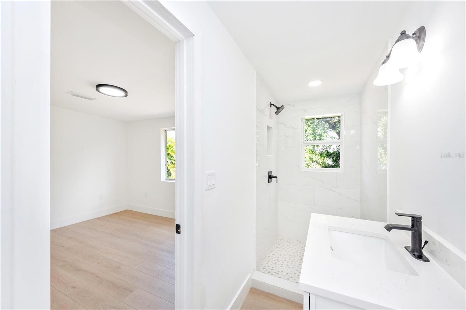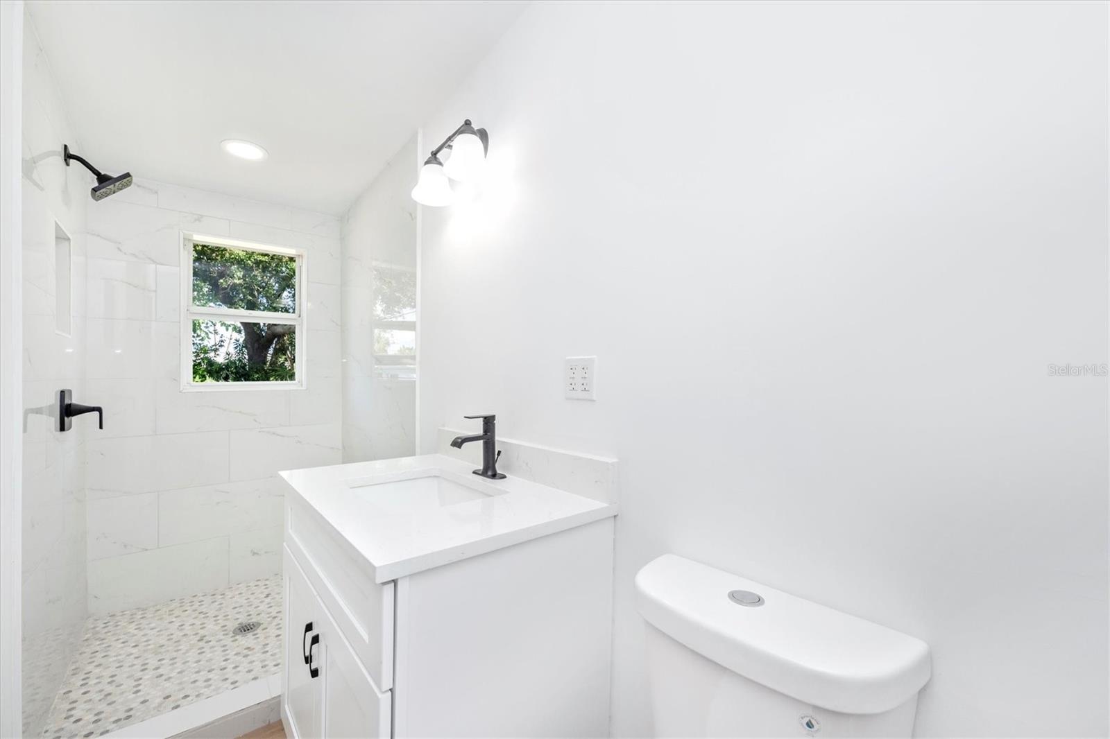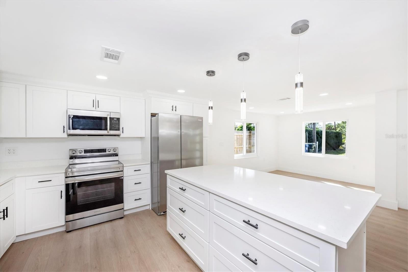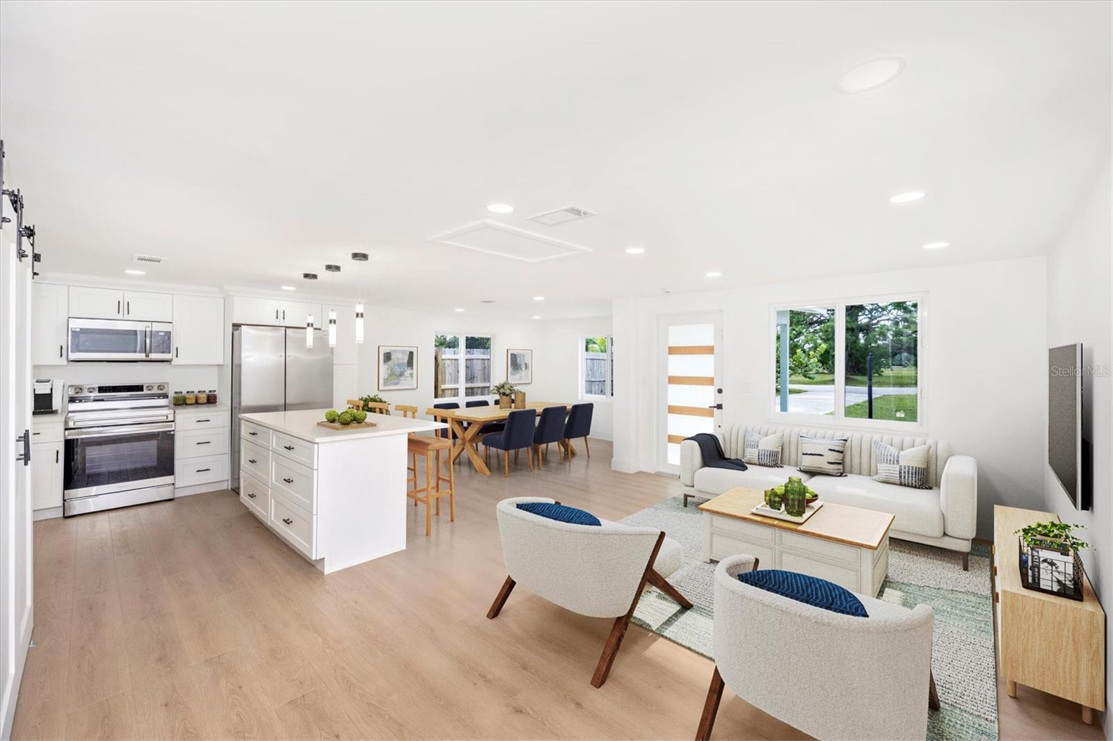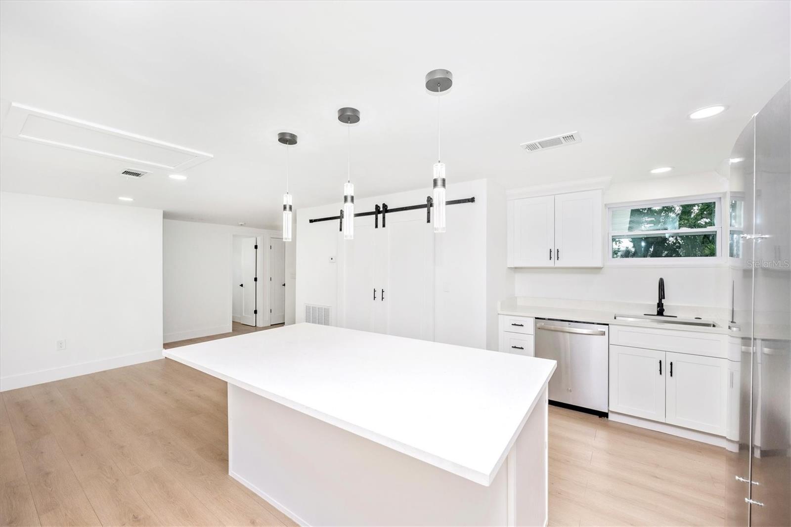 One or more photo(s) has been virtually staged. Beautifully renovated from top to bottom! This Englewood gem has been completely remodeled, including a brand-new primary suite with an en suite bath. Step inside to find stylish LVP flooring throughout and a bright, open floor plan perfect for modern living. The stunning kitchen features white shaker cabinetry, quartz countertops, a generous island with breakfast bar seating, and all-new stainless steel appliances. Barn doors conveniently conceal the laundry area and tankless water heater, adding both charm and function. Outside, enjoy a cute, level backyard that's easy to maintain. Ideally located just 7 minutes from Englewood Beach and close to all the local restaurants, shops, and vibrant nightlife on Dearborn Street, this home offers the best of coastal living. Whether you're looking for an affordable single-family home, a seasonal retreat, or a low-maintenance rental or Airbnb investment, this move-in ready property offers endless possibilities! Additional new features include: NEW ROOF, NEW HVAC, NEW TANKLESS HOT WATER HTR,