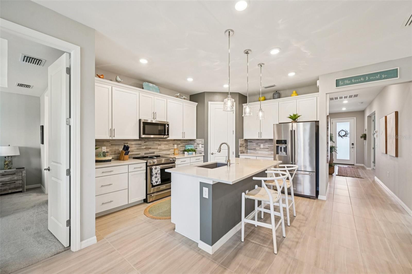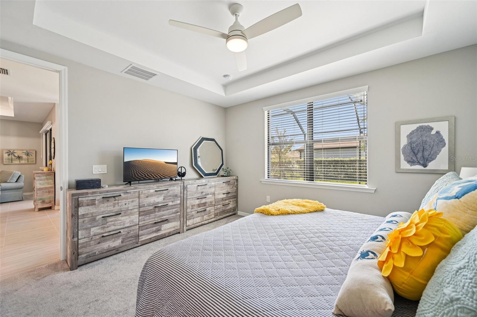 Stunning 3-Bed, 2-Bath 2023 Pool Home on Corner Lot with Water View & Custom Upgrades, ideally situated on a spacious corner lot in a serene, sought-after Cedar Grove Community. Enjoy true Florida living with breathtaking water views right from your backyard, complemented by a sparkling private pool--perfect for relaxing or entertaining year-round. Enjoy no maintenance landscaping,This home features custom Elite Hurricane remote controlled ballistic screens for the lanai area, remote controlled accordion shutter for the front door, and mounted bronze colored accordion shutters for the windows. Home is WIRED for Smart Home application if desired, for ultimate peace of mind and convenience. Zebra custom electric blinds on sliders and dining room windows. The open-concept layout offers abundant natural light, a spacious living area, tray ceilings in living area and master suite and a well-appointed kitchen with modern finishes and ample storage. Attached extended 2-car garage with epoxy floor.Step outside to your private oasis with a screened lanai and pool area--ideal for morning coffee or evening sunsets. Lanai area has water, electric, and vent installed for future outdoor kitchen. Conveniently located near Interstate 75, shopping, restaurants, parks, schools, medical, Cool Today Park, Tampa Bay Rays ballpark, downtown Wellen Park and the beautiful pristine beaches of the Gulf of Mexico!Don't miss this rare opportunity to own a move-in-ready home with premium features, upgrades and views in North Port, Florida! Schedule your private tour today and experience Florida living at its finest!