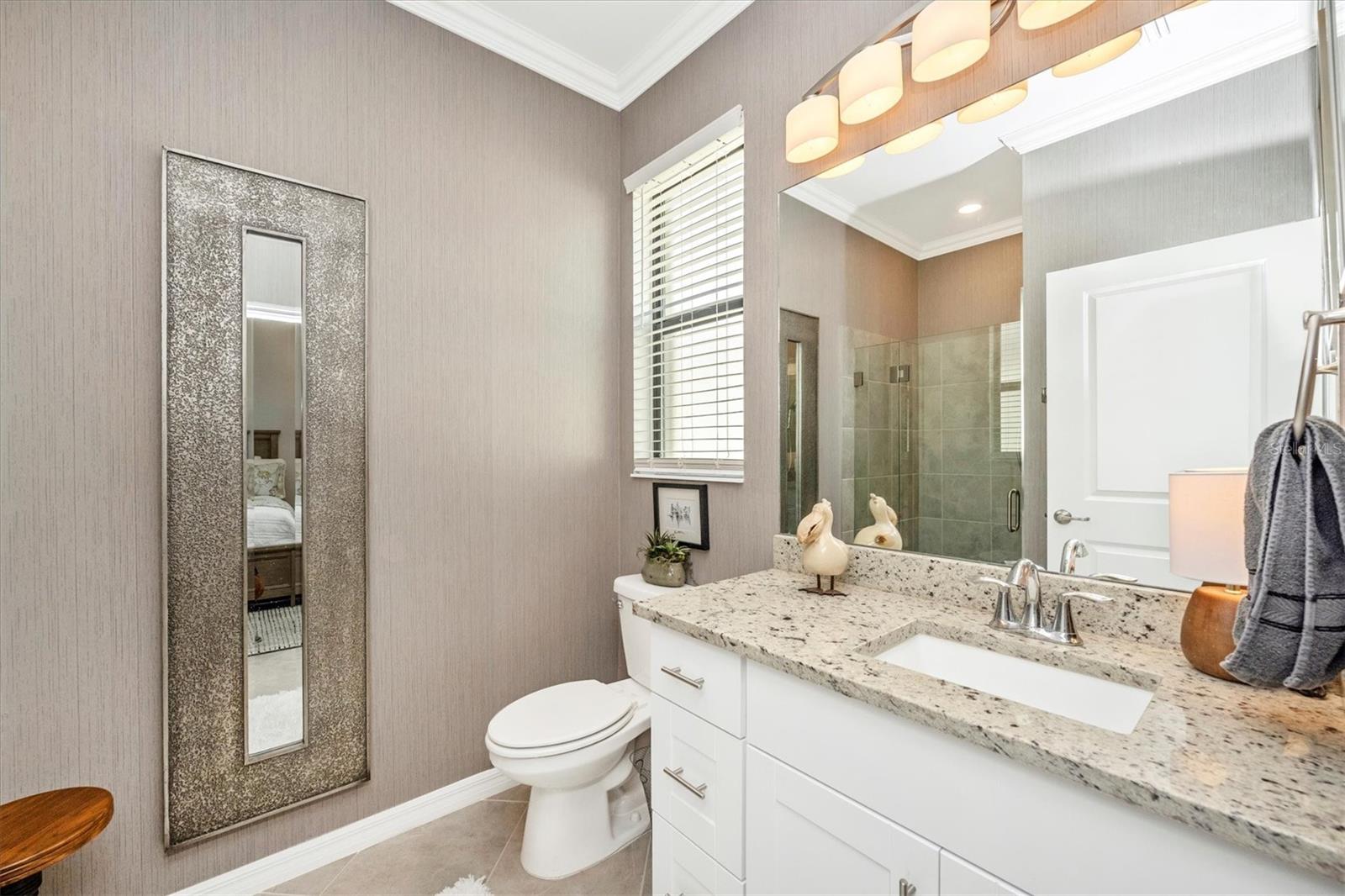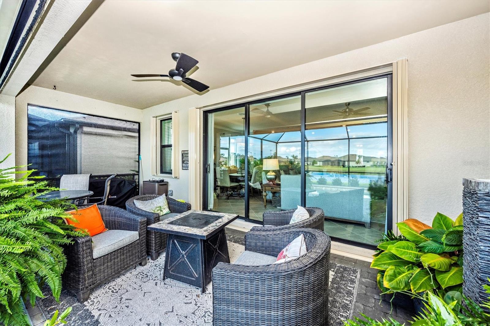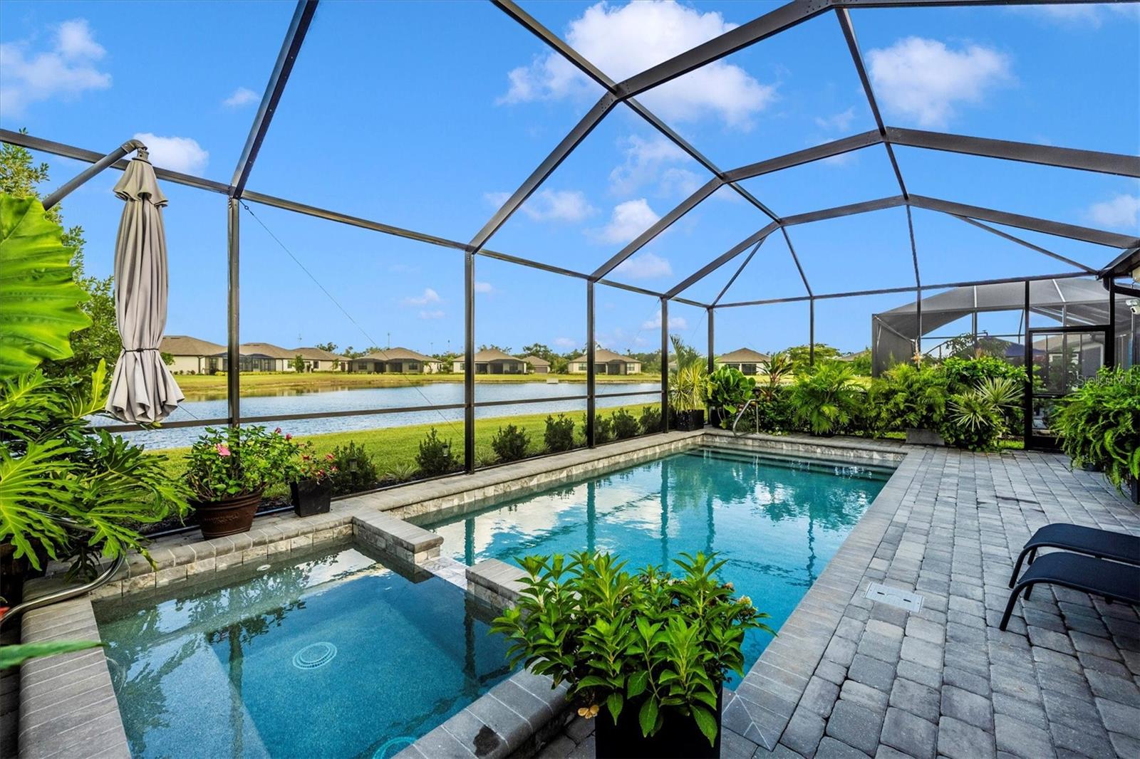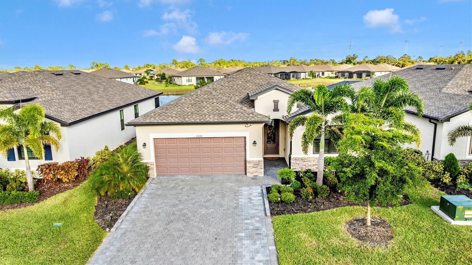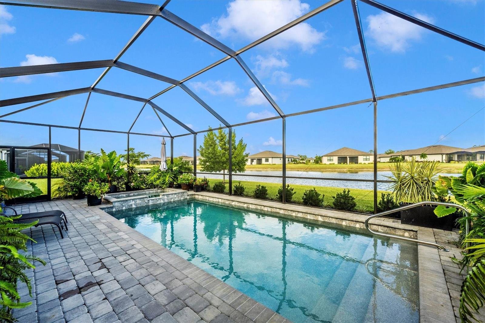 This stunning home truly shows like a model and is perfectly situated on one of the premier lots in the neighborhood--backing to the widest part of the lake for exceptional views and privacy. Inside, a thoughtfully designed open floor plan welcomes you, with guest suites toward the front and a serene primary retreat tucked in the back.While just three years young, this home has been extensively enhanced with features the builder never offered. A leaded glass front door and upgraded porch lighting set the tone. The reimagined kitchen showcases striking quartz countertops, white shaker cabinetry with soft-close drawers, decorative glass doors on the butler's pantry, a gorgeous stone backsplash, and all-new stainless steel appliances--including an on-demand hot water system beneath the sink.The family room impresses with a custom stacked-stone electric fireplace, built-in shelving, and a remote-controlled shade for the sliding doors. Both guest baths have been updated with sleek standing showers and gliding glass doors, while the primary suite boasts lighted mirrors, a custom walk-in shower, and a relaxing garden tub. Crown molding graces the entire home, and every builder-grade light fixture has been replaced with stylish, designer-selected lighting.Exterior upgrades include a widened driveway, full gutters, Storm Smart shutters, and a remote-controlled lanai shade--perfect for extra storm protection or everyday comfort. The saltwater pool and spa are enhanced by a tranquil custom water fountain, creating the ultimate backyard oasis.Enjoy low-maintenance living in this gated community, where the HOA covers lawn care, trimming, cable, internet, and trash service. Residents also enjoy an active social calendar, fitness center, pickleball courts, and more! Ideally located close to shopping, dining, Englewood Beach, and the lively Dearborn Street nightlife--this home offers the best of Florida living!