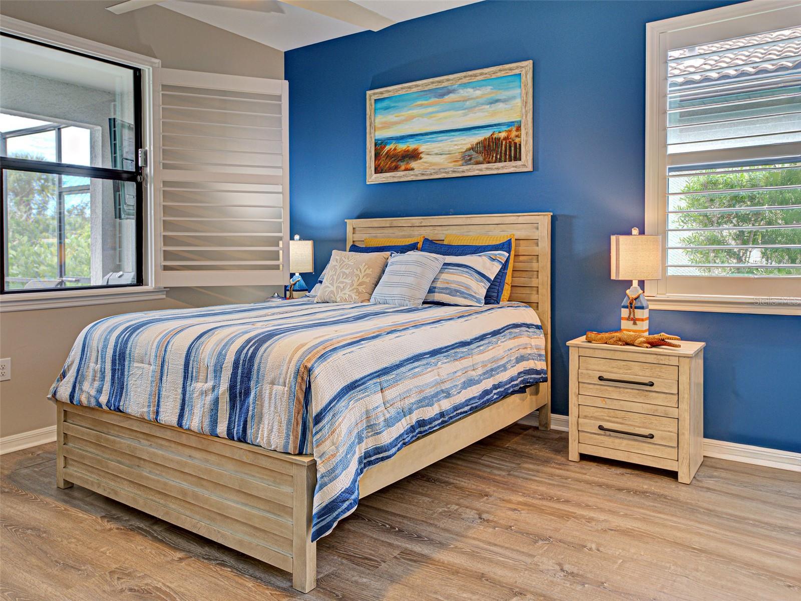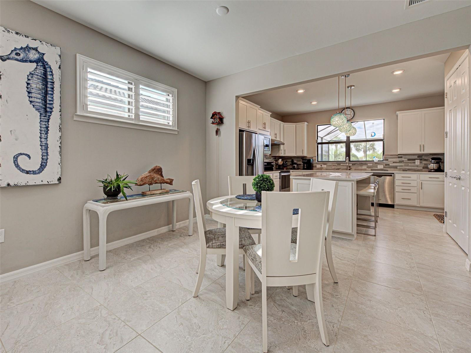This exceptional FURNISHED POOL HOME is ideally located on a PRIVATE LOT surrounded by ADDED lush landscaping that enhances both privacy and curb appeal. From the moment you arrive, you will notice the VALUE of the thoughtful FEATURES including a CUSTOM COAST-TO-COAST POOL that was added after purchasing the home, TILE and LUXURY VINYL FLOORING (NO CARPET!), complemented by elegant PLANTATION SHUTTERS, and 8-FOOT DOORS that elevate the home's spacious feel. The home is being offered FURNISHED WITH A FEW EXCEPTIONS and presents a GENTLE COASTAL VIBE--yet remains easily CUSTOMIZABLE TO YOUR TASTE.The versatile flex room near the entrance includes SOLID DOORS making it private and a perfect third bedroom, home office, or cozy den if desired. The great room and dining area are bathed in natural light and seamlessly flow into the fully equipped kitchen, which boasts a generous island for casual dining and entertaining, desired white color cabinetry, a spacious closet pantry, and a window over the sink with a lovely view of the pool and mature landscaping!The guest bedroom, thoughtfully positioned opposite the primary bedroom for optimal privacy, includes LUXURY VINYL FLOORING, a ceiling fan and access to a guest bathroom, featuring a bathtub with tiled wall and stylish wallpaper. Meanwhile, the bright primary suite offers PLANTATION SHUTTERS, luxury vinyl, and gorgeous views of the lanai! Its ensuite bathroom is a true retreat, boasting dual vanities topped with quartz counters, a light-toned subway tile backsplash, a sleek glass-enclosed shower, and a spacious walk-in closet offering generous storage.Additional highlights include a laundry room with upgraded washer and dryer, and an adjacent linen closet. The outdoor living space boasts a covered lanai, including a section UNDER AIR--perfect for enjoying the Florida lifestyle in every season. PRIVACY IS THE GEM of this home, thanks to thoughtfully added landscaping and NO NEIGHBORS IN THE BACK, creating a true oasis ideal for relaxing in the HEATED, SALT WATER POOL. The garage offers epoxy flooring and a utility sink. Located on a desirable tranquil street, this home offers convenient access to the resident-only back gate, clubhouse, and resort center. A second resident only back gate is installed & will provide access to Manasota Beach Rd., projected for August 2026.Islandwalk amenities include: geothermal pools, a lap pool, (2) gyms, pickleball, tennis courts, bocce, an event center, firepits, a community garden, dog park and a 24 hour staffed security gate.Golf carts are permitted. A resident only back gate takes you directly to the vibrant downtown Wellen Park, a Marketplace anchored by Publix, the Atlanta Braves ballpark and Costco without ever needing to go on US-41! The low HOA covers landscaping, high speed internet & 3 DVR boxes, a full-time Lifestyle Director, amenities, and an on-site HOA management team. Located just 4 miles to I-75, there is easy access to (4) major airports and pristine Gulf beaches.