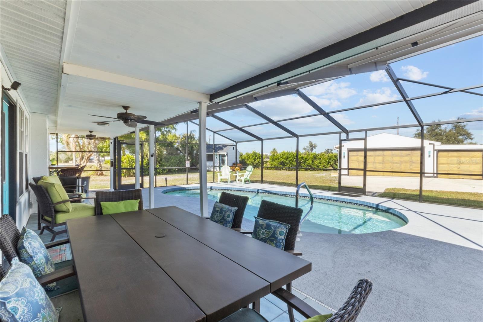 Looking for a great home with a Mother-In-Law Suite, or want to rent out one or both sides for income?? Located in the sought-after community of Nokomis, this stunning single-family home, complete with an attached mother-in-law suite, offers safety, security, and beauty. The main home features two generously sized bedrooms and two beautifully designed custom bathrooms, as well as a gourmet kitchen that's the true centerpiece of the home. A separate laundry room adds to the functionality of this home. Outback, the yard is large and is highlighted by a private, screened pool, a she-shed, and a detached 2-car garage plus golf cart garage. On the second side of this home is the attached, fully private 1-bedroom, 1-bathroom mother-in-law suite. Complete with its own stylish kitchen, with beautiful marble countertops. This side also includes its own secluded outdoor lanai. Every corner of this property has been thoughtfully designed, with careful attention to detail and top finishes throughout, making this home a true work of art. The Roof, HVAC, Electrical, and Plumbing have all been updated for your convenience! A charming she-shed with full power and A/C is the perfect space for your hobbies, whether it's crafting, woodworking, or gardening, enjoy the quiet moments.