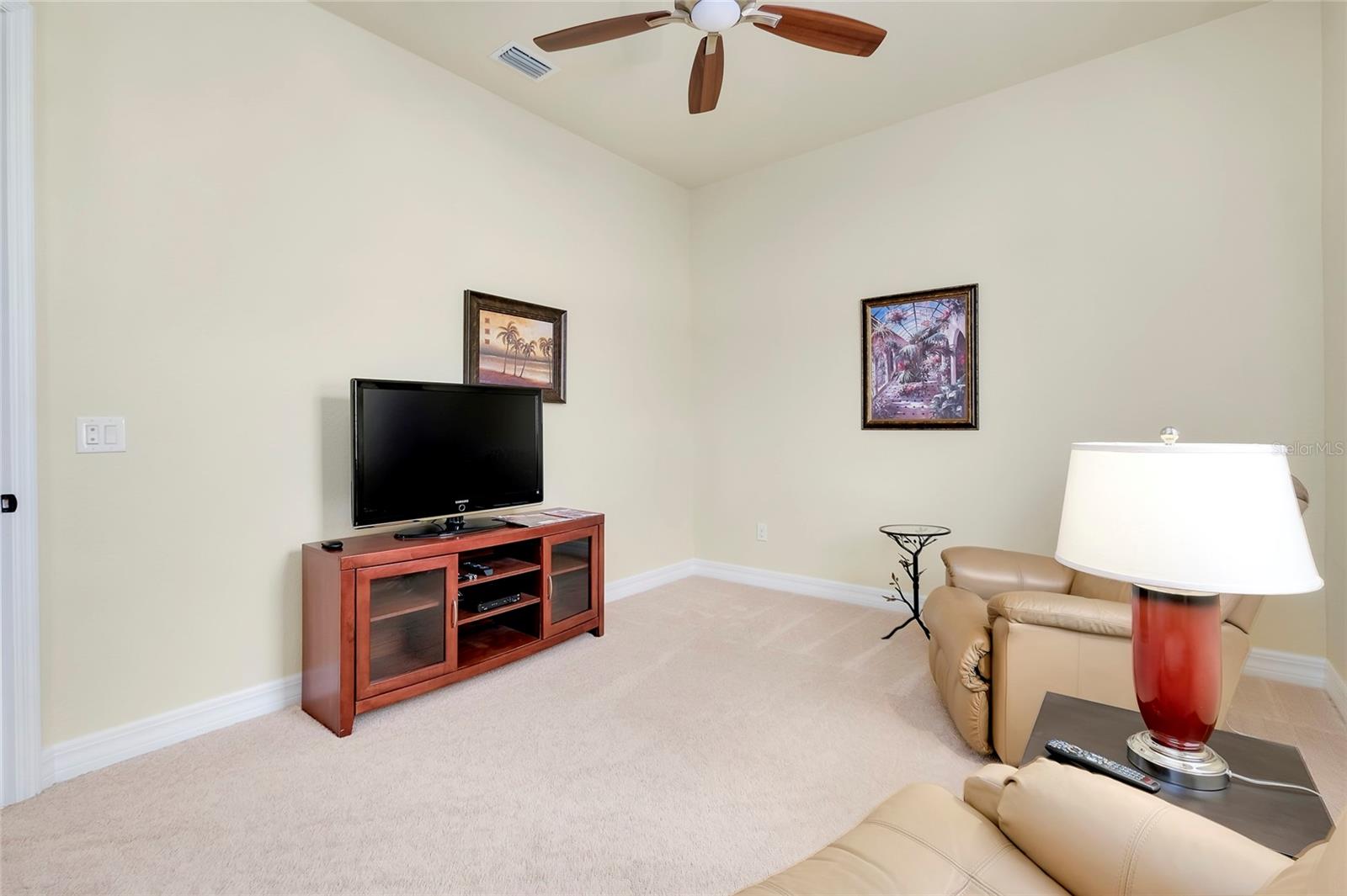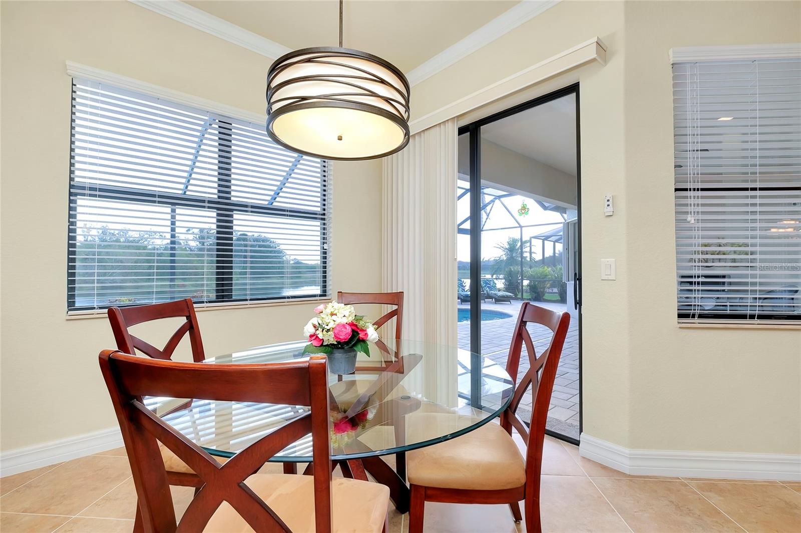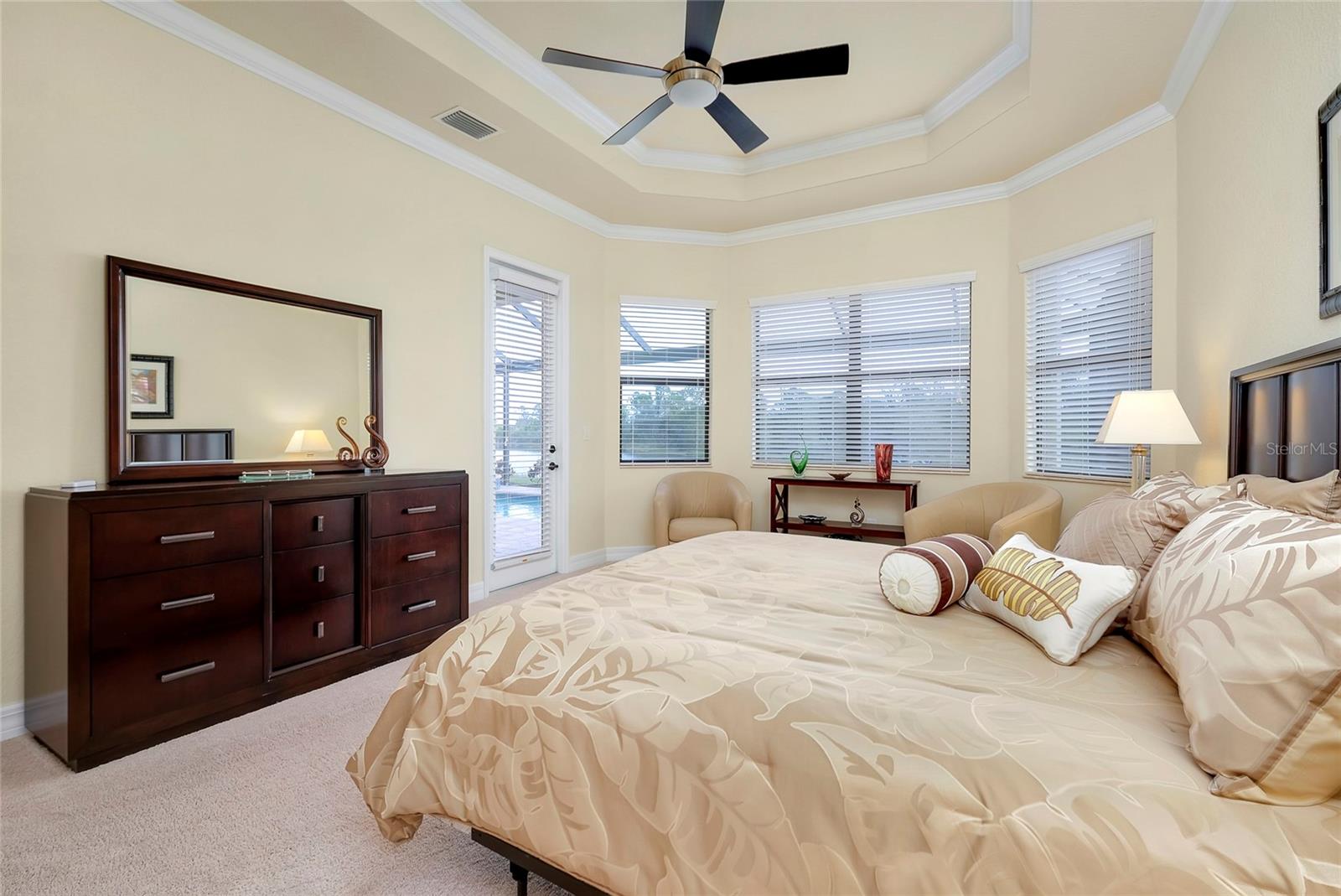 Built on a premium full lake view lot, this immaculate luxury home includes a custom designed pool and spa, study or 4th bedroom and the 3 car garage. Beautiful finishes, cabinetry and attention to detail makes this meticulously maintained estate home an exceptional property. Leaded glass entry doors open into the great room to an amazing lake and lush vegetation view through the triple sliders. The pool cage has the scenic-view screening and the large lanai with sealed pavers allows for entertaining. Great privacy and so relaxing! The heated salt-water pool includes auto fill to maintain the proper level year round, pop up cleaning jets, lighting and attached heated spa. The pool pump, filter, housing and cage screening is all new. The lanai has access to the pool bath. The Oakmont model offers a split floor plan with an open concept living area, tray ceilings, crown moldings, and ceramic tile floors in main areas. The beautiful kitchen has granite countertops, stainless steel appliances, cooktop, detailed wood cabinetry, a raised bar plus a dinette area looking out to the lake. Safety features include hurricane locking accordion shutters for the windows, Kevlar automated screens on front entry and covered lanai area and a security system. The primary bedroom has access to the pool area, large walk in closet, en-suite bath with 2 separate vanities, a Roman walk in shower and a soaking tub. The front bedroom is currently used as an office. The remaining 2 bedrooms are on the other side of the home with a full bathroom plus the 1/2 bath for the pool area. The laundry room has built in cabinetry and a sink and leads to the 3 car garage. The garage has been upgraded with an epoxy finished floor, a workshop and pull down stairs to storage attic area. New AC unit and air purification system installed in April 2025. The gated community of Gran Paradiso has a low HOA fee that includes lawn care, irrigation, cable, internet and use of the community amenities: a resort-style swimming pool, clubhouse, gym, tennis/pickleball courts, playground and full time activity director. Conveniently located to Venice beaches, airports, hospitals and schools, Wellen Park and the Atlanta Braves Spring Training facility. Furniture is available under separate contract. Move-in ready, perfect for snowbirds as well.