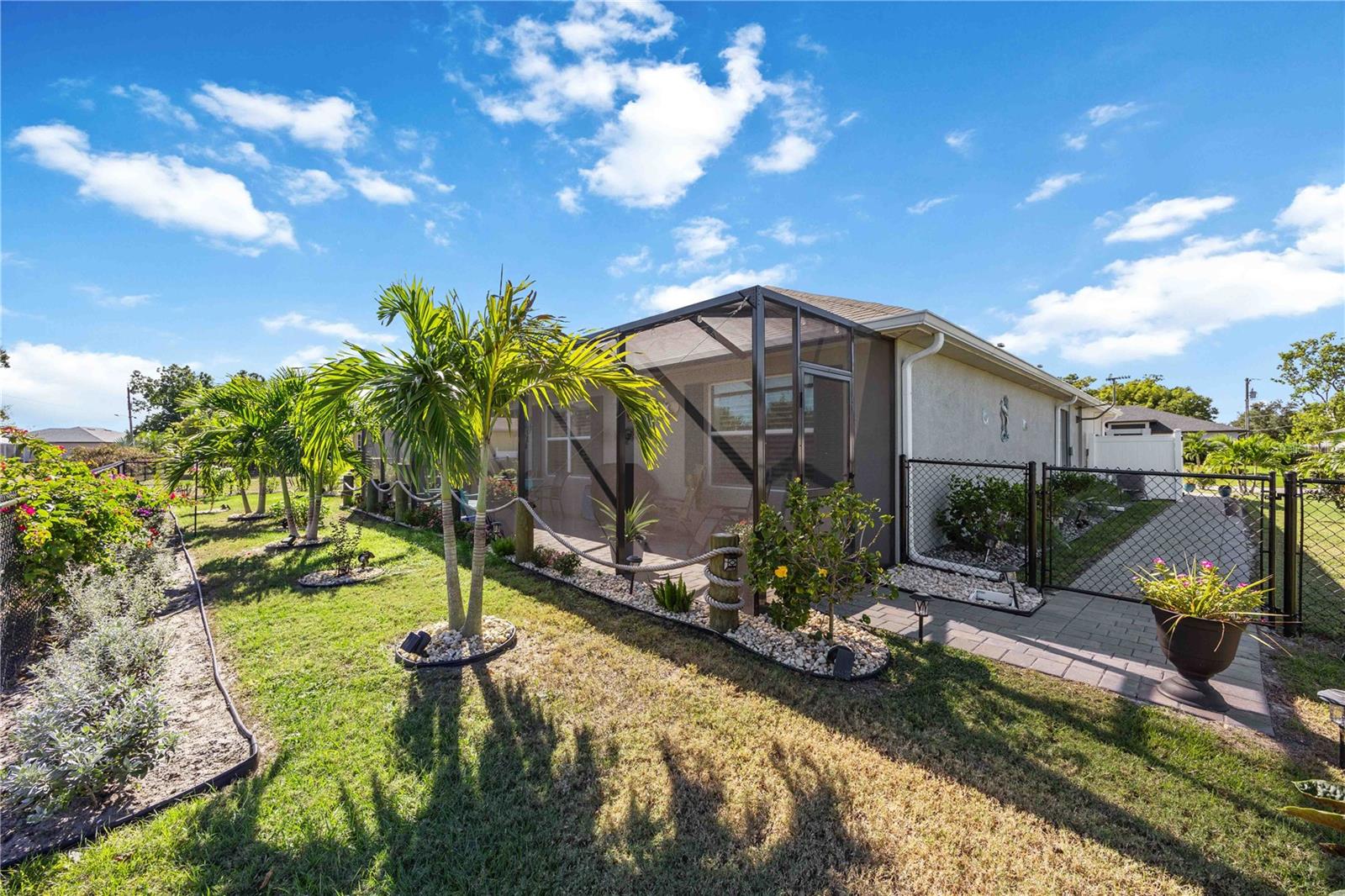 Welcome to this beautifully maintained 2023-built home in the desirable community of Burnt Store Village! This bright, modern residence offers 4 bedrooms, 2 bathrooms, and an open-concept layout that feels inviting from the moment you step inside. Elegant crown molding adds a refined touch throughout the living spaces, while large windows fill the home with natural light and highlight the clean, contemporary finishes.The kitchen features stainless steel appliances, shaker-style cabinetry, a center island, and plenty of counter space--perfect for everyday cooking or entertaining. The split-bedroom floor plan provides ideal privacy, with the primary suite offering a peaceful retreat complete with a walk-in closet and an ensuite bathroom featuring dual sinks and a beautifully tiled shower. Two additional bedrooms are positioned on the opposite side of the home, making them ideal for guests, family, or a home office.Step outside to a screened and extended lanai overlooking a fully fenced backyard--perfect for pets, gatherings, or future outdoor enhancements. With ample room to add a pool, garden, or custom outdoor living area, the possibilities are endless. Additional upgrades include a new water softener system and full-perimeter gutters for peace of mind.Burnt Store Village residents enjoy access to community amenities such as walking trails, a park, picnic areas, and a picturesque lakefront gazebo. You'll love the convenient location near Burnt Store Marina, restaurants, shopping, championship golf, and quick access to both Punta Gorda and Cape Coral.Move-in ready and packed with upgrades--schedule your private showing today!