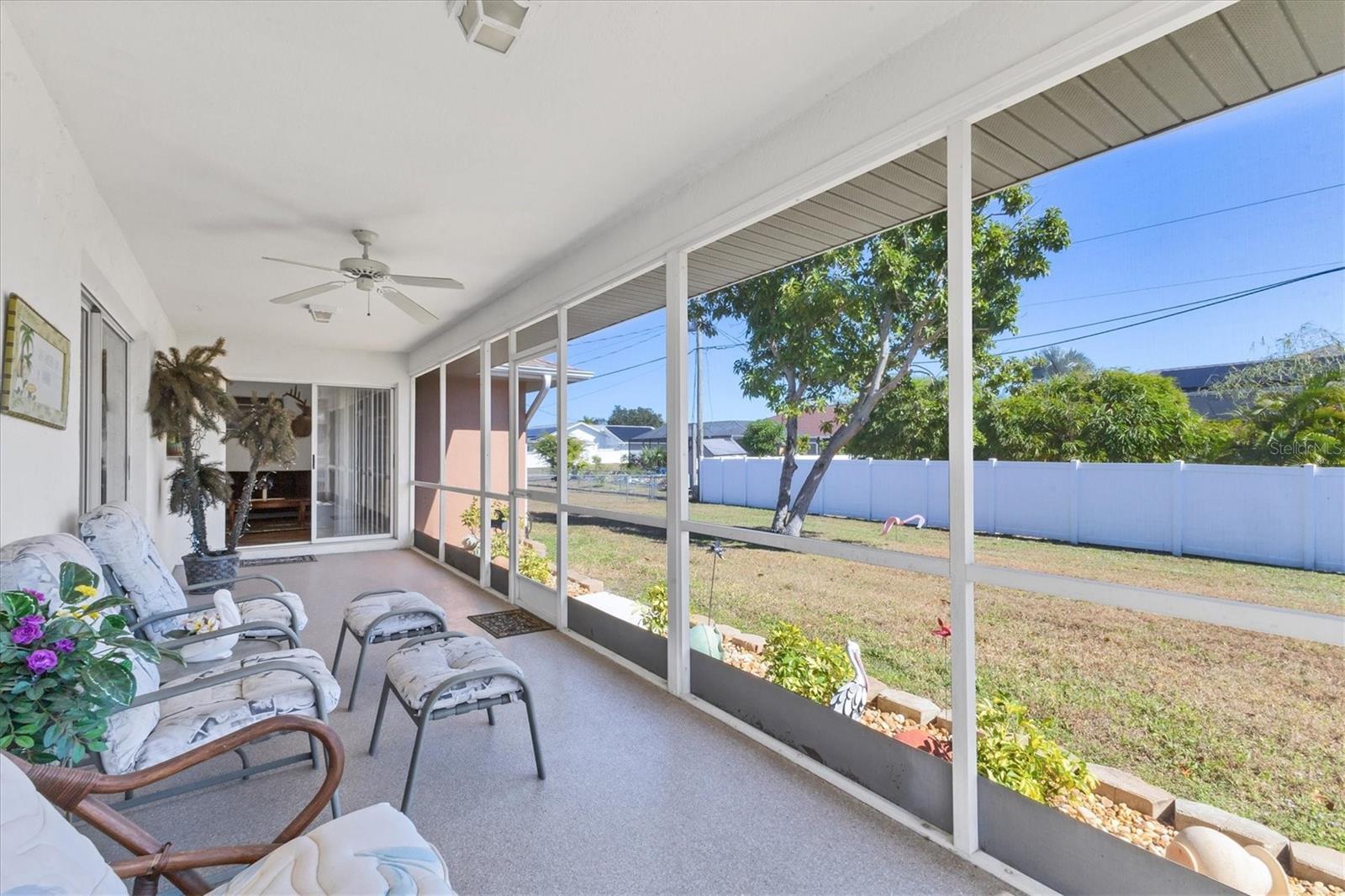 A lovingly maintained 3-bedroom 2-bathroom home in North Port just minutes from Wellen Park activities and shopping without all the fees. Being in an X flood zone will help with insurance costs since this is one of the lowest risk flood zones in Florida and you also have Lexan hurricane shutters for protection on all the windows. You will also benefit from the major items having already been replaced: the roof was replaced in 2021, HVAC in 2018 and the exterior was painted in 2024. The kitchen is white with stainless steel appliances that have been updated: refrigerator 2020, dishwasher 2021, and range and microwave in 2024. The home has public water and sewer and there is a reverse osmosis system in the kitchen for really delicious water. There is hard surface flooring throughout except the primary and 2nd bedrooms. The sellers recently installed Luxury Vinyl Plank flooring in the living room, dining room and kitchen. The large lot is just under a quarter of an acre with plenty of room for pets and toys in the backyard. The front porch is screened as well as the back lanai, so you can leave your doors wide open when the weather allows. You should see this property today to get a total feeling for the benefits it offers.