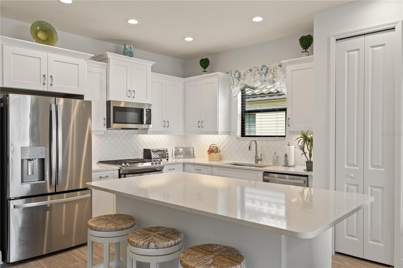 Exquisite Lakefront Villa with Hurricane Impact Windows & Doors along with many Designer Upgrades. This is the home you've been looking for!Experience refined living in this beautifully upgraded 2024-built Crystal Sand villa, perfectly positioned on a peaceful lake in the sought-after Vicenza community of Venice, FL. This 2-bedroom, 2-bath home with a den/flex room showcases quality craftsmanship, designer finishes, and the peace of mind that comes with full hurricane-impact windows and doors.Step inside to discover an open, light-filled layout with luxury vinyl plank flooring throughout and soaring ceilings that enhance the airy ambiance. The gourmet kitchen impresses with high-end white cabinetry, quartz countertops, a gas range, elegant tile backsplash, and a large center island ideal for entertaining. The great room flows effortlessly to the extended covered lanai--your private retreat for taking in tranquil lake views and vibrant Florida sunsets.The primary suite is a serene escape featuring two closets (including a spacious walk-in) and an upgraded bath with dual vanities, a walk-in shower, and a private water closet. A versatile den offers flexibility for a home office or dining room. Additional highlights include a gas water heater, gas connection on lanai for outdoor grilling, and a two-car garage.Vicenza offers a resort-style lifestyle with a sparkling pool, clubhouse, pickleball and bocce courts, and a dog park. Low quarterly fees cover lawn care and reserves for exterior painting and roof replacement, ensuring true maintenance-free living. Ideally located just minutes from Venice beaches, downtown dining, and I-75, this exceptional lakefront villa is move-in ready and designed for those who appreciate style, comfort, and quality.