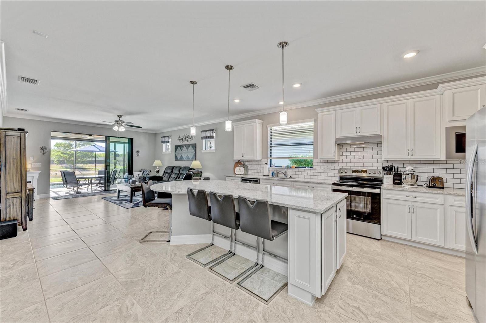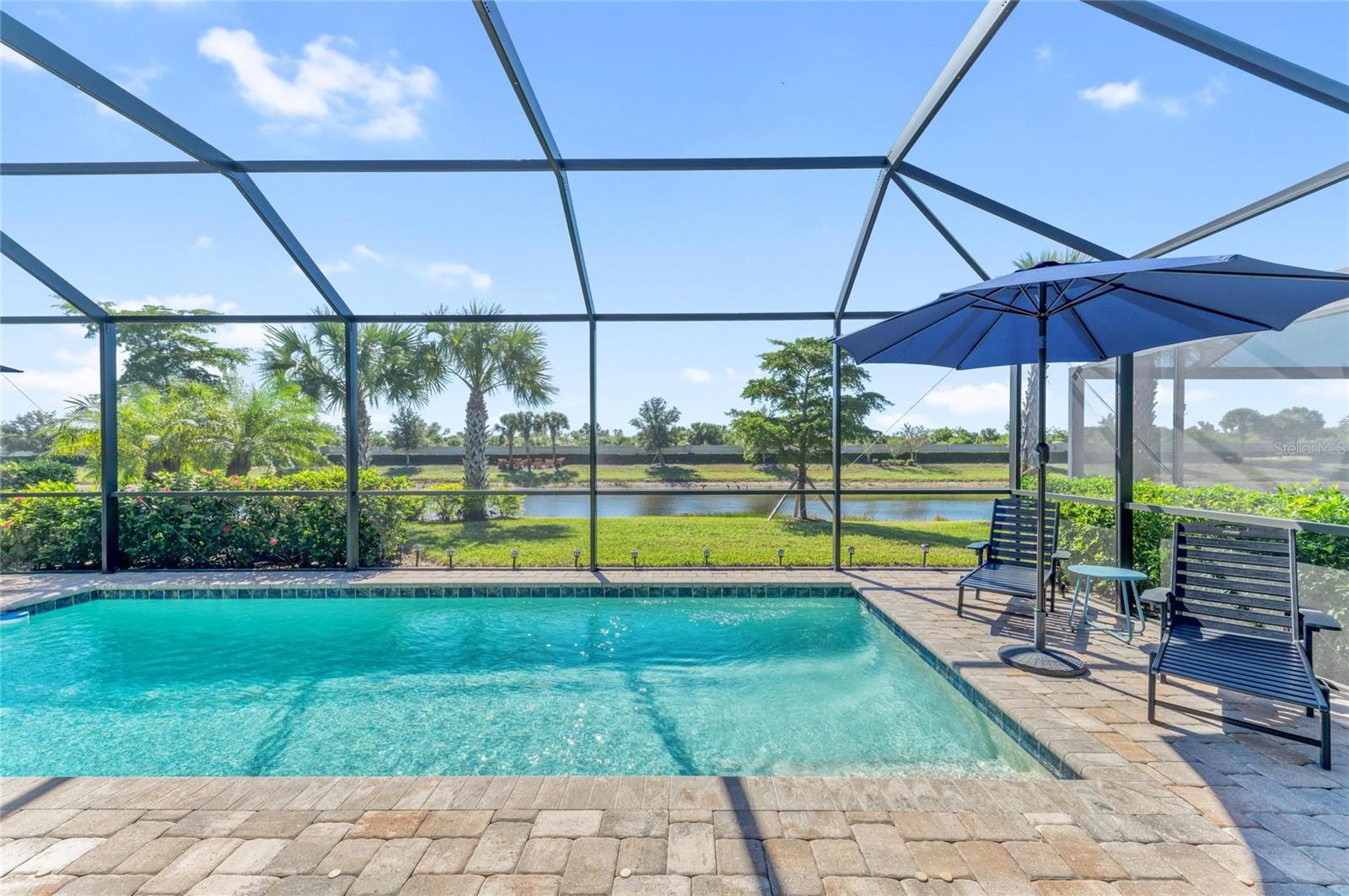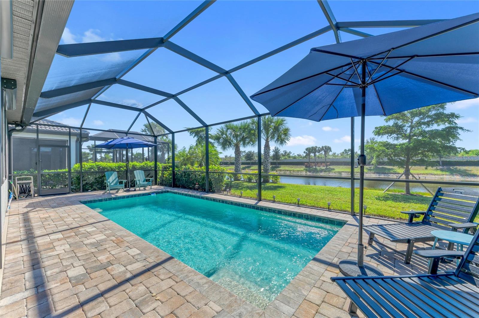 Discover the highly sought-after Martin Ray model with private heated swimming pool, impeccably maintained and enhanced with upgrades throughout, offering luxury, functionality, and style at every turn. This beautifully updated two-bedroom home, featuring an additional den and two full baths, is truly move-in ready. The exterior impresses with outstanding curb appeal, an extended paver driveway and walkway, and a screened front entry that sets the stage for the elegance found inside.Upon entering, you'll find tile flooring throughout the main living areas, complemented by neutral paint tones and refined crown molding. The front den or office showcases glass French doors, creating an ideal space for remote work or quiet relaxation. The chef's kitchen is a standout, boasting quartz countertops, a custom backsplash, 42-inch upper cabinets, pull-out drawers, a butler's pantry, and stainless-steel appliances. The spacious great room flows seamlessly to the southern-facing lanai through sliding glass pocket doors, allowing you to enjoy the home's stunning private waterfront setting.Recent upgraded storm protection, including roll-down shutters and hurricane screens on the lanai provides added peace of mind as well as privacy. The oversized tandem garage features epoxy flooring, pull down attic stairs as well as additional attic storage, additional lighting, and abundant storage options, while the laundry room includes a washer, dryer, and generous storage space. The serene primary suite offers beautiful water views and a luxurious bathroom with dual sinks, a tiled shower with decorative inlay, and an expansive walk-in closet. The dining and living room furniture may also convey if desired.This home is a remarkable blend of elegant design, thoughtful upgrades, and inviting outdoor living--an exceptional opportunity to own one of the area's most desirable floor plans.IslandWalk is known as one of Venice's most social and vibrant communities, offering a full-time activities director, countless events, clubs, and recreational options. Residents enjoy two community clubhouses, an event center, two resort-style pools, a lap pool, twelve pickleball courts, eight Har-Tru tennis courts, a dog park, playground, basketball court, community garden, and miles of golf cart paths, walking and biking trails, Venetian-style bridges, and waterways. The Atlanta Braves stadium is just a short bike ride away, offering year-round entertainment. The newly completed marketplace features Publix, restaurants, shopping, and essential services. Nearby Downtown Wellen Park offers an 80-acre lake, waterfront dining, rooftop decks, boutique retail, pedestrian-friendly streets, a splash pad, playground, and a public town hall that hosts live theater and music events, with a hammock grove and food truck park coming soon.The IslandWalk HOA includes grounds maintenance, cable, Wi-Fi, amenities, and 24-hour guard services. Don't miss your chance to tour this exceptional home.