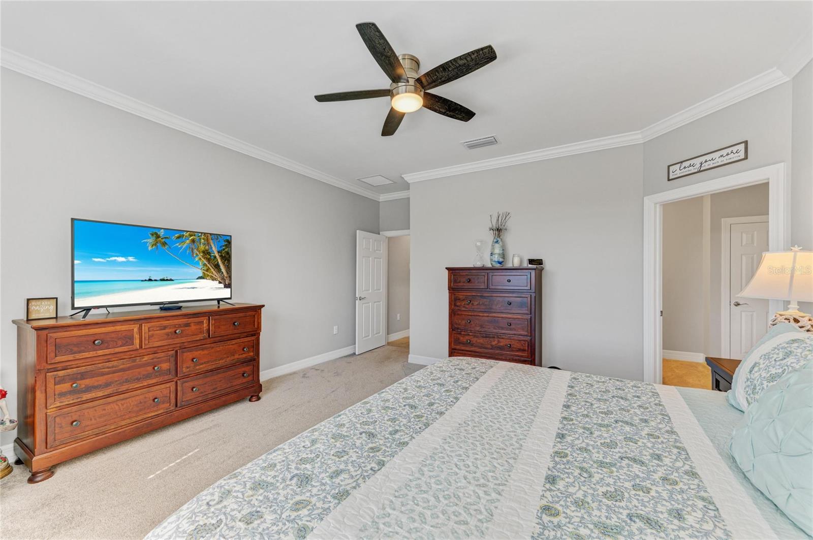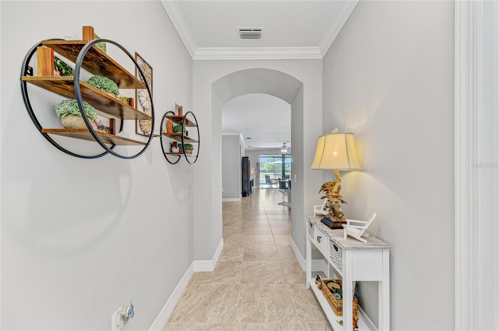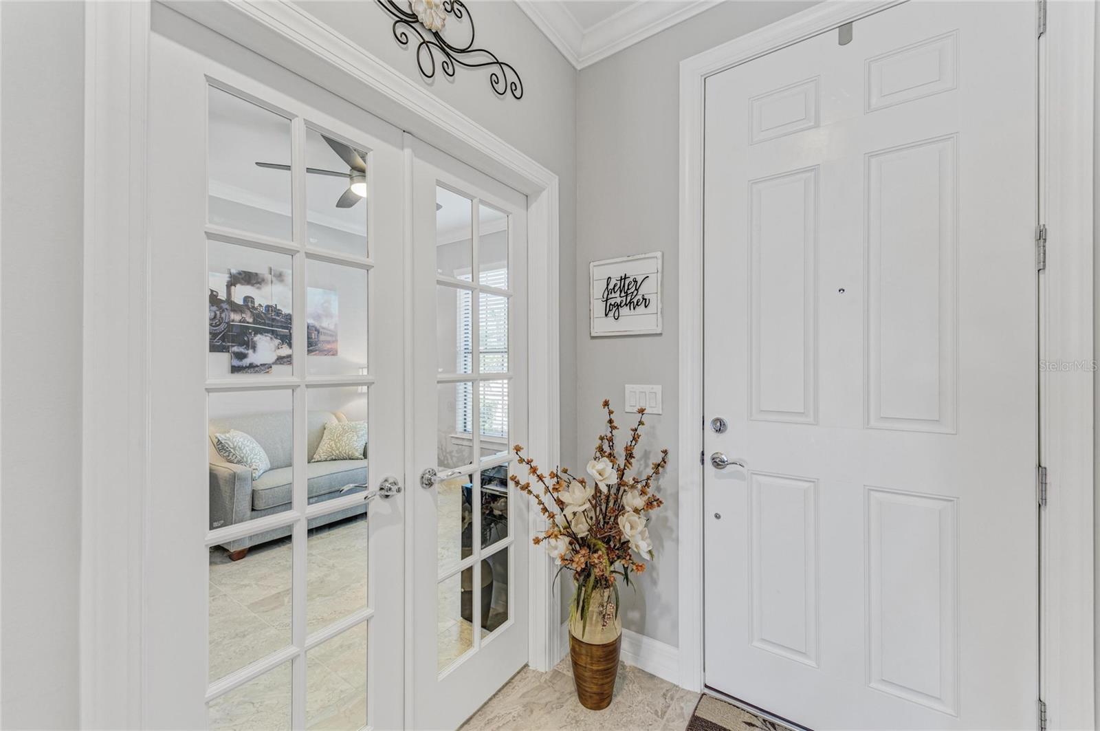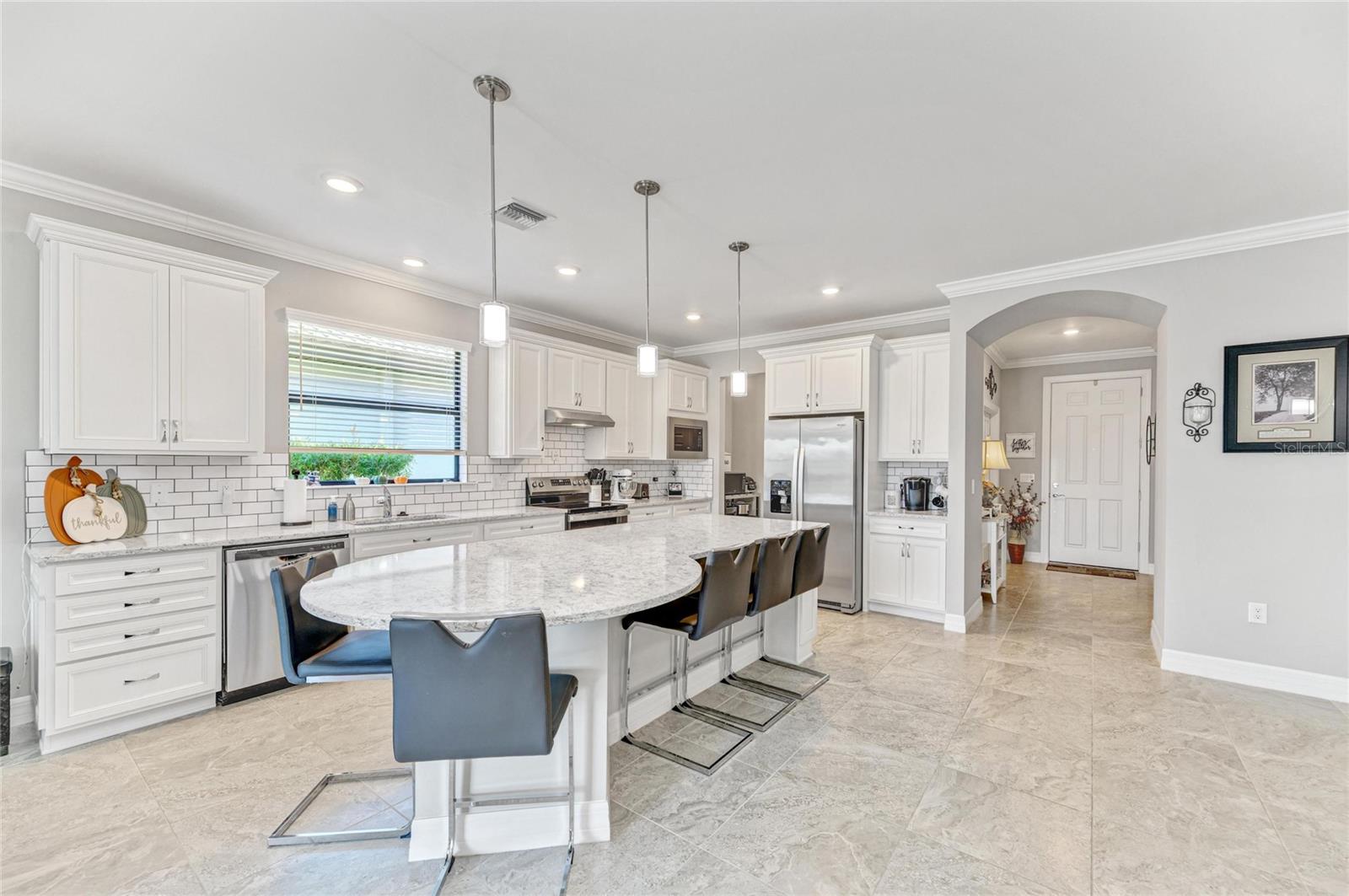 Discover the highly sought-after Martin Ray model with private heated swimming pool, impeccably maintained and enhanced with upgrades throughout, offering luxury, functionality, and style at every turn. This beautifully updated two-bedroom home, featuring an additional den and two full baths, is truly move-in ready. The exterior impresses with outstanding curb appeal, an extended paver driveway and walkway, and a screened front entry that sets the stage for the elegance found inside.Upon entering, you'll find tile flooring throughout the main living areas, complemented by neutral paint tones and refined crown molding. The front den or office showcases glass French doors, creating an ideal space for remote work or quiet relaxation. The chef's kitchen is a standout, boasting quartz countertops, a custom backsplash, 42-inch upper cabinets, pull-out drawers, a butler's pantry, and stainless-steel appliances. The spacious great room flows seamlessly to the southern-facing lanai through sliding glass pocket doors, allowing you to enjoy the home's stunning private waterfront setting.Recent upgraded storm protection, including roll-down shutters and hurricane screens on the lanai provides added peace of mind as well as privacy. The oversized tandem garage features epoxy flooring, pull down attic stairs as well as additional attic storage, additional lighting, and abundant storage options, while the laundry room includes a washer, dryer, and generous storage space. The serene primary suite offers beautiful water views and a luxurious bathroom with dual sinks, a tiled shower with decorative inlay, and an expansive walk-in closet. The dining and living room furniture may also convey if desired.This home is a remarkable blend of elegant design, thoughtful upgrades, and inviting outdoor living--an exceptional opportunity to own one of the area's most desirable floor plans.IslandWalk is known as one of Venice's most social and vibrant communities, offering a full-time activities director, countless events, clubs, and recreational options. Residents enjoy two community clubhouses, an event center, two resort-style pools, a lap pool, twelve pickleball courts, eight Har-Tru tennis courts, a dog park, playground, basketball court, community garden, and miles of golf cart paths, walking and biking trails, Venetian-style bridges, and waterways. The Atlanta Braves stadium is just a short bike ride away, offering year-round entertainment. The newly completed marketplace features Publix, restaurants, shopping, and essential services. Nearby Downtown Wellen Park offers an 80-acre lake, waterfront dining, rooftop decks, boutique retail, pedestrian-friendly streets, a splash pad, playground, and a public town hall that hosts live theater and music events, with a hammock grove and food truck park coming soon.The IslandWalk HOA includes grounds maintenance, cable, Wi-Fi, amenities, and 24-hour guard services. Don't miss your chance to tour this exceptional home.