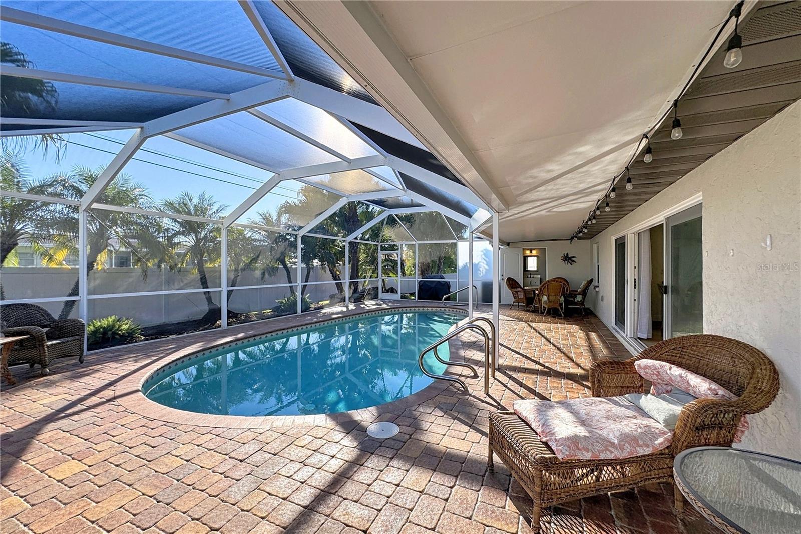 Welcome to Golden Beach, one of Venice Island's most sought-after neighborhoods - the name truly says it all. This community offers its own private beach access and places you just moments from the heart of downtown Venice, giving you the perfect blend of coastal living and convenience. Before admiring the beauty of the home itself, take a look at the extensive list of updates: Paver Sealing (2025), Refrigerator (2025), Washer & Dryer (2025), Dishwasher (2025), Pool cage screening (2022), Fence (2023), Paver driveway (2021), 10 impact-rated windows, doors, and sliders (2022), Front paver porch (2021), HVAC - 4-ton system (2024), Water heater (2025), Plumbing (2013), 6 ft. vinyl fence (2013), New tile roof (2013) with a 2024 four-point inspection. The professionally landscaped and fully fenced yard creates a private, tropical retreat. Step through the front door and you're greeted by an inviting, open layout filled with natural light--ideal for both quiet evenings at home and hosting guests. Tile floors throughout offer a clean look and effortless upkeep. The kitchen, dining area, and family room all overlook the heated, screened-in pool. The lanai features an insulated roof, making the space enjoyable year-round, rain or shine. Lush landscaping around the pool adds a true resort feel, and the convenient pool bath with shower is an added bonus. The split floor plan places the spacious primary suite on one side of the home and the guest bedrooms on the other, giving everyone privacy. The home also includes a two-car garage and paver walkways that lead to the front entrance and mailbox. You're about a mile from the Venice Fishing Pier, Sharky's, the dog beach, and the charming shops, restaurants, and entertainment options in downtown Venice. Simply move in and start enjoying the Florida lifestyle the way it was meant to be. This is a home you'll want to see in person--don't miss it.